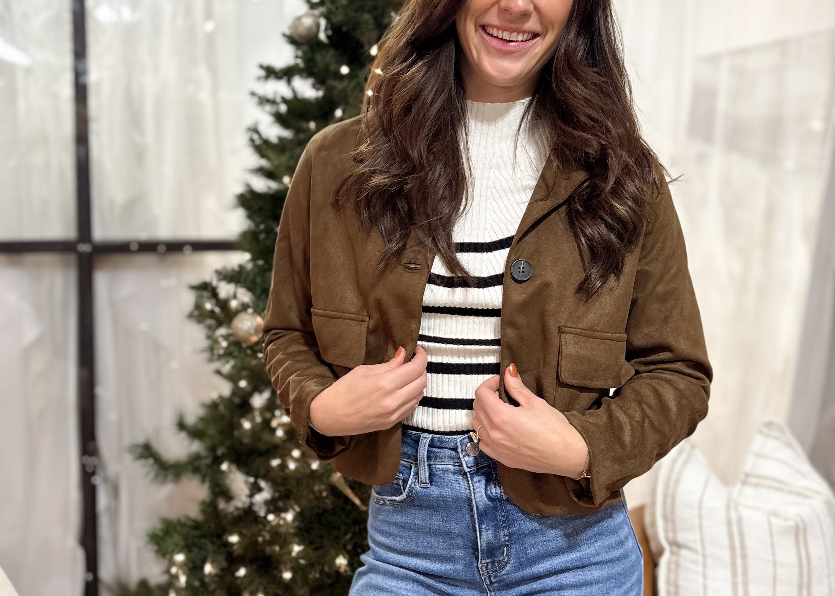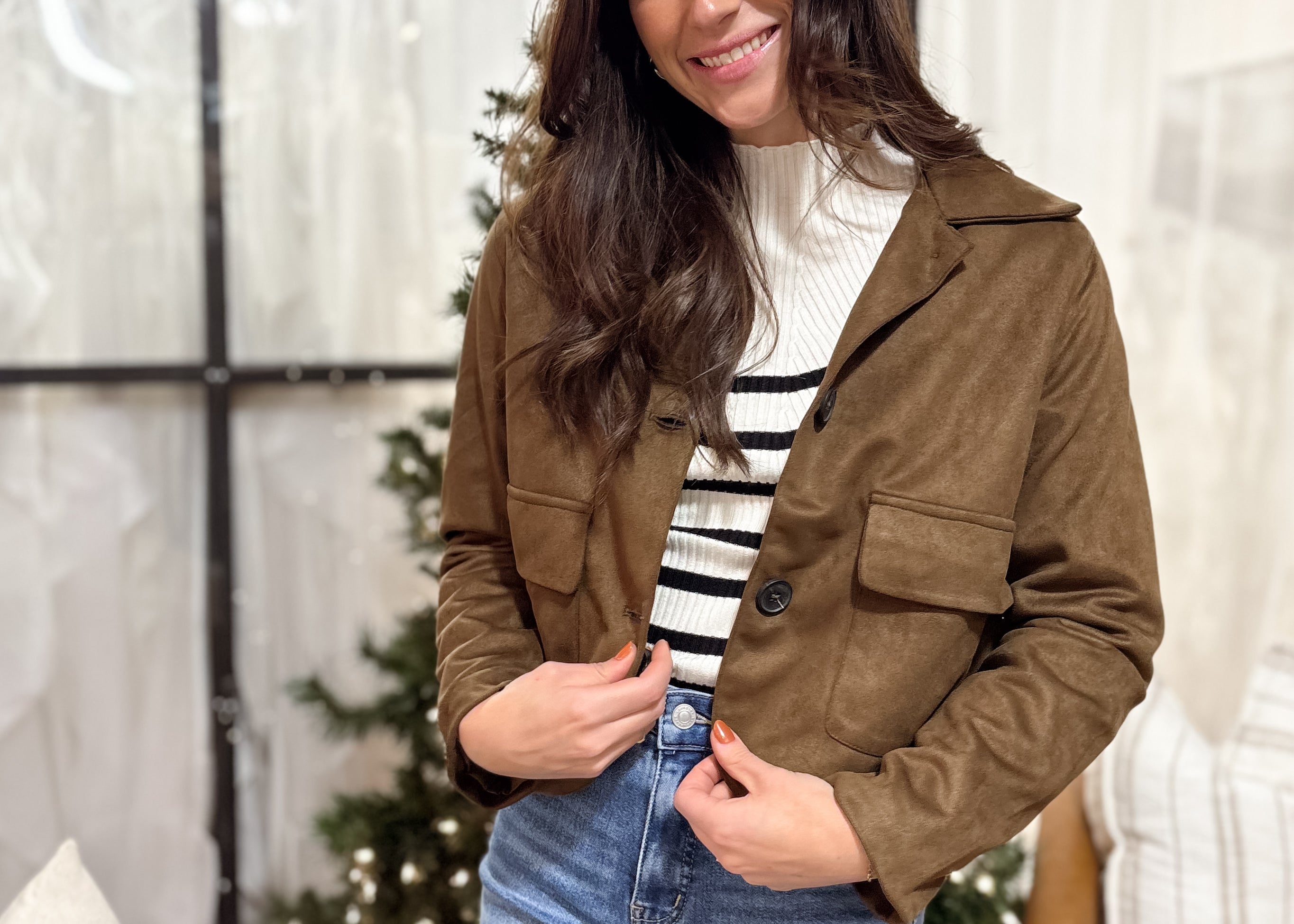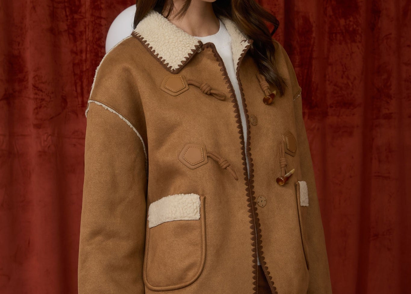 The Ricki Faux Shearing Suede Toggle Button Jacket
