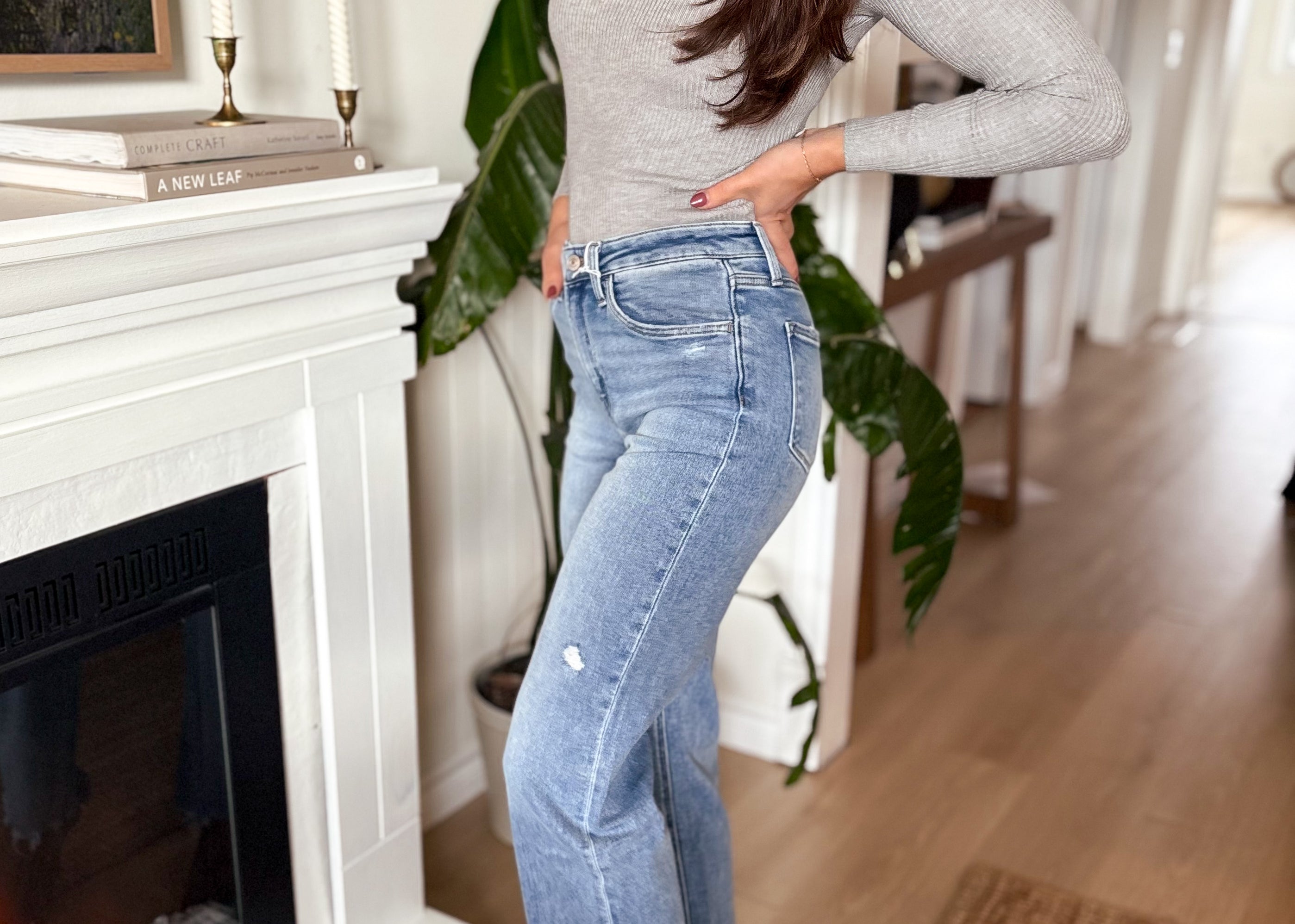 The Enhance Super High Rise Jean with a Slim Wide Leg