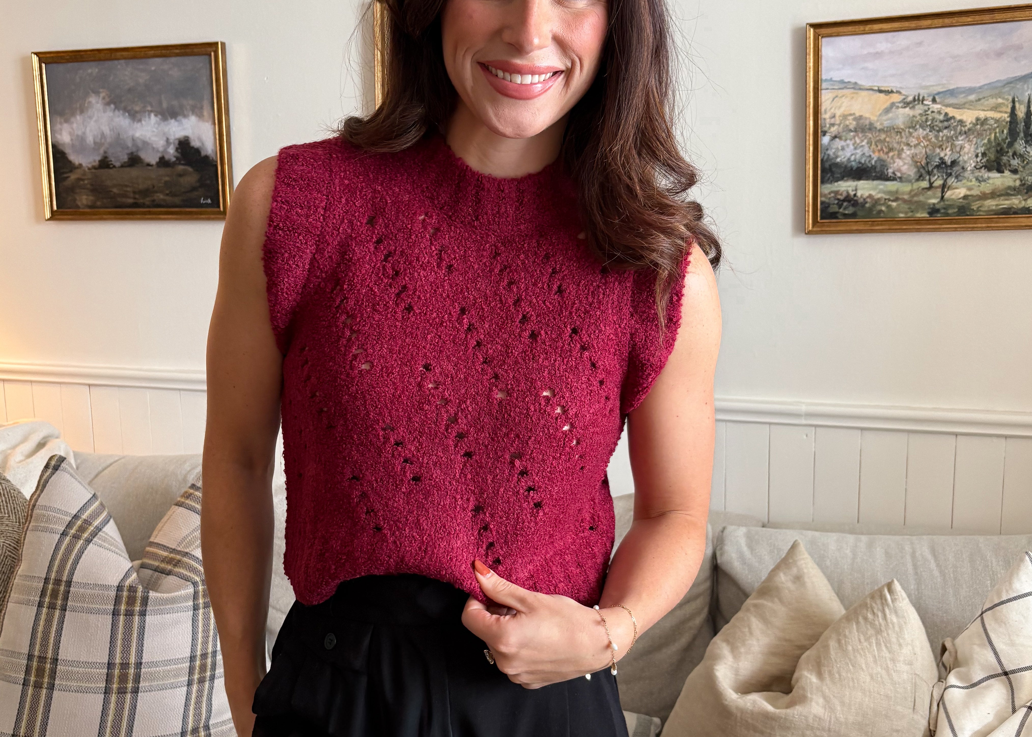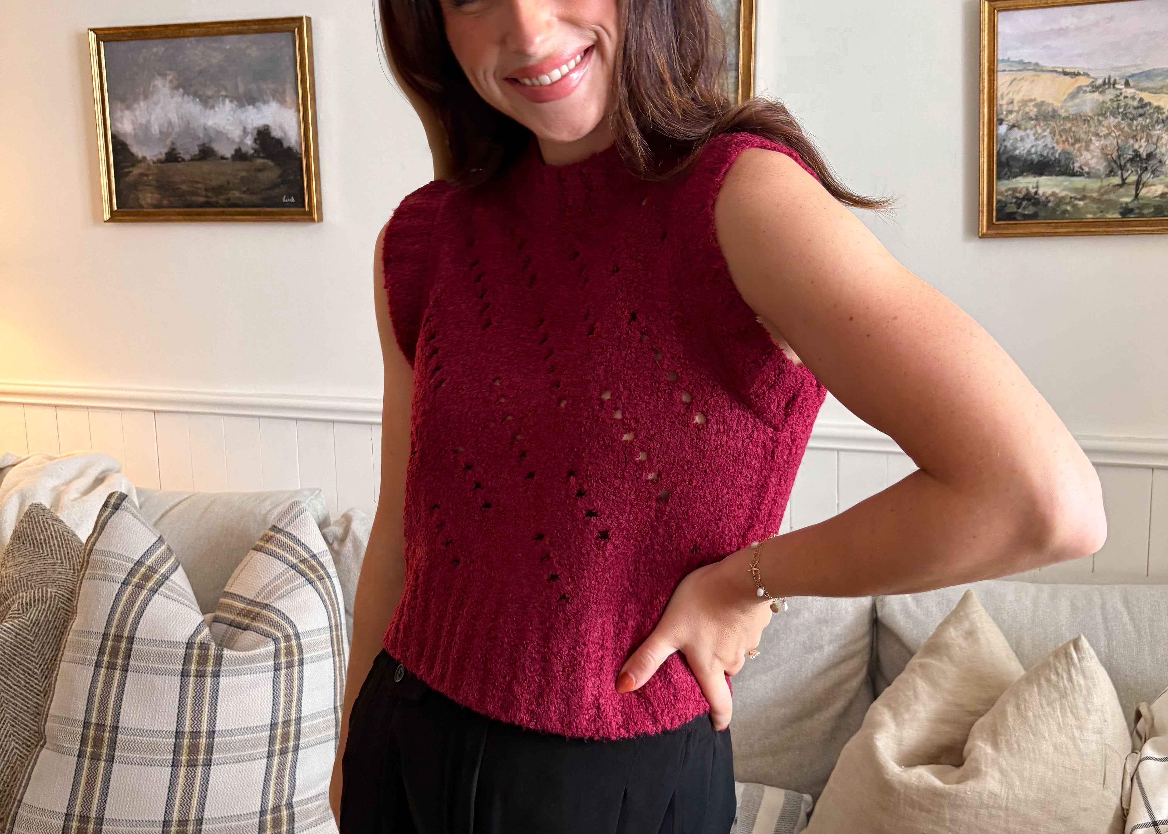 The Maylee Sleeveless Sweater Vest in Cabernet