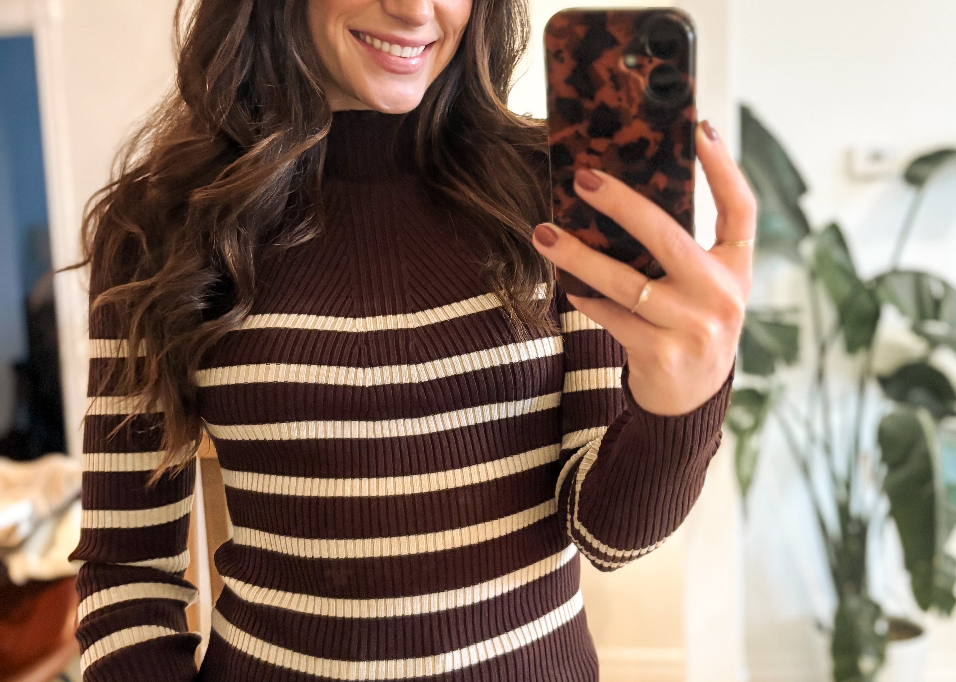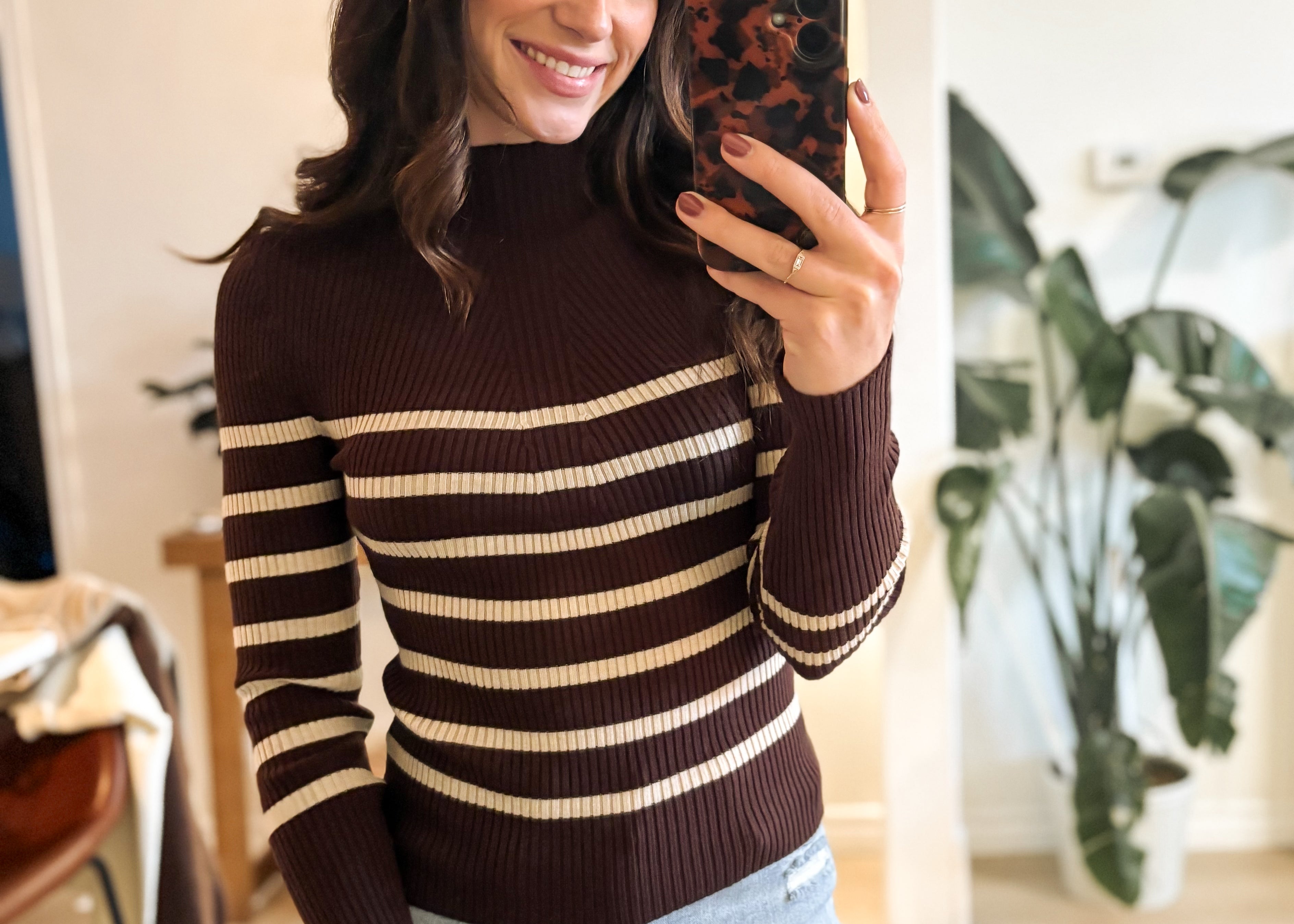 The Monique Mock Neck Stripe Long Sleeve Sweater Knit Pullover