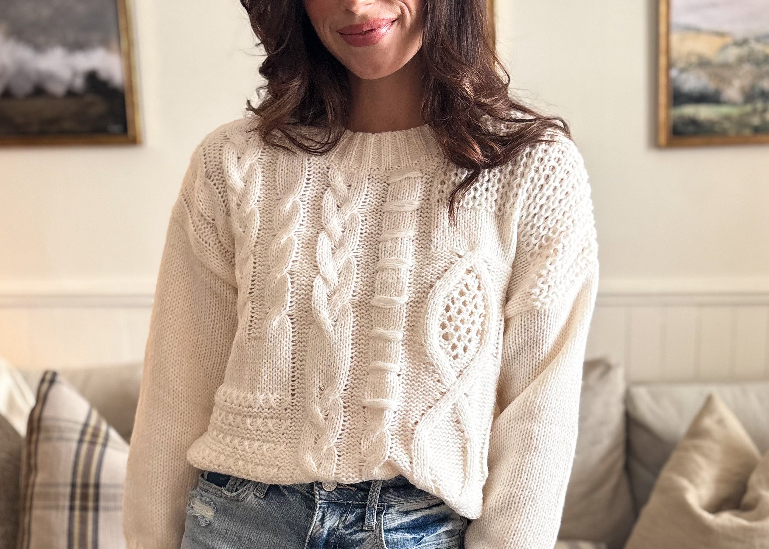 The Tianna Cable Knit Pattern Sweater with Stitch Detail