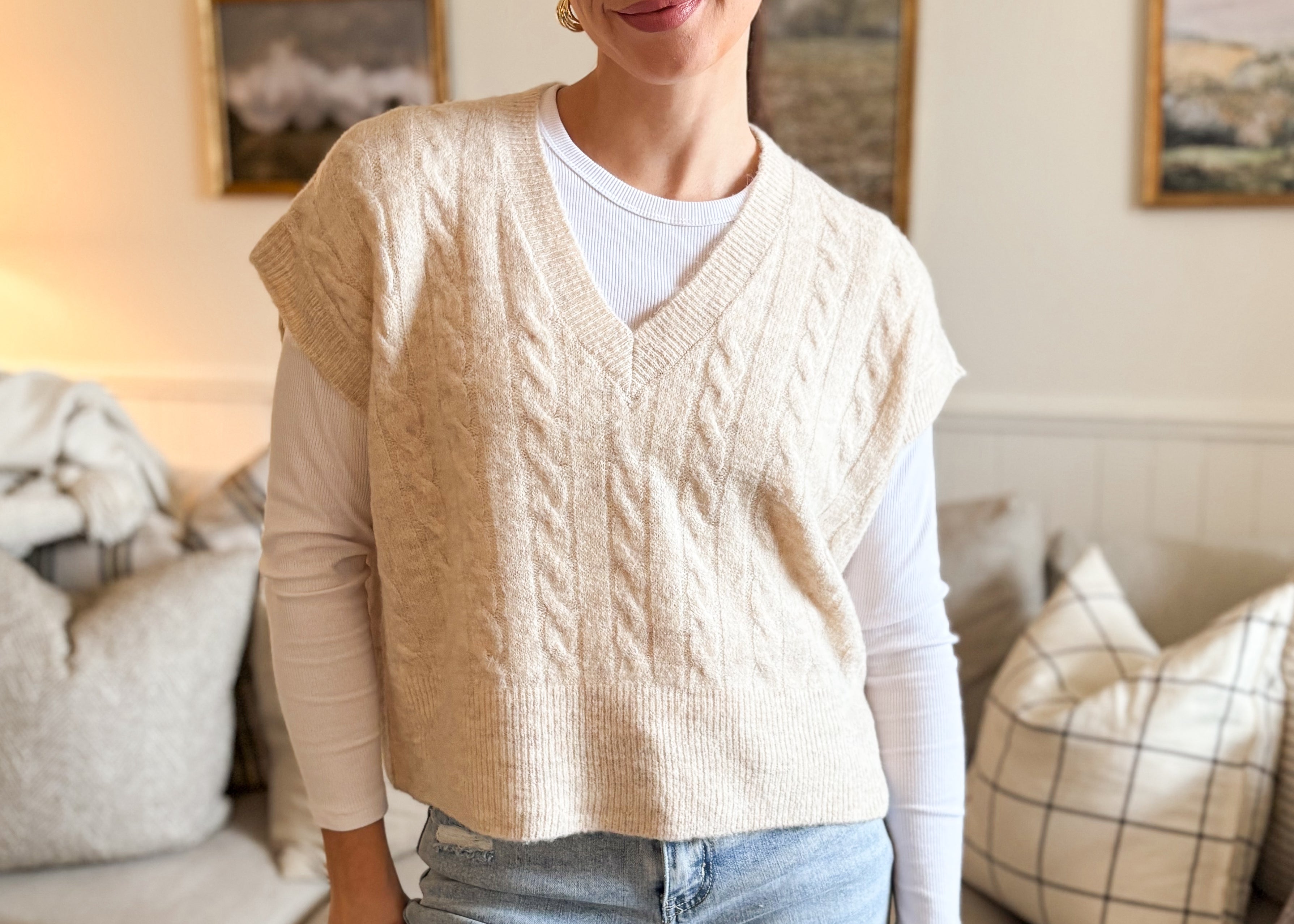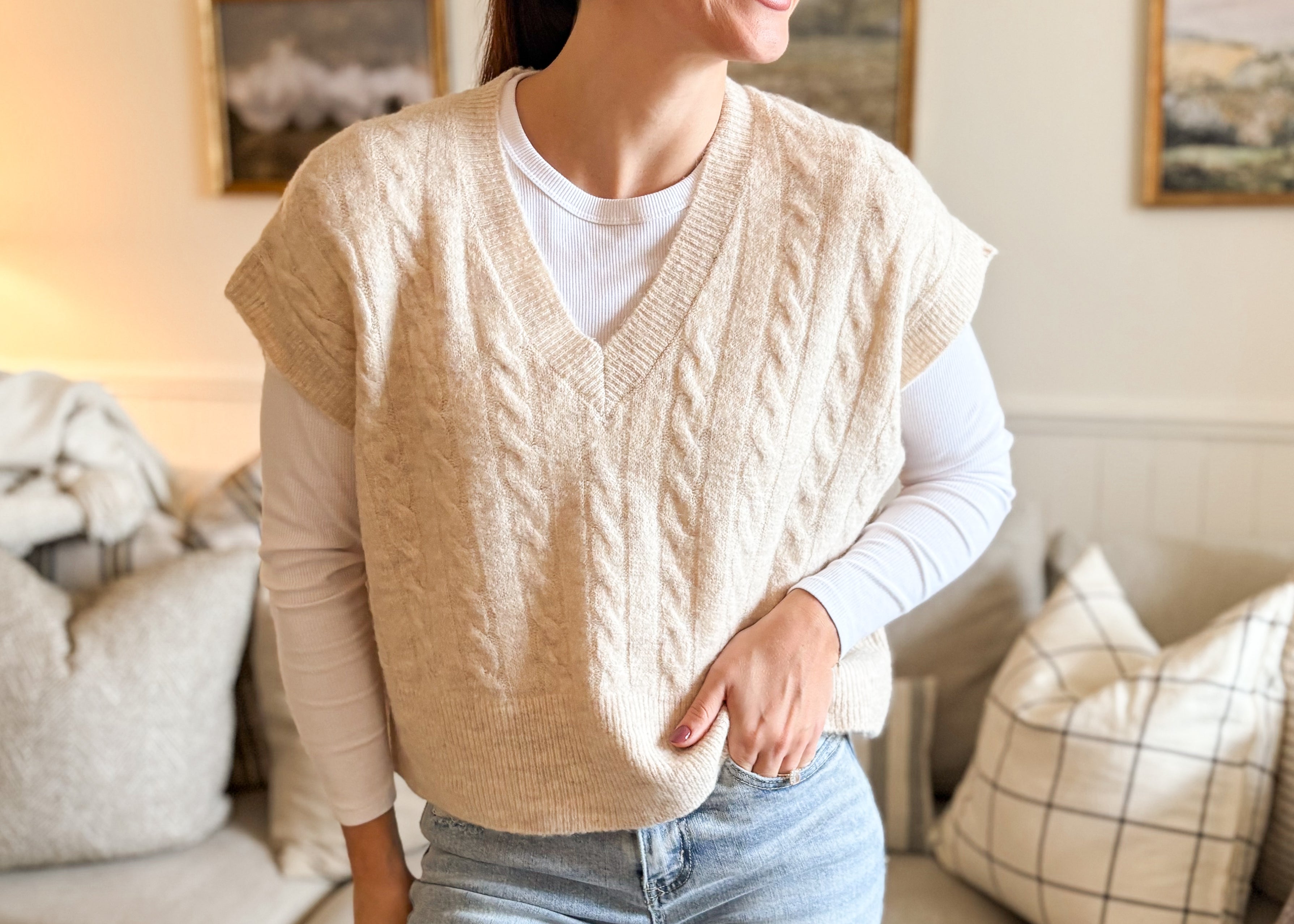 The Giselle Cable Knit V-Neck Side Tie Sweater Vest