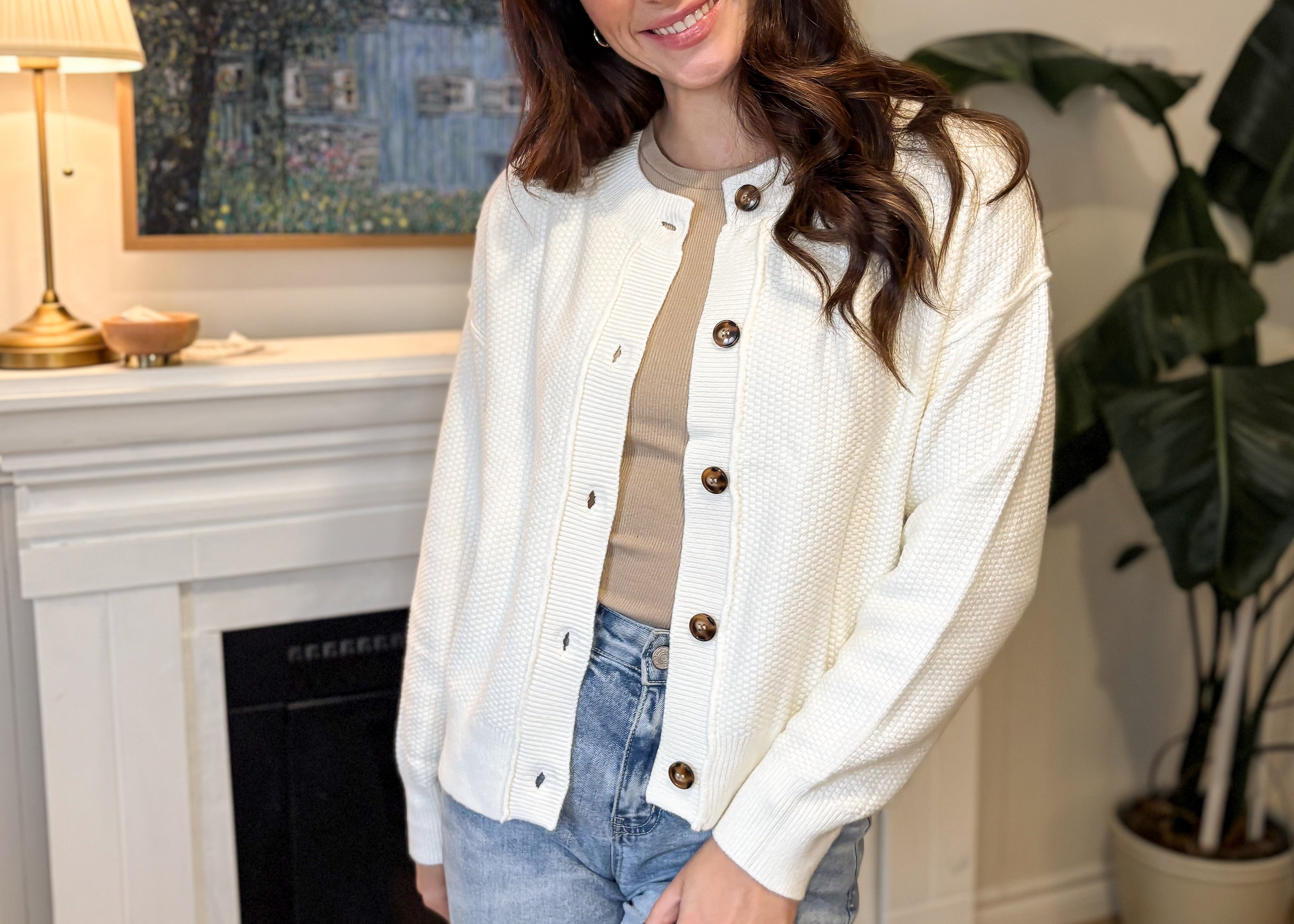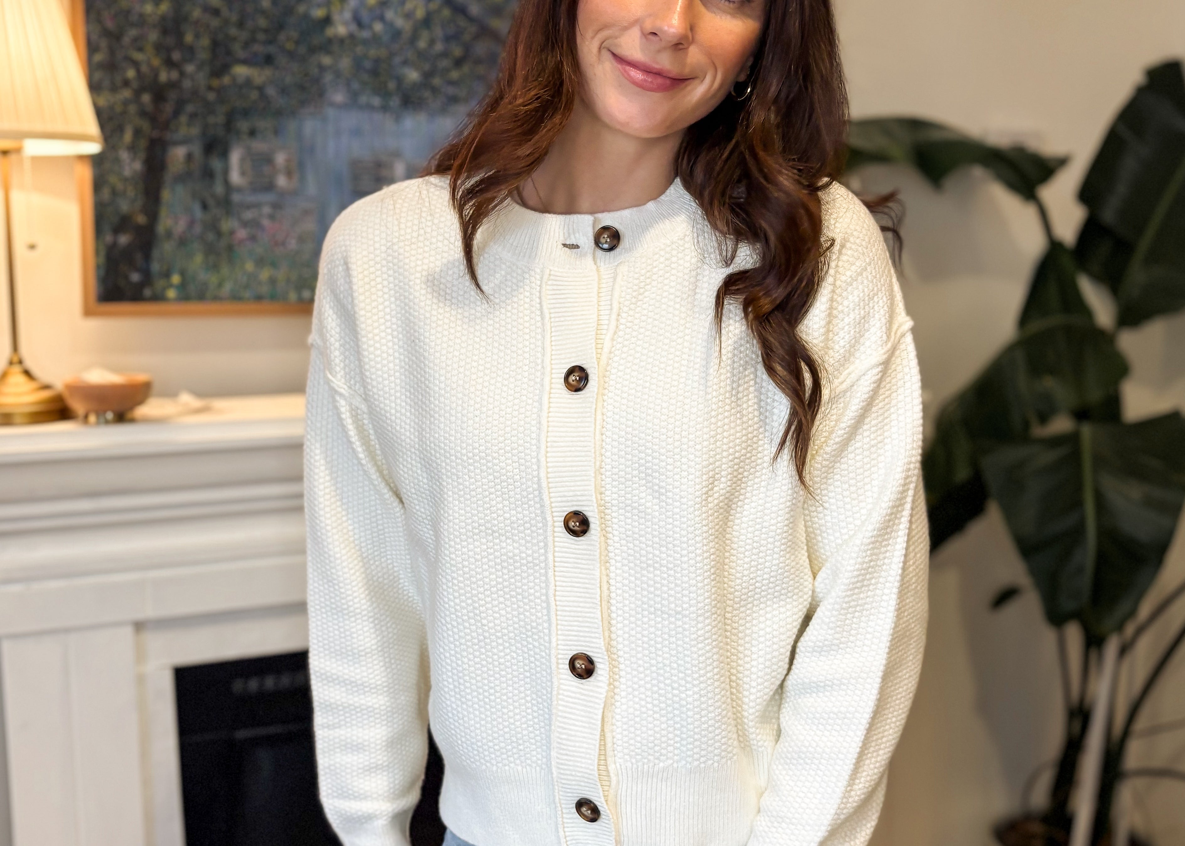 The Collette Round Neck Button Down Sheer Cable Knit Cardigan