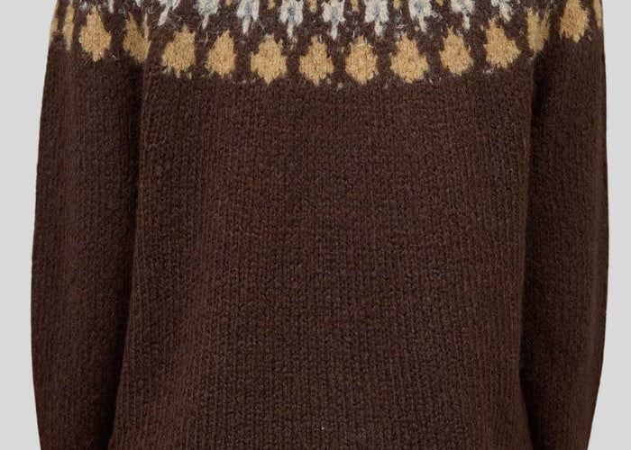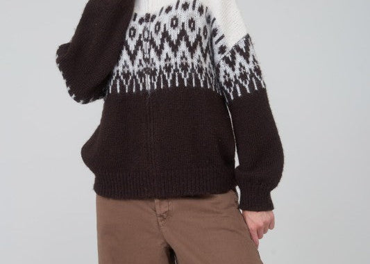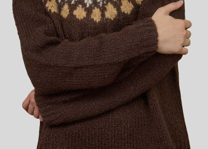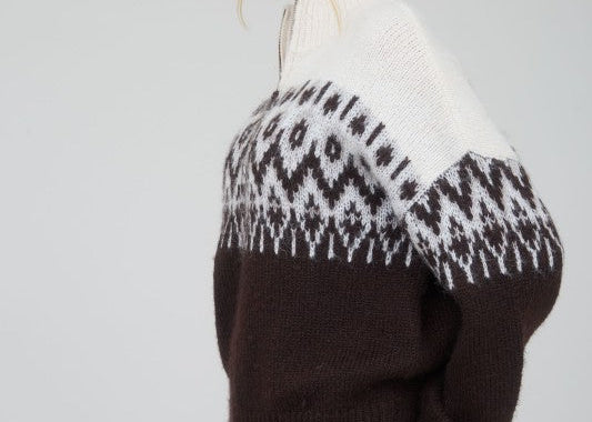 Fair Isle Pattern Long Sleeve Knit Sweater in Brown