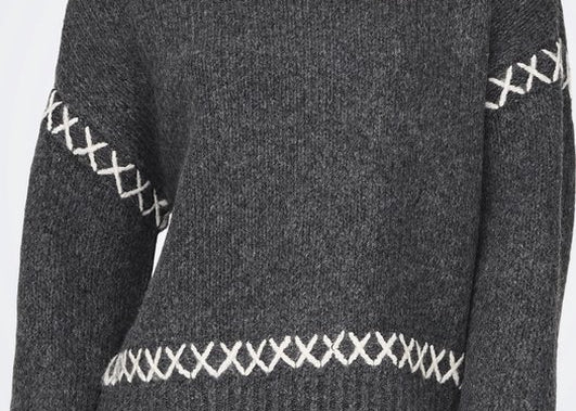 The AMANDA Long Sleeve Knit Pullover Sweater in Charcoal Grey