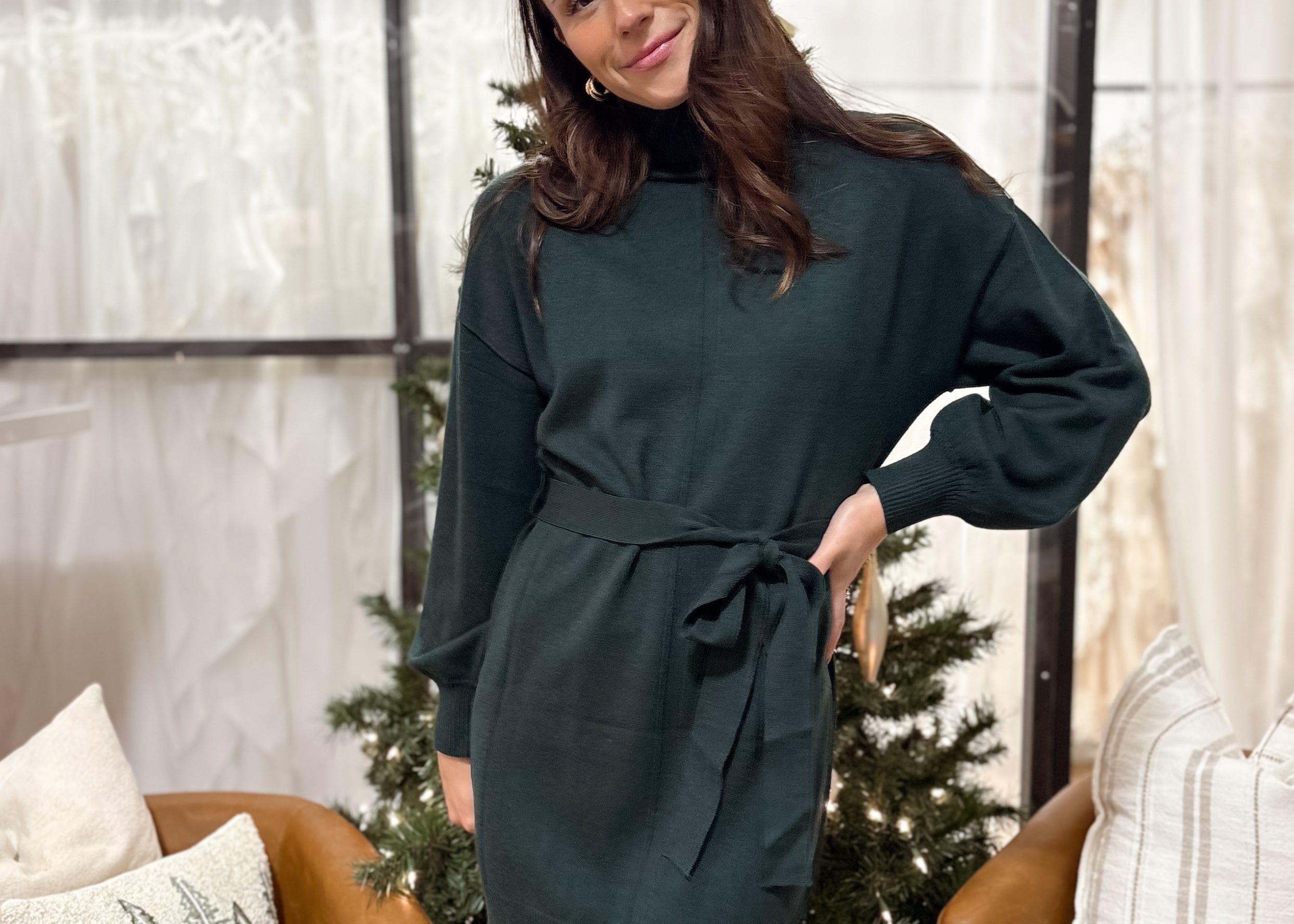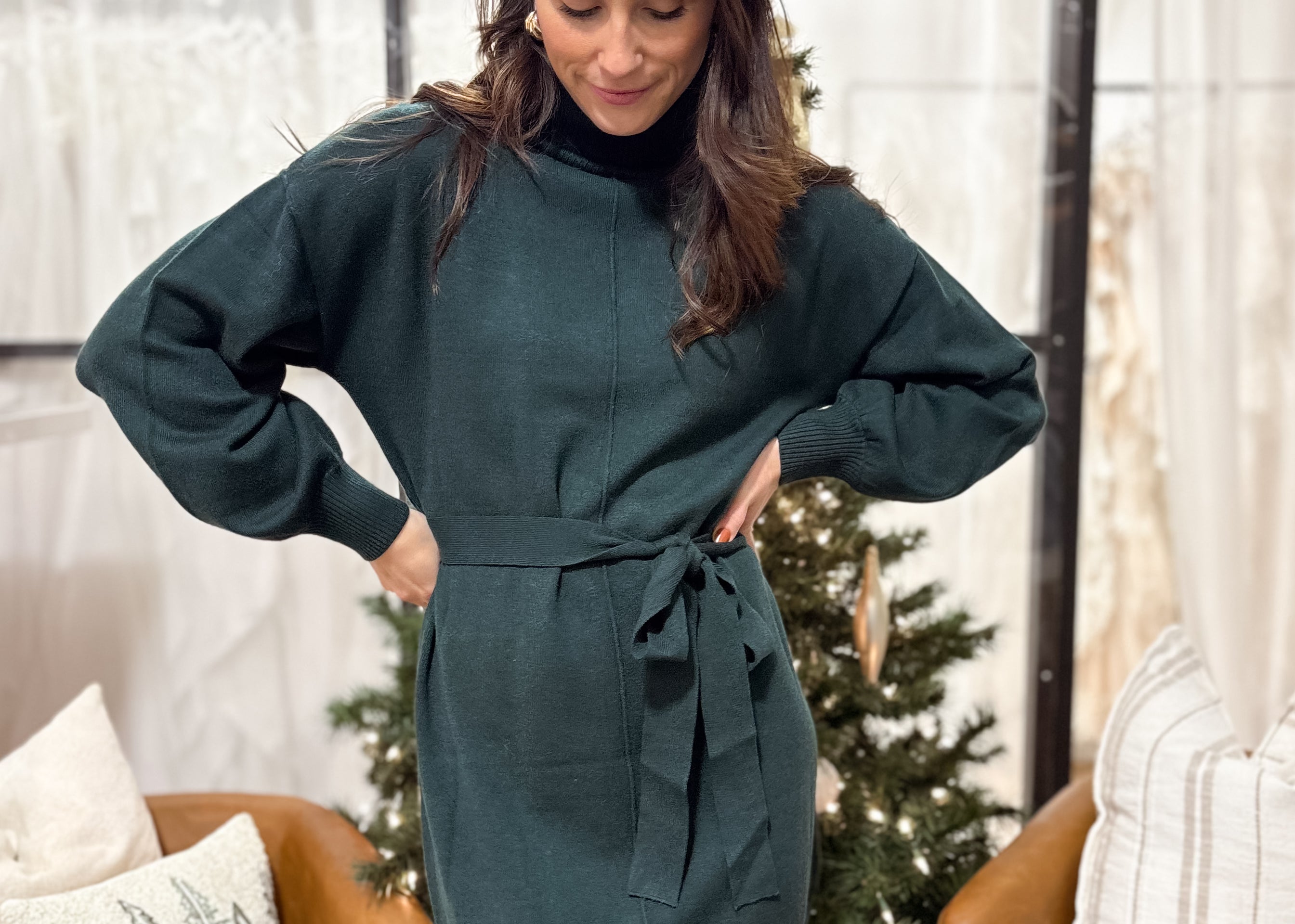 The Jayde Belted Long Sleeve Turtle Neck Mini Sweater Dress