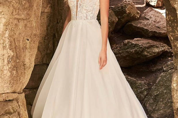 If you want to be the belle of the ball, then you’ll love this dress. With its princess-inspired Organza full skirt that has pockets, and beautiful lace appliqued bodice with Sequin Tulle underneath, this gown will make you feel like a modern-day princess. To add the perfect amount of allure, this gown features a plunging neckline lined in nude Italian Tulle.