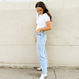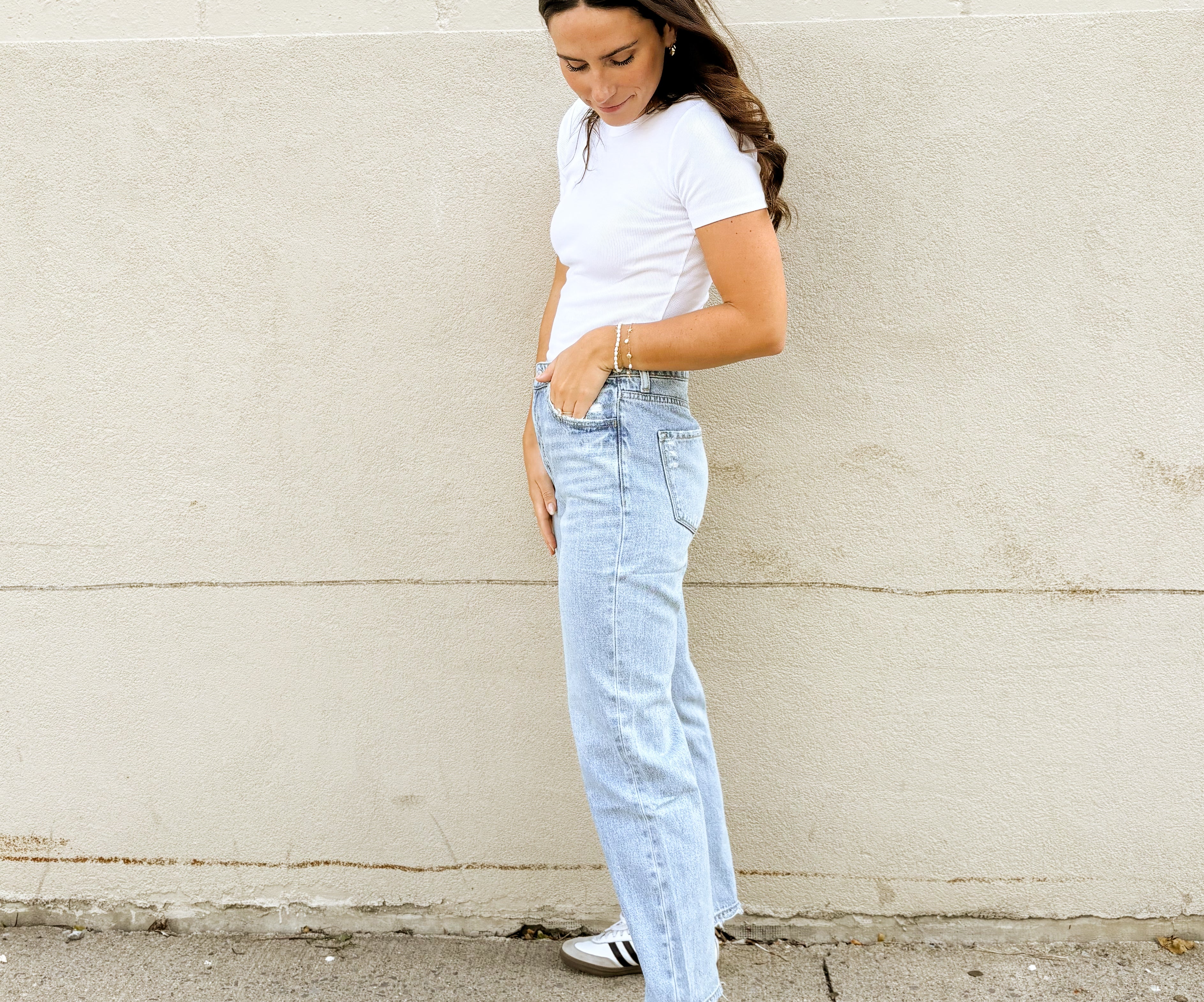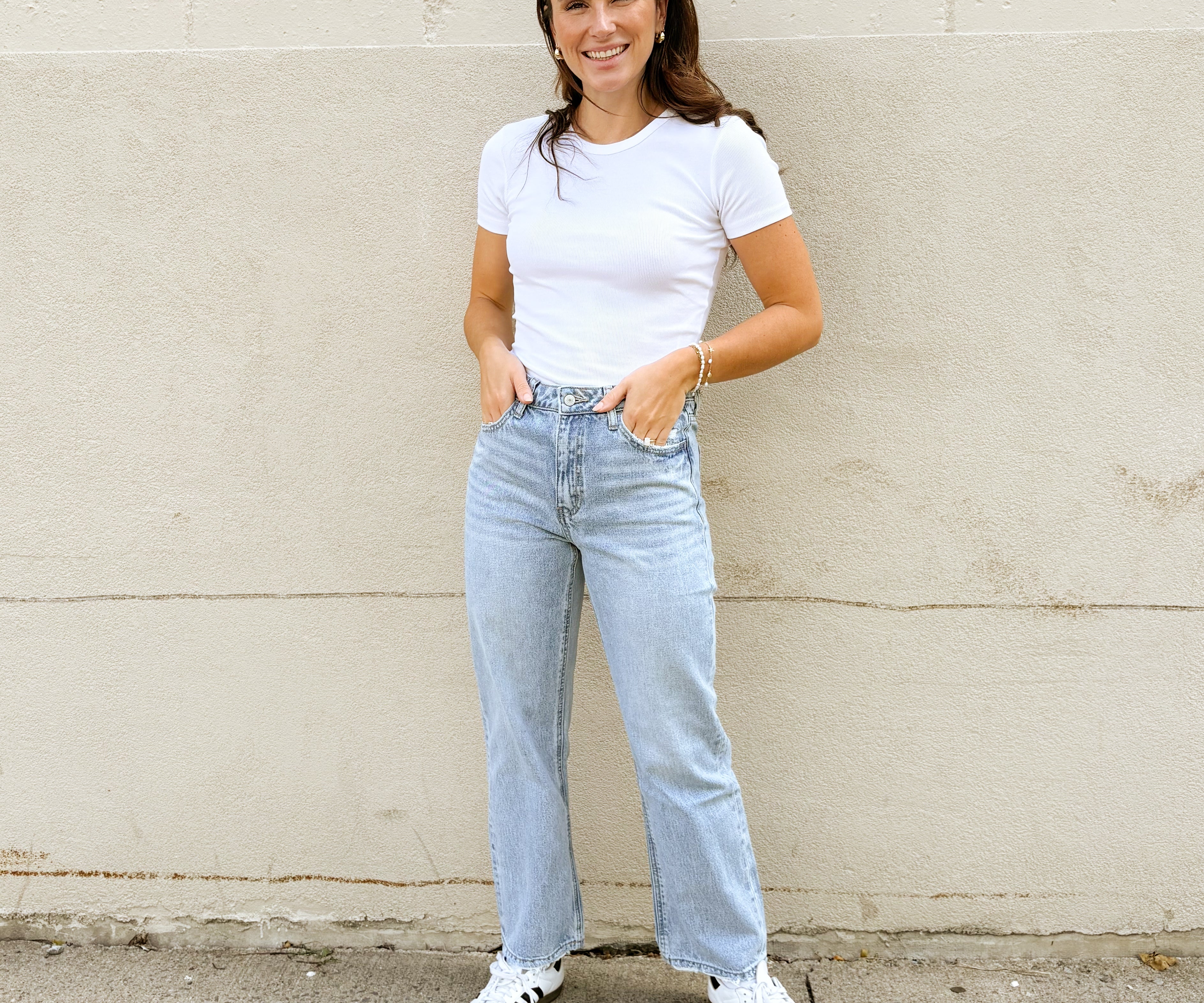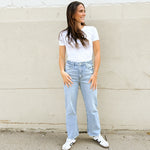 Embrace retro style with these 90's Super High Rise Ankle Slim Wide Jeans. Crafted from non-stretch denim, they offer a structured fit that highlights your waist with an 11" rise. The distressed detailing adds authentic vintage appeal, while the ankle-length cut and 17.5" leg opening create a flattering slim wide silhouette that’s both trendy and comfortable. Perfect for elevating any casual look with nostalgic edge.