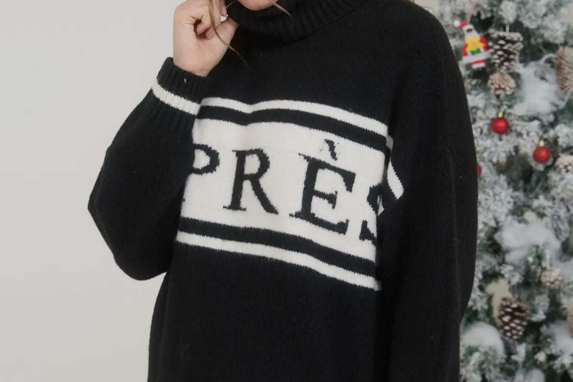 Elevate your everyday wardrobe with the Après Turtleneck Long Sleeve Knit Pullover, where comfort meets contemporary style. This relaxed-fit knit features a cozy turtleneck, drop shoulder sleeves, and an eye-catching multicolor stripe detail that adds visual interest to any outfit. The oversized silhouette provides effortless movement and a flattering drape, making it perfect for layering or wearing solo. Crafted from quality knit fabric, this versatile pullover transitions seamlessly from casual weekends to relaxed workdays. A wardrobe essential that combines warmth, style, and understated sophistication.