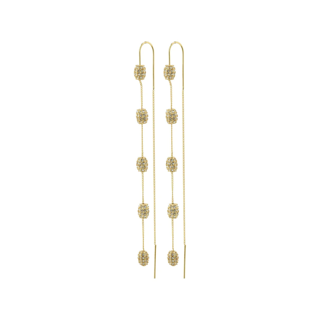 It's time to sparkle! Gold plated chain earrings from Pilgrim's Blink series! Stylish gold-plated chains with oval bombs of Preciosa crystals - giving you a real fairytale feel for a classy upscale party outfit.