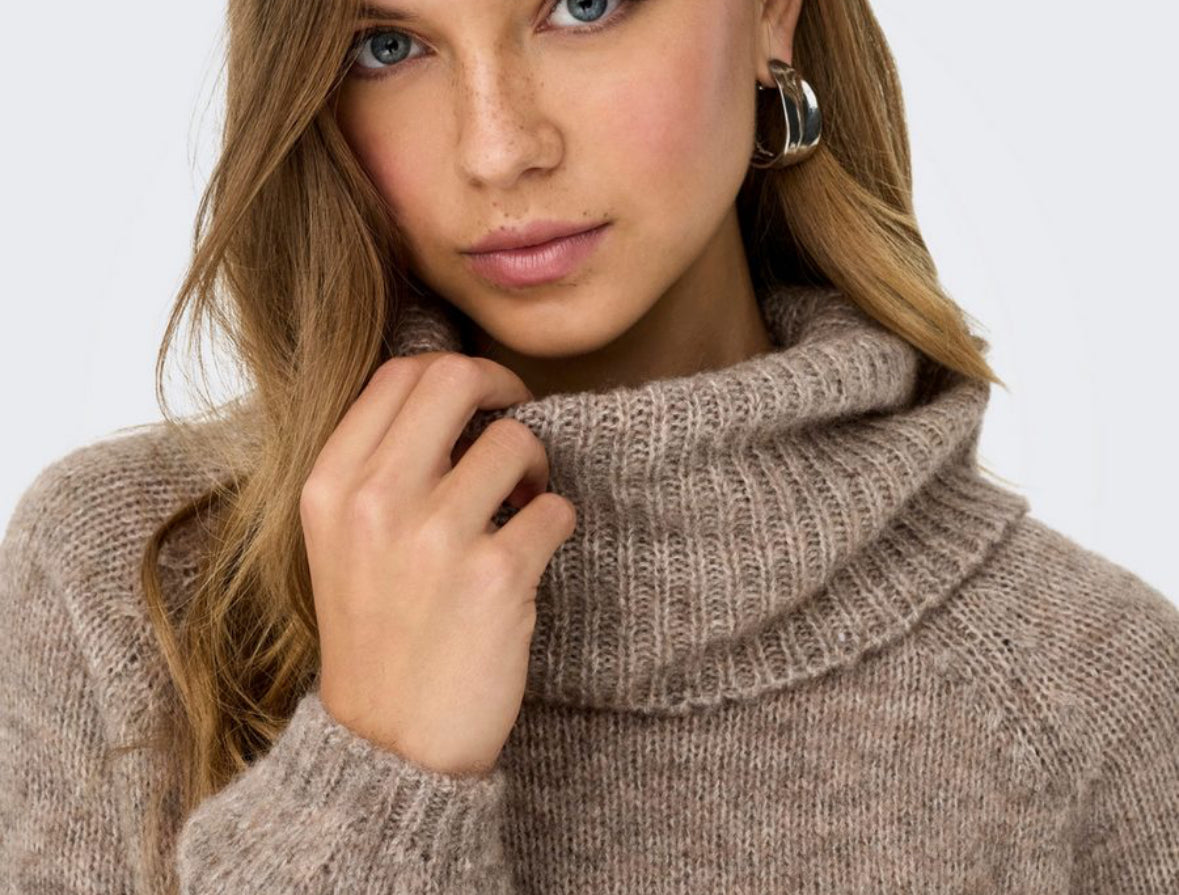 Get cozy and stylish with the Caiya Knit Pullover Turtleneck! Made from soft, lightweight fabric, this waist-length sweater is perfect for cooler days. Available in ash brown or sandy beige, it's sure to become your go-to piece for a casual yet chic look.