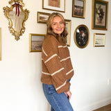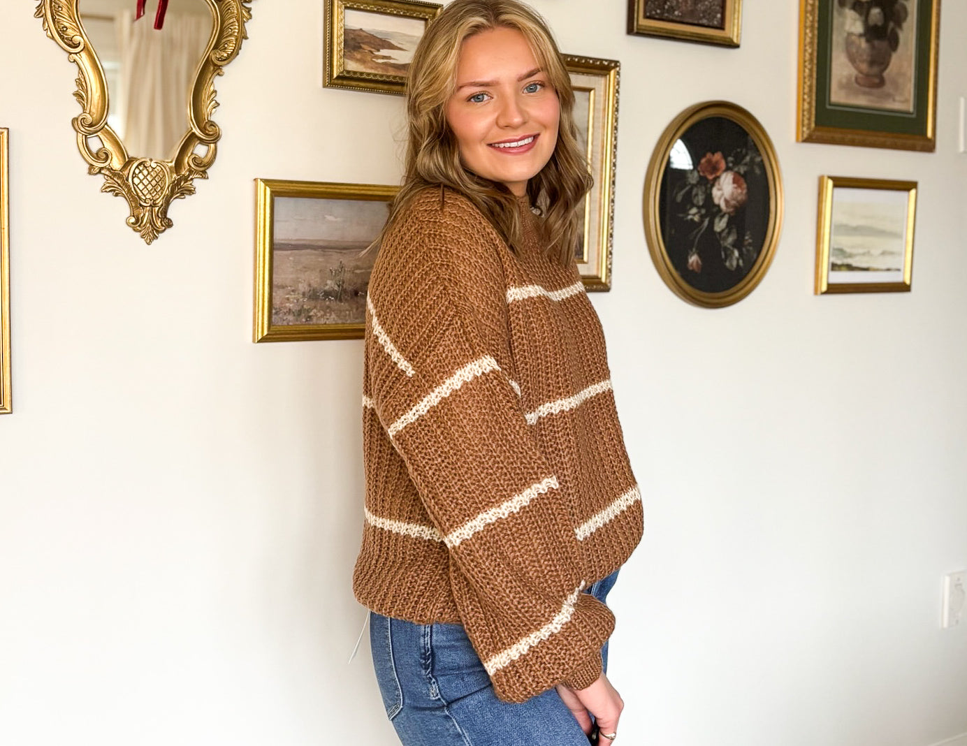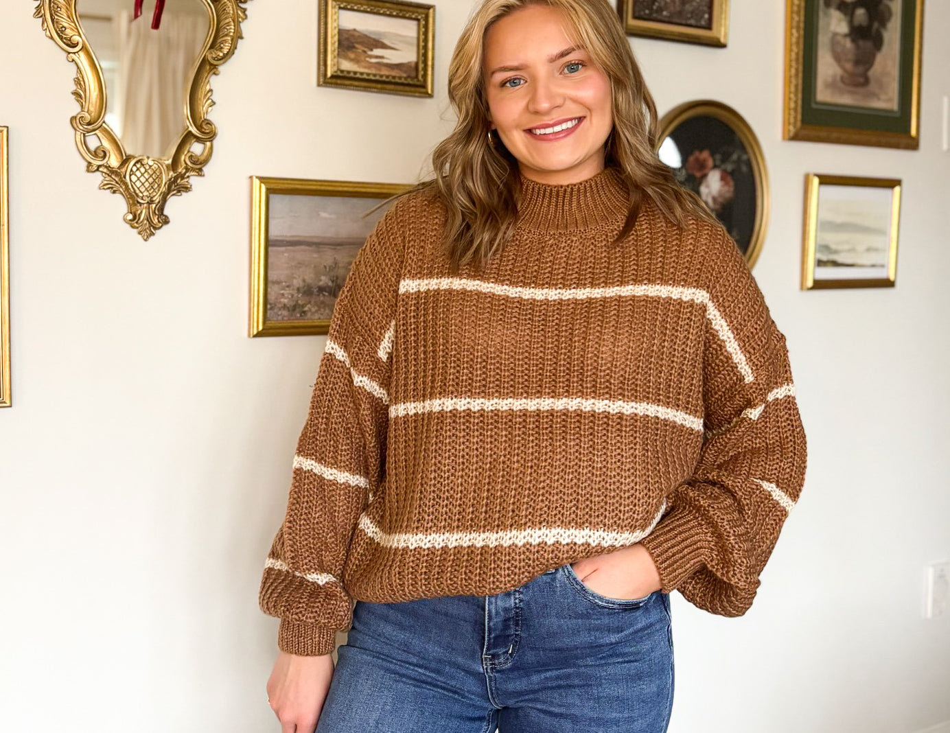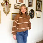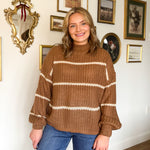 Indulge in comfort and style with the Daniella Woven Oversized Sweater! This stunning camel sweater features trendy stripes, a puff sleeve with a chic cuff, and a comfortably oversized fit. With a drop shoulder and woven knit, you'll stay warm and stylish all season long. Upgrade your wardrobe and feel confident in this must-have piece!