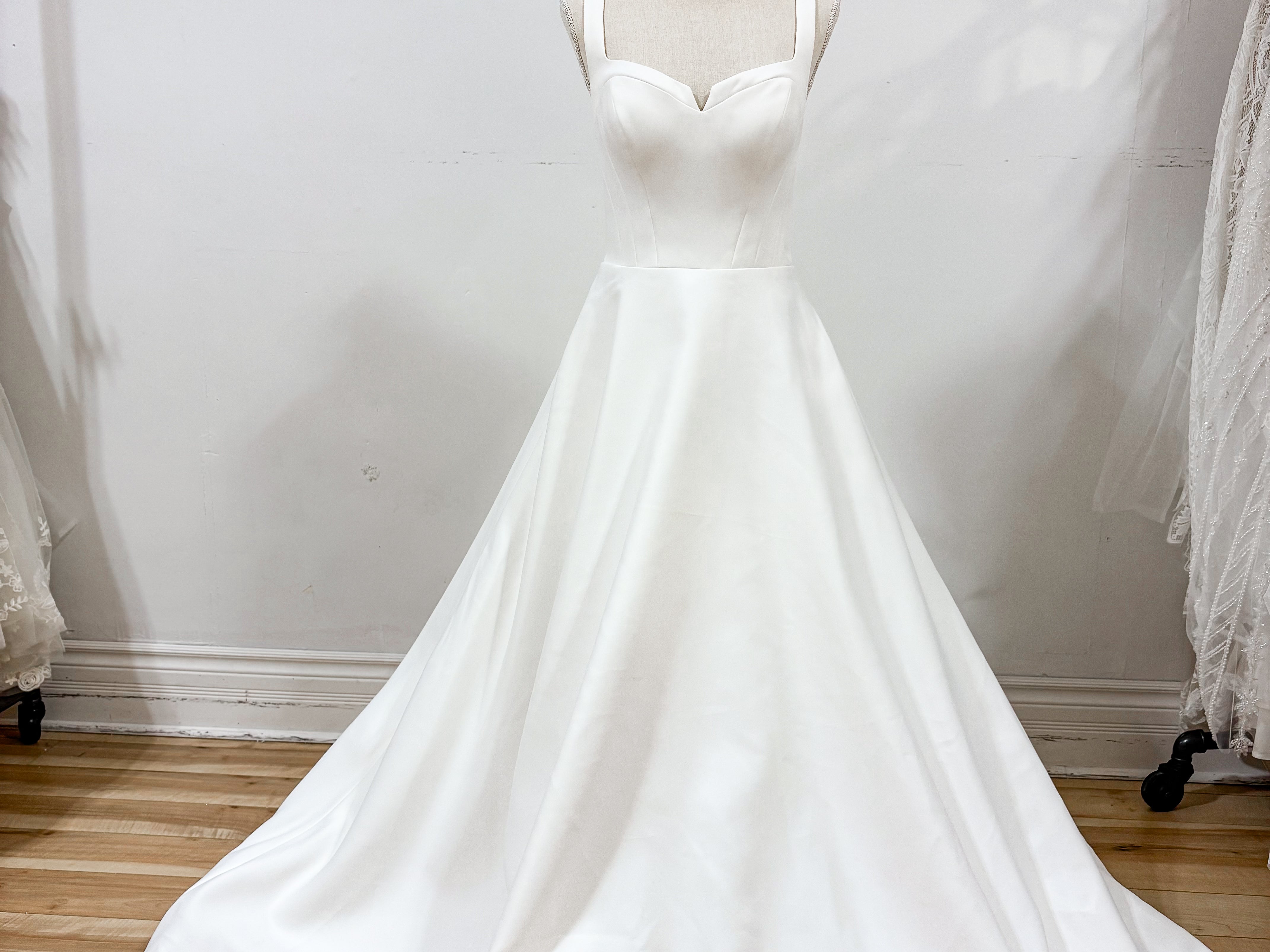 The Danielle dress features a sweetheart neckline and thick straps crafted from luxurious crepe material, combining comfort with elegance. Its simple yet refined A-line silhouette flatters every figure, making it a timeless piece perfect for any occasion where understated sophistication is key. Elevate your wardrobe with effortless grace in this versatile design.