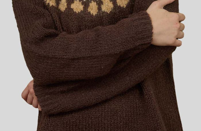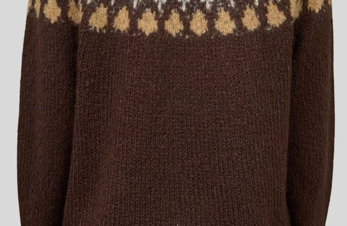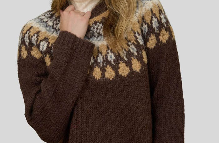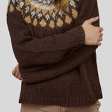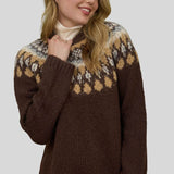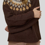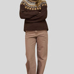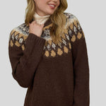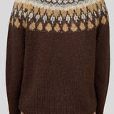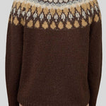 Fair Isle Pattern Long Sleeve Knit Sweater in Brown