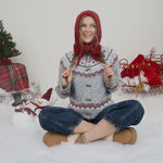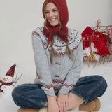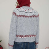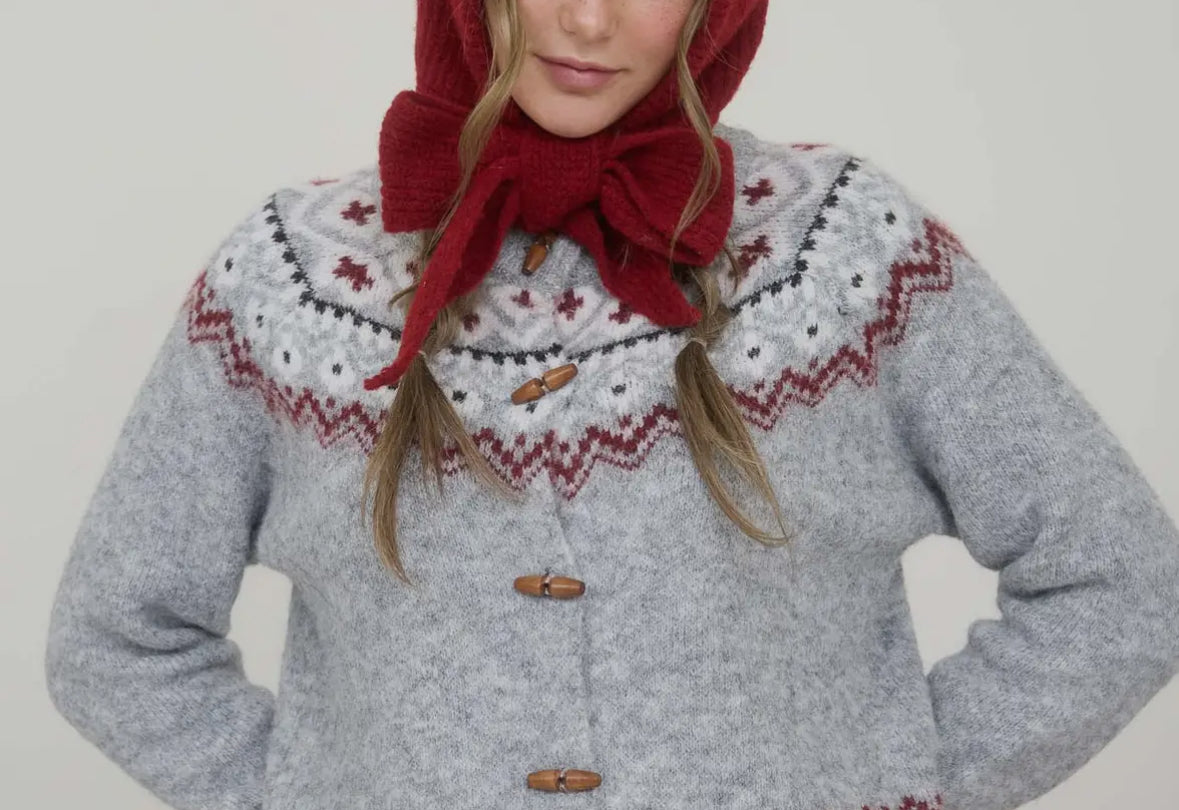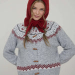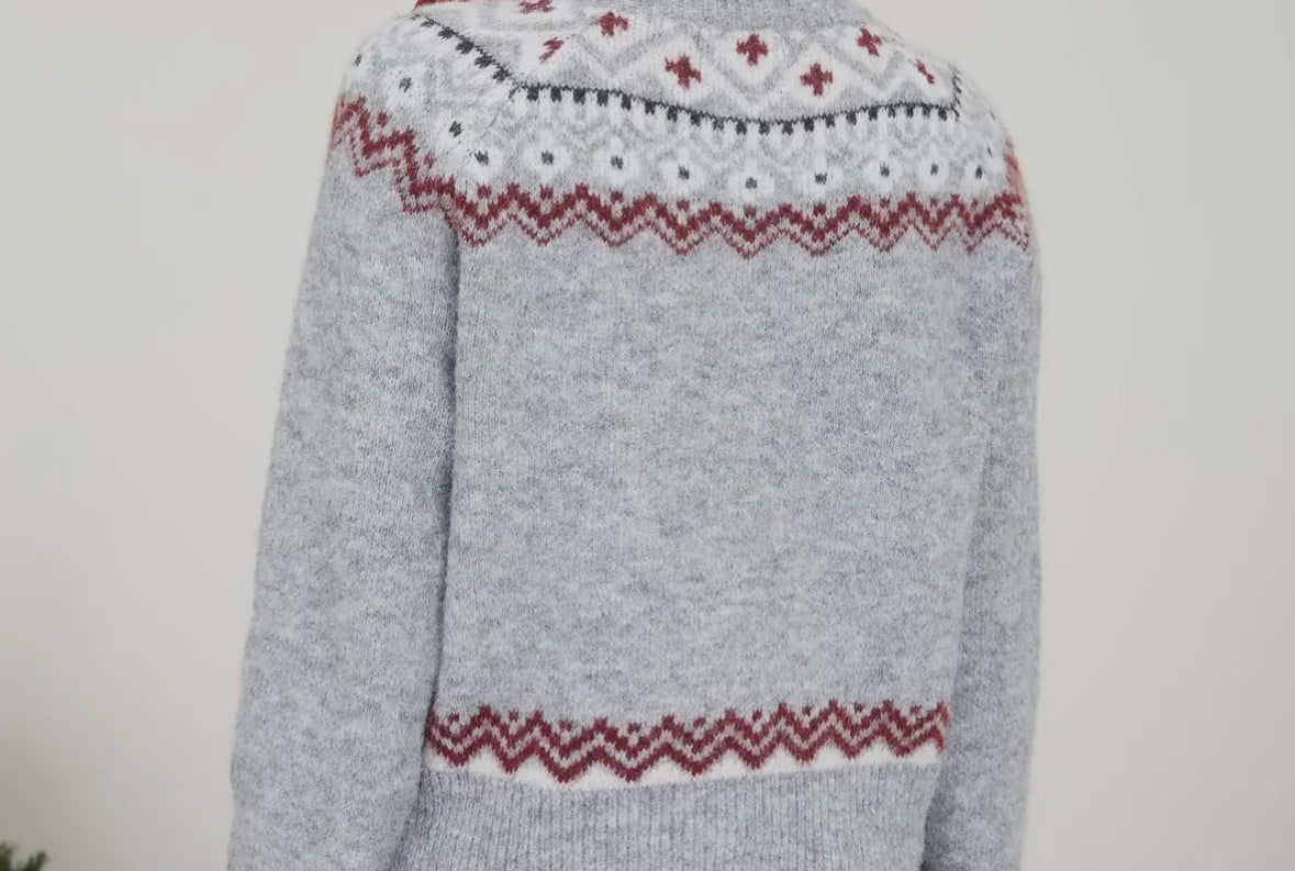 Faire Isle Toggle Button Knit Cardigan Sweater- Light Grey