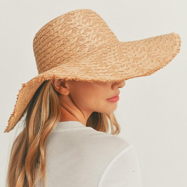 Solid Floppy Sun Hat With Fringe Edge Detail