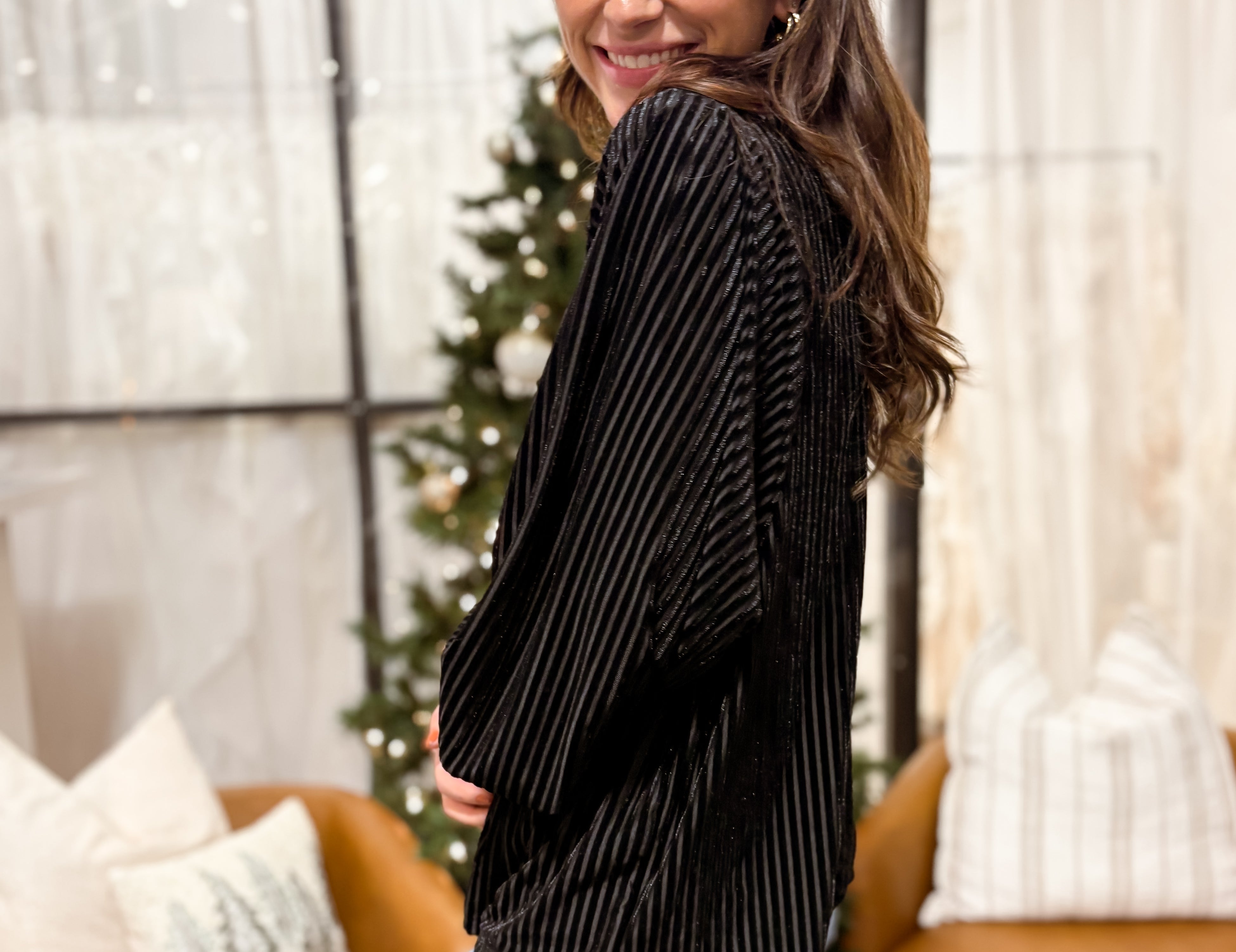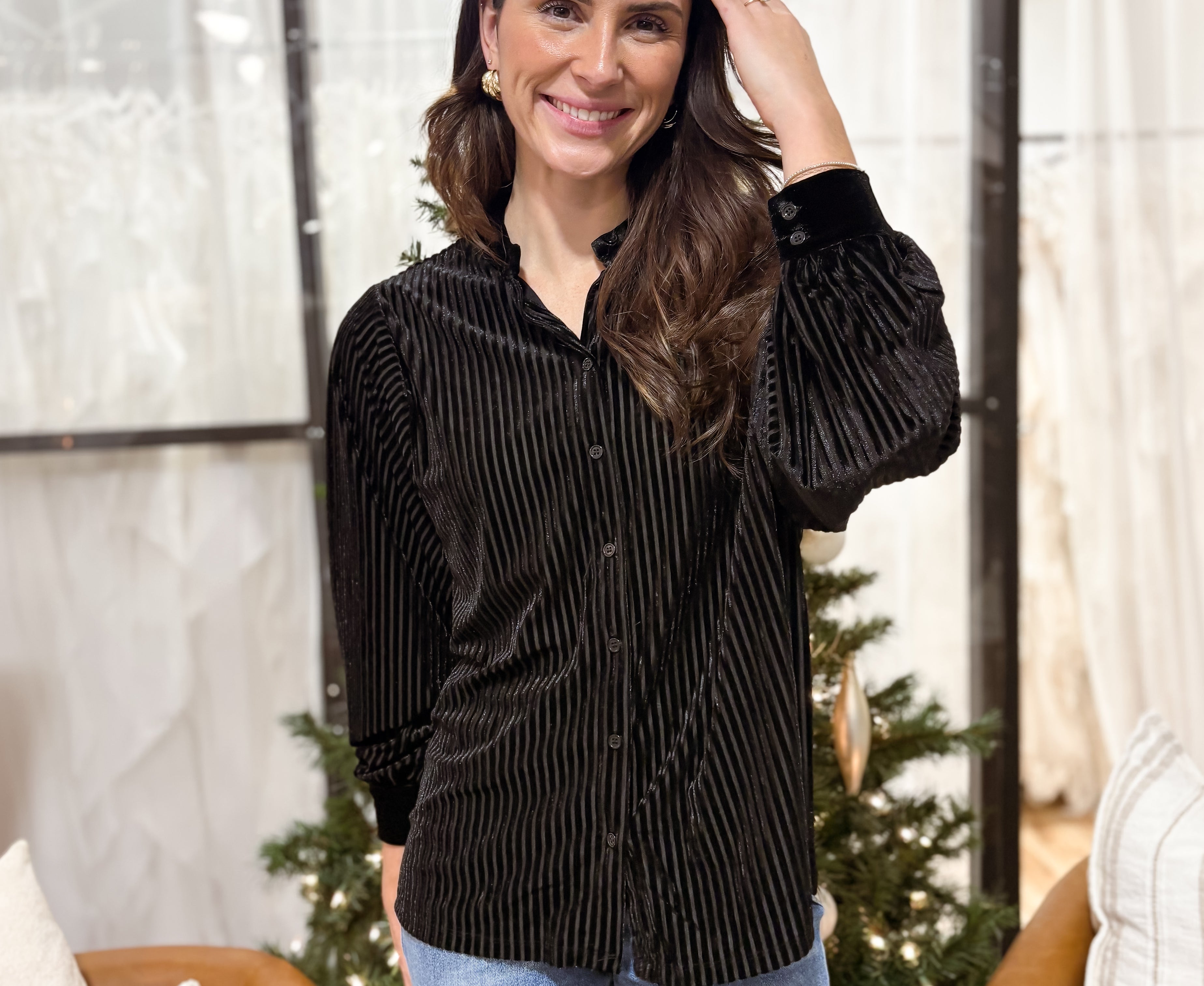 Elevate your style with our Francesca Button Down Velvet Blouse. The ribbed velvet material adds a touch of luxury, while the long sleeves and button cuffs keep you cozy and stylish. Wear it open or closed for a versatile, chic look. Add a touch of sophistication to any outfit!