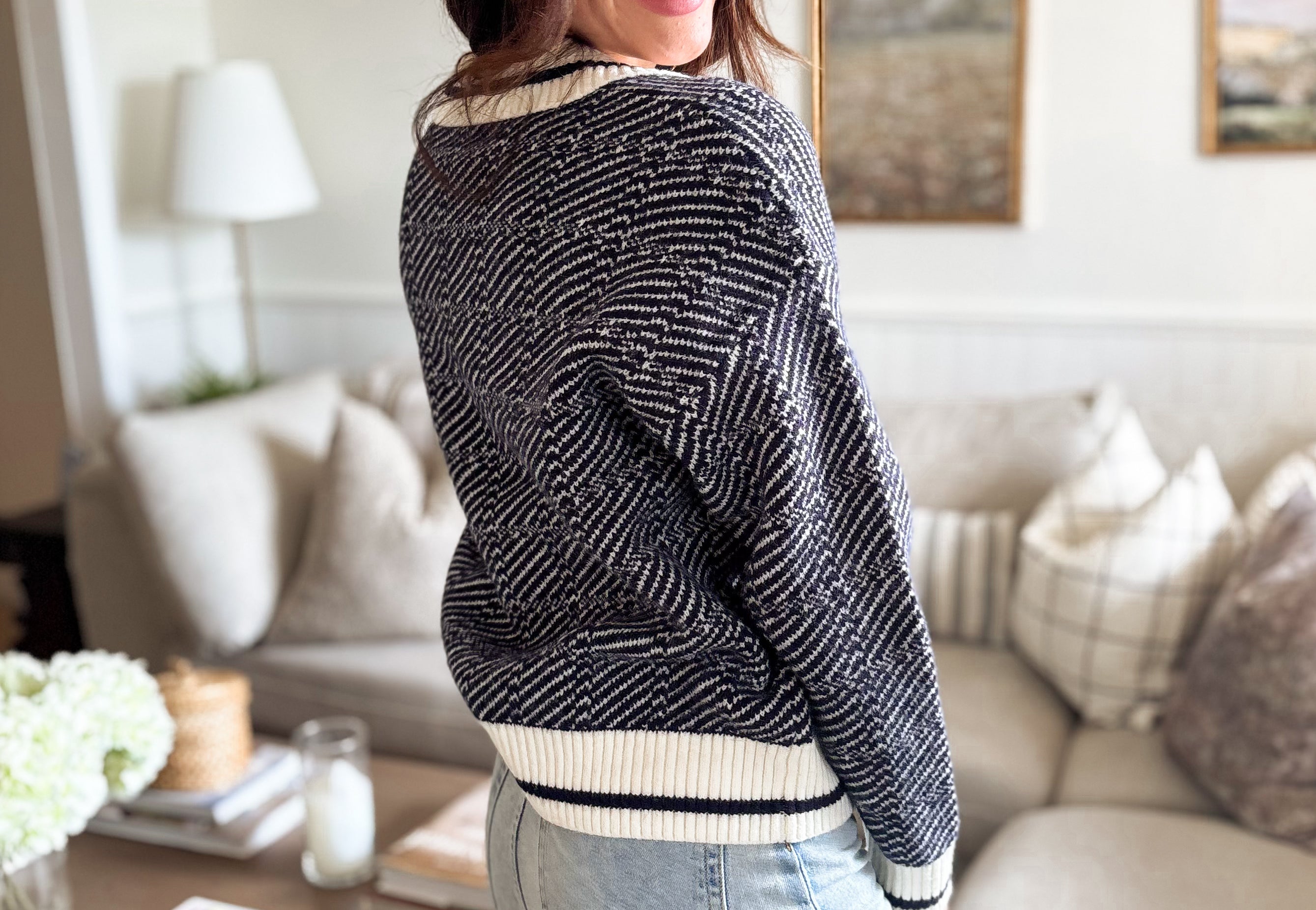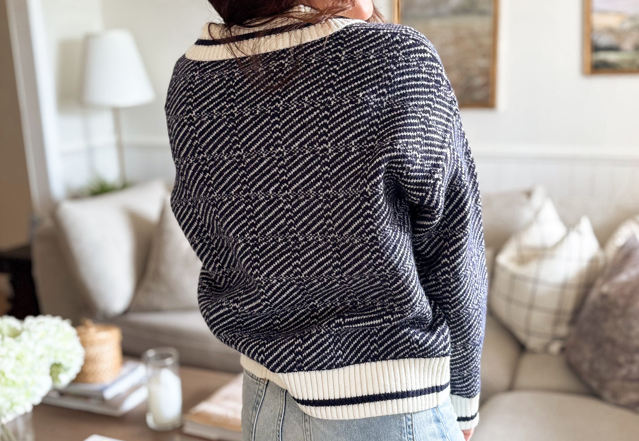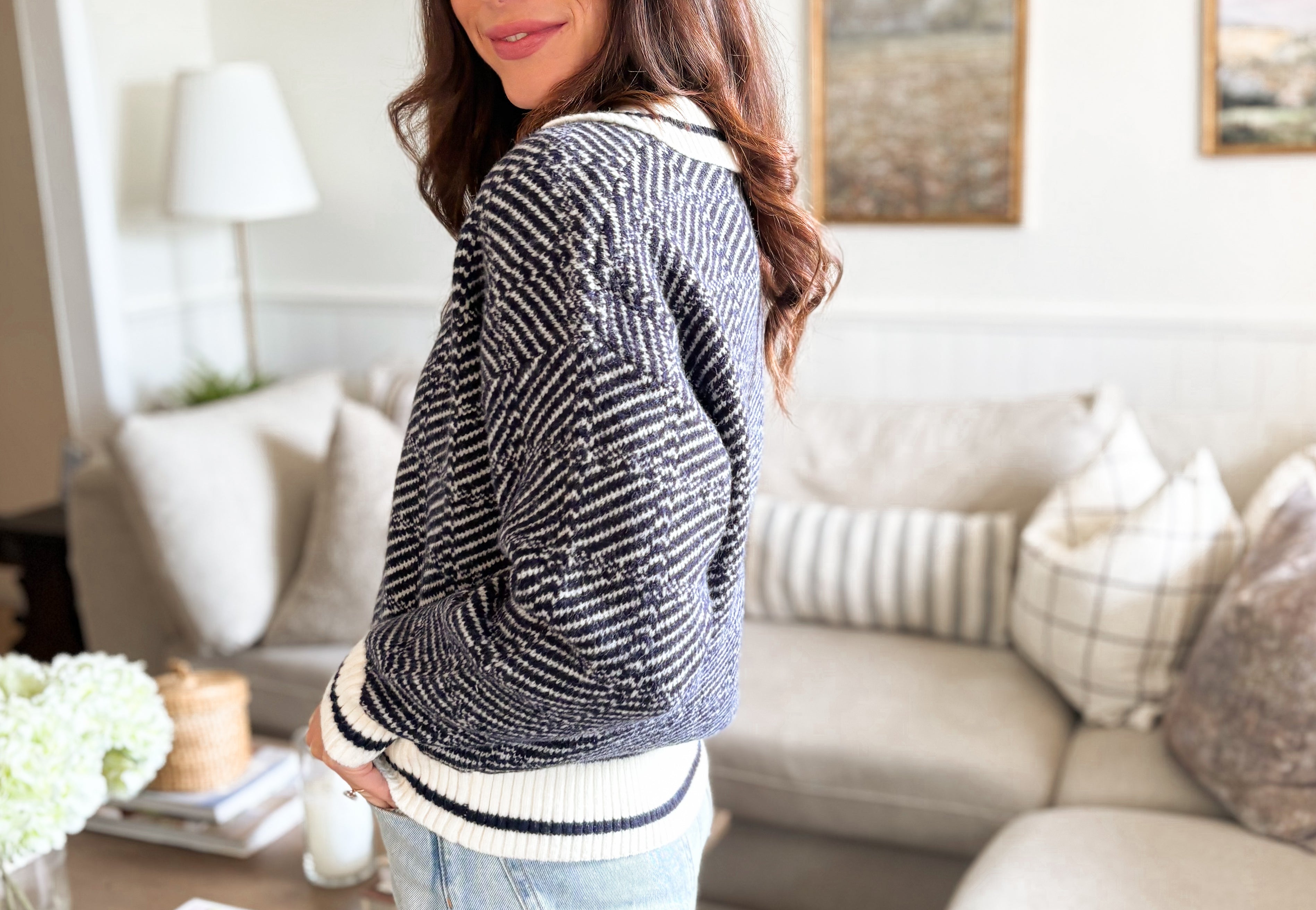 The Logan Geometric Stripe Pattern Collared Knit Sweater