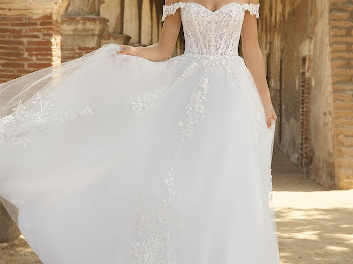 You must have shimmer. You must have shine. You must have an off-the-shoulder fairytale wedding gown made for dance floors and magical lighting.