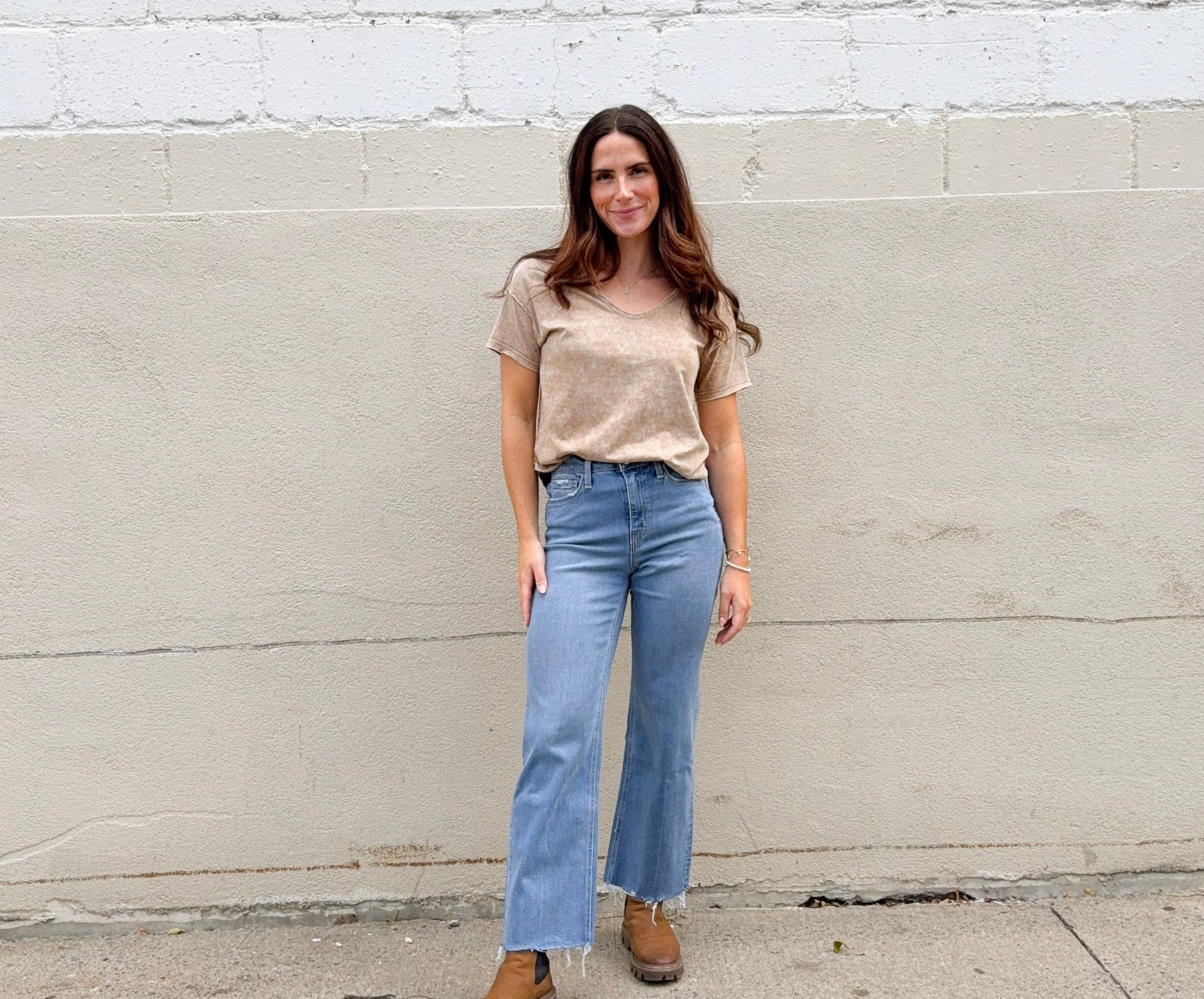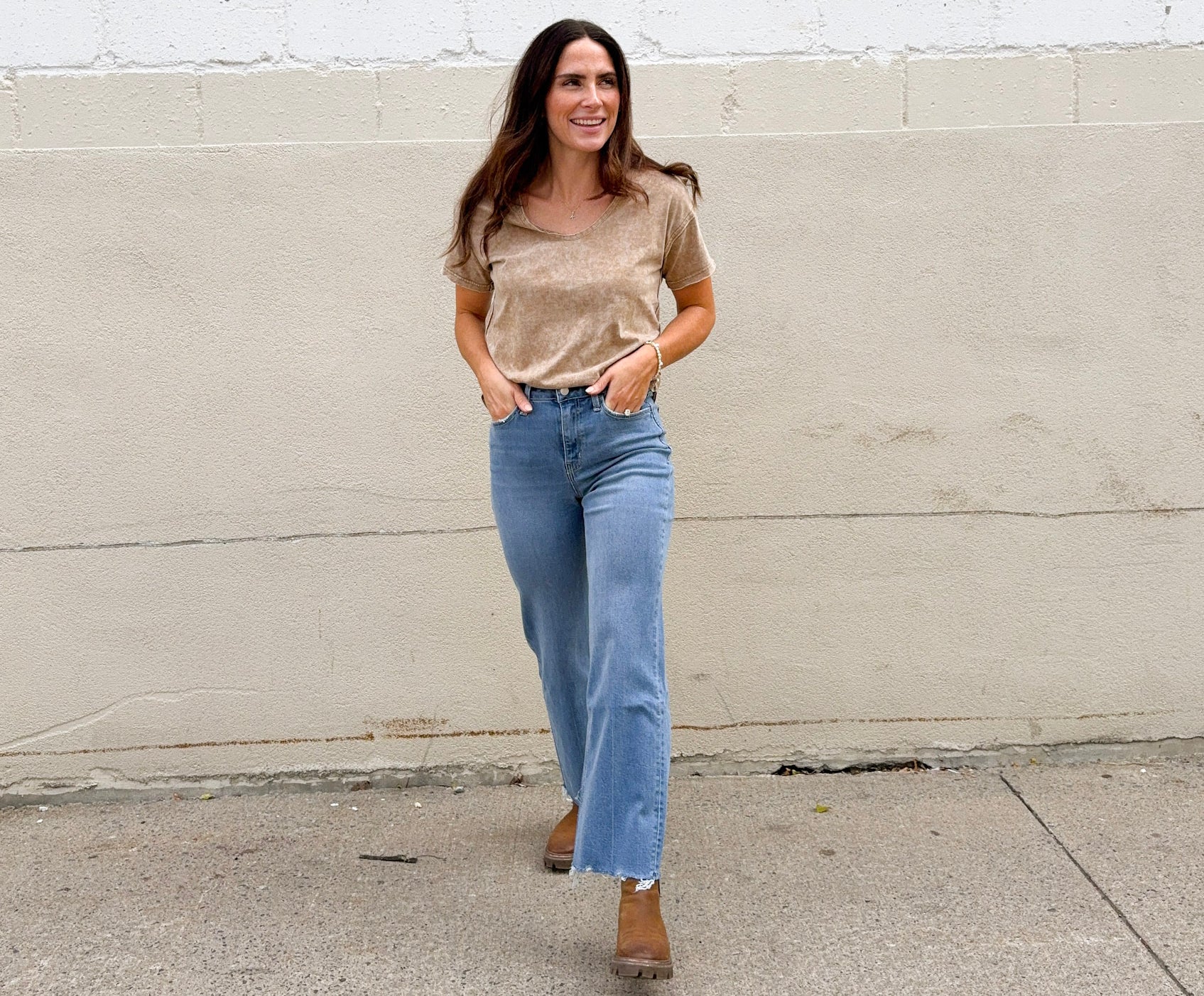 Elevate your wardrobe with these High Rise Raw Hem Ankle Slim Wide Jeans. Crafted from comfortable stretch denim, they offer a flattering high-rise waist that shapes and supports. The raw hem detail adds an edgy twist, while the ankle-length slim wide leg combines style and ease for versatile wear. Perfect for dressing up or down, these jeans blend trend and comfort effortlessly.