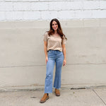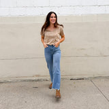 The Warnia High Rise Raw Hem Ankle Slim Wide Jeans
