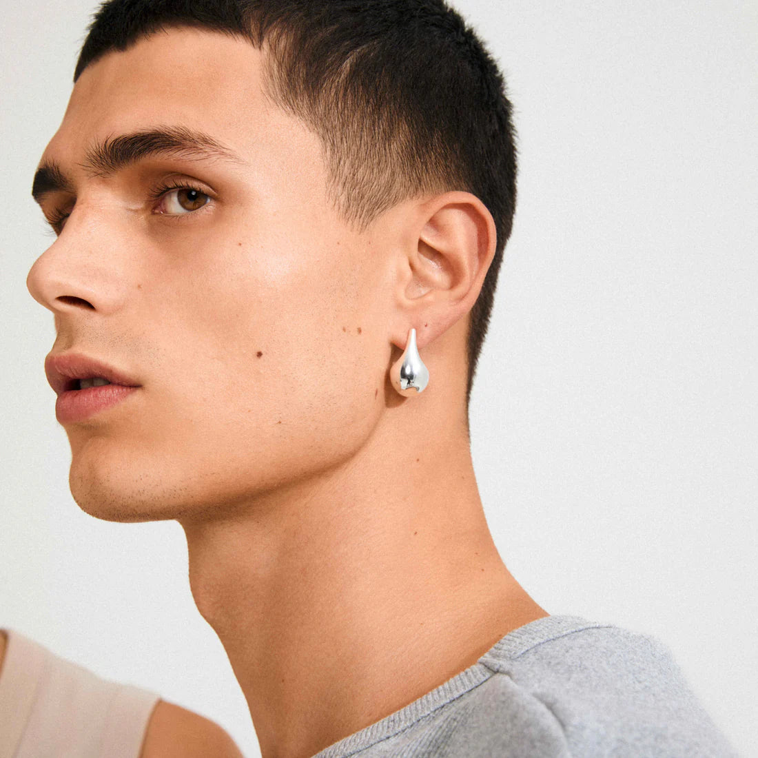Experience Nordic elegance with the JUNIPER recycled teardrop earrings in Silver and Gold. These sleek, silver-plated earrings catch the light with their shiny finish, adding a modern yet retro touch to your look. Crafted from 99% recycled material, they offer style with sustainability. Perfectly suited for both casual day wear and sophisticated evenings, JUNIPER earrings elevate minimalist autumn outfits, especially when paired with chunky knits and high-waisted trousers. Embrace fashion that honours the planet while enhancing your unique style. Measures 25mm in length