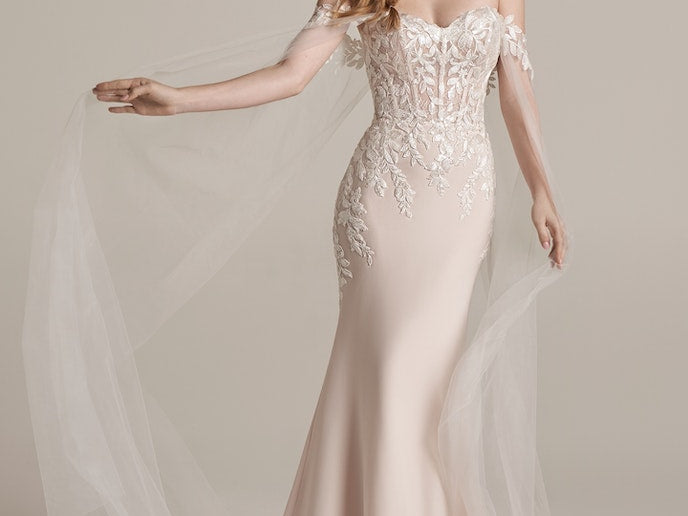 Featuring exposed boning in the bodice and irresistible lace motifs, this whimsical floral bridal dress is refined enough for the ballroom yet perfectly boho for an enchanted fairy forest.