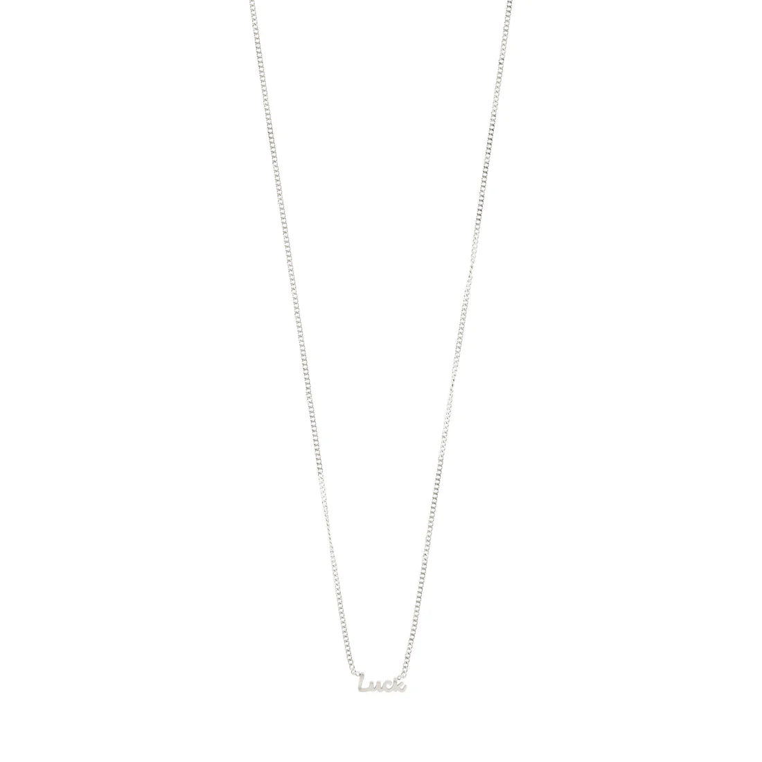 Reflect your love and wear your mantra with pride! With your new signature piece, you get a sleek, gold-plated or silver-plated necklace with a small pendant in cursive script with the word 'LUCK'. A genderless piece, that can be worn by anyone, and a great gift idea for a loved one. Wear it solo or layer up for a personalised look. No matter how you choose to style the chain, which measures 38 cm + 9 cm extension chain, it's a must-have in your daily wear collection. The necklace is made of 75% min. recycled material with consideration for our shared planet.