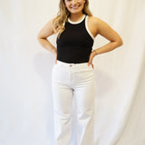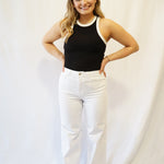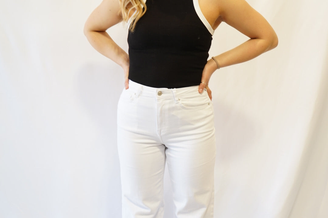 Elevate your style with Madison High Waisted Wide Leg Jeans. These comfortable and stretchy denim jeans feature a high waist and wide leg design for a flattering fit. Made with 92% organic cotton for added sustainability. Feel confident and stylish in these must-have jeans!