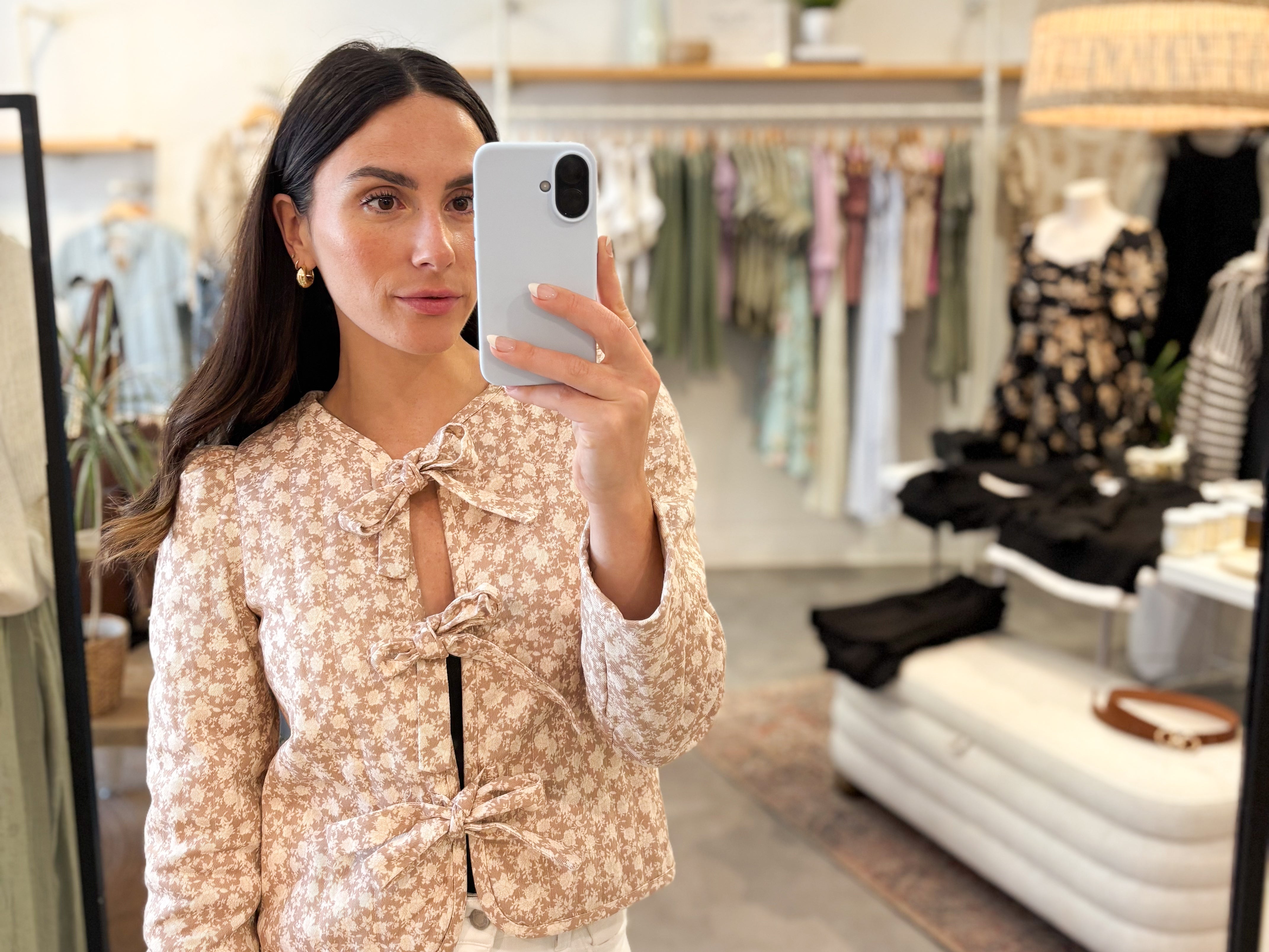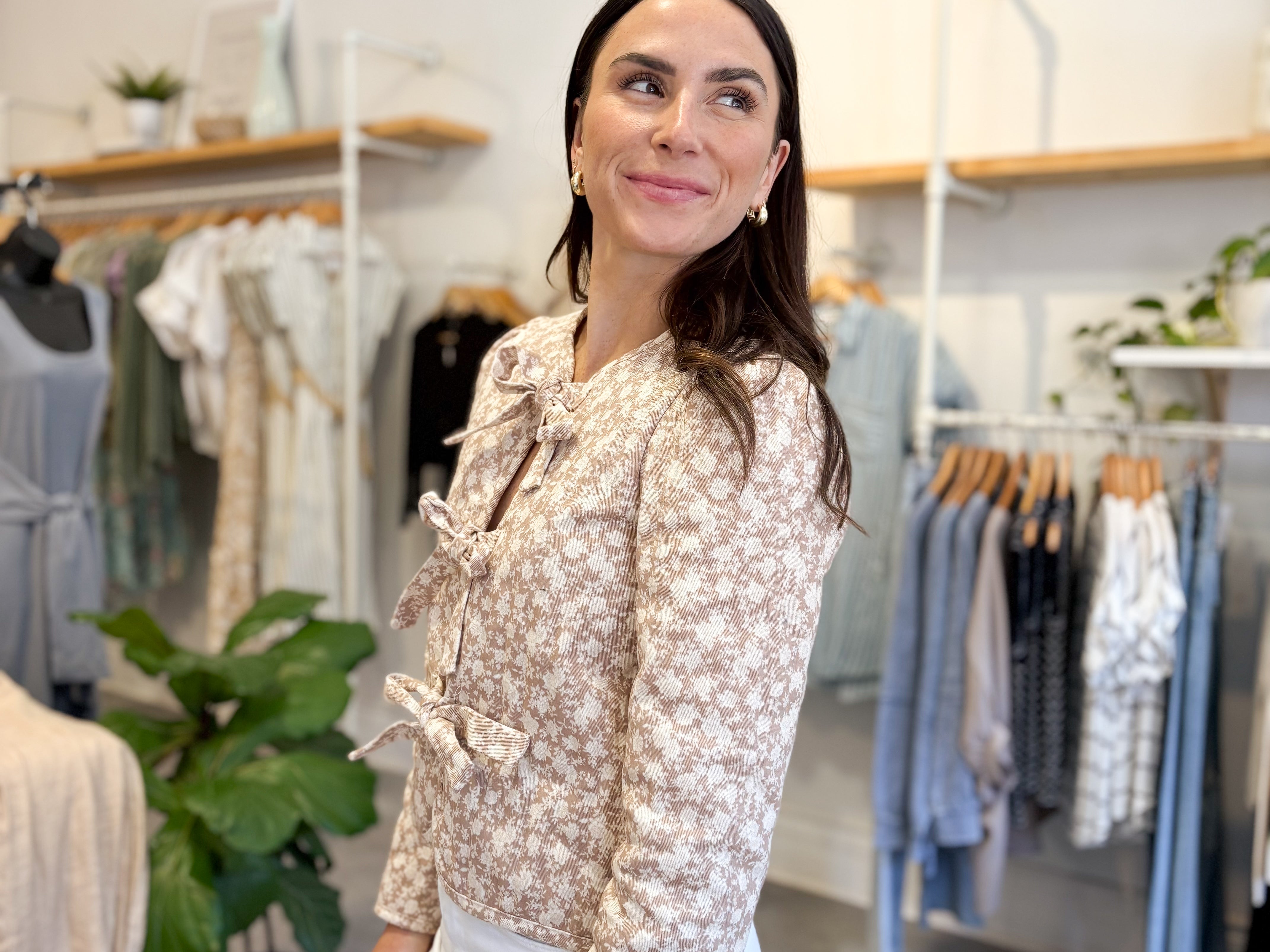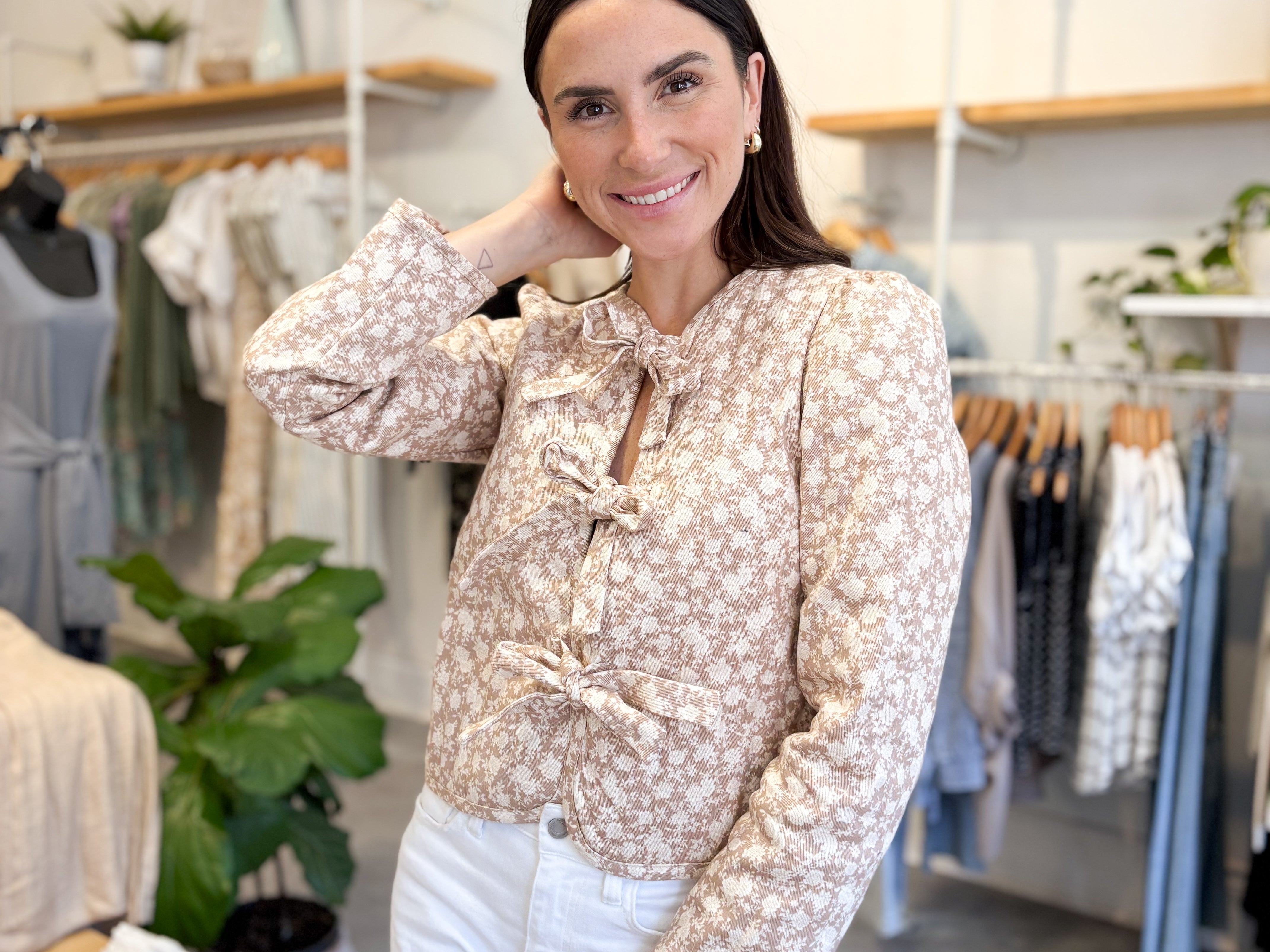 Passionately believe in the versatile beauty of our Marla Quilted Floral Shacket. Blushing blooms and adorable bow print quilted into a stylish, tie-up shacket. Embrace the comfort and style of this one-of-a-kind piece, perfect for any occasion. Don't miss out on this must-have addition to your wardrobe!
