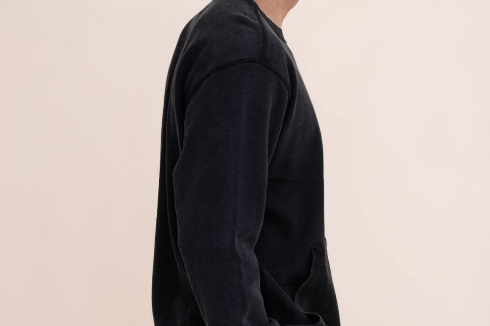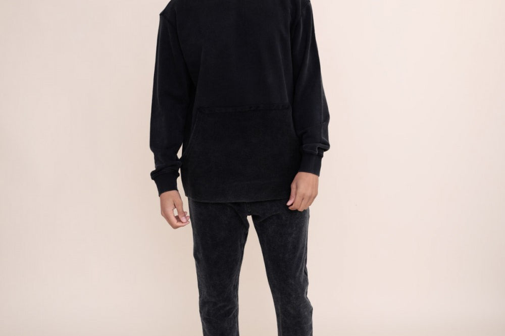 Catch all the double takes in this mineral-washed pullover. We flipped around the pocket and sewed it on this 100% cotton piece creating a subtle show-stopper. Relaxed elastic waist.