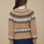 Multicolor Fair Isle Button Down Knit Cardigan in Khaki