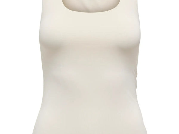 Experience versatility and comfort with the ONLEA 2-WAYS Fit Tank Top. Crafted from soft, stretchy nylon, this cream-colored tank offers two stylish options: a flattering round scoop neck or a modern high-cut neckline, reversible to suit your mood. Perfect for everyday wear, its breathable material ensures lasting comfort while adapting effortlessly to your look. Upgrade your wardrobe with this flexible, form-fitting tank that moves with you.