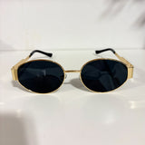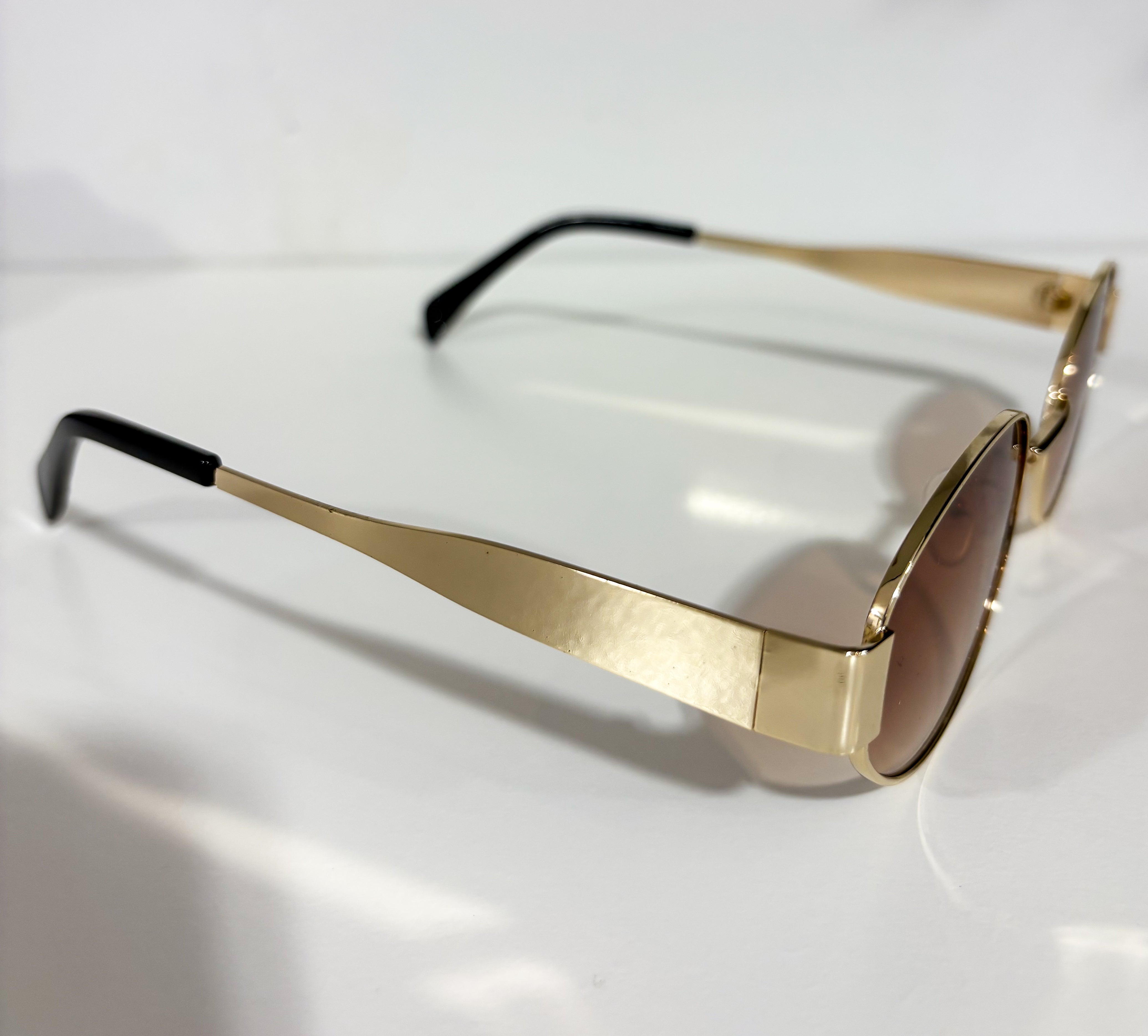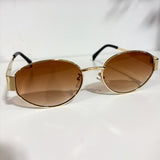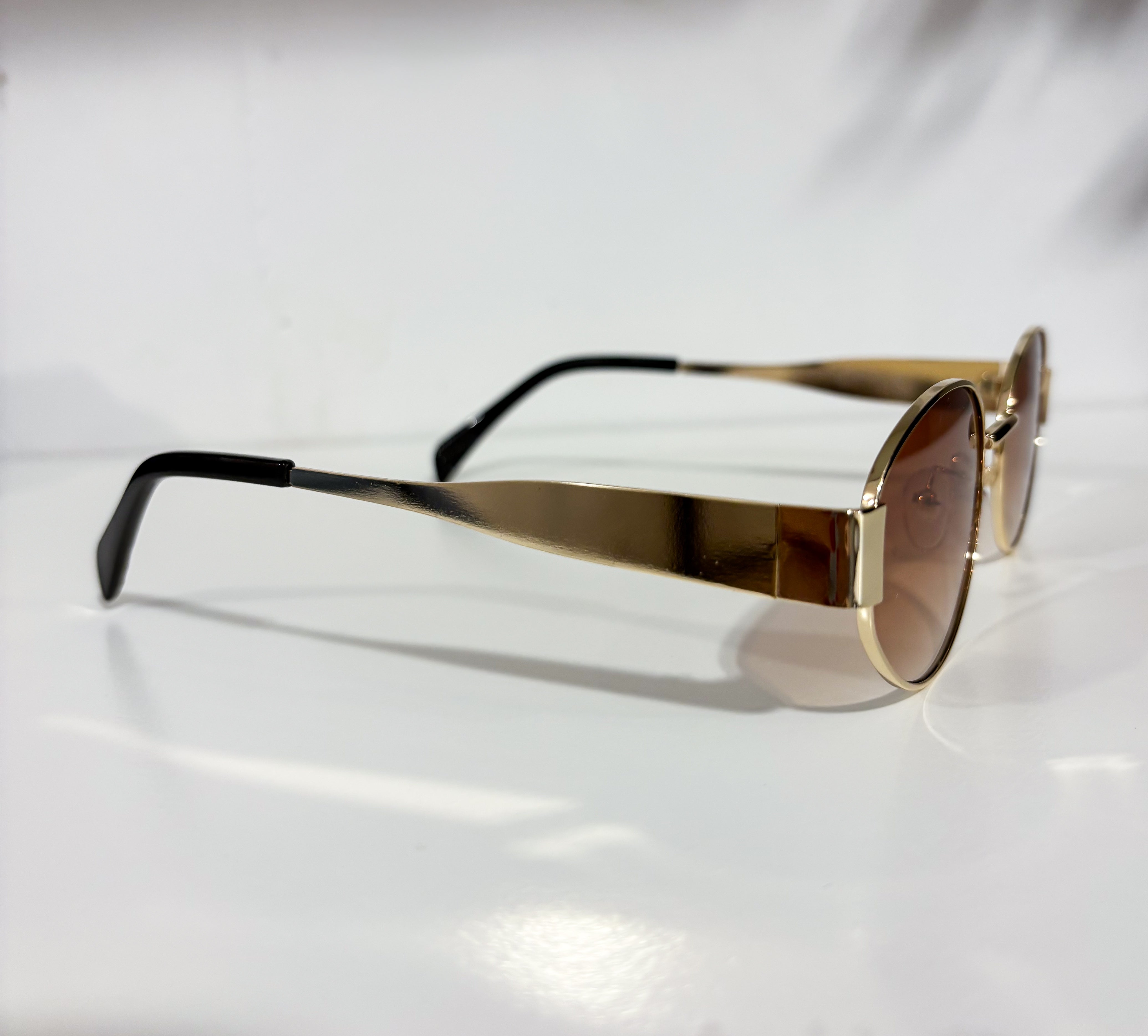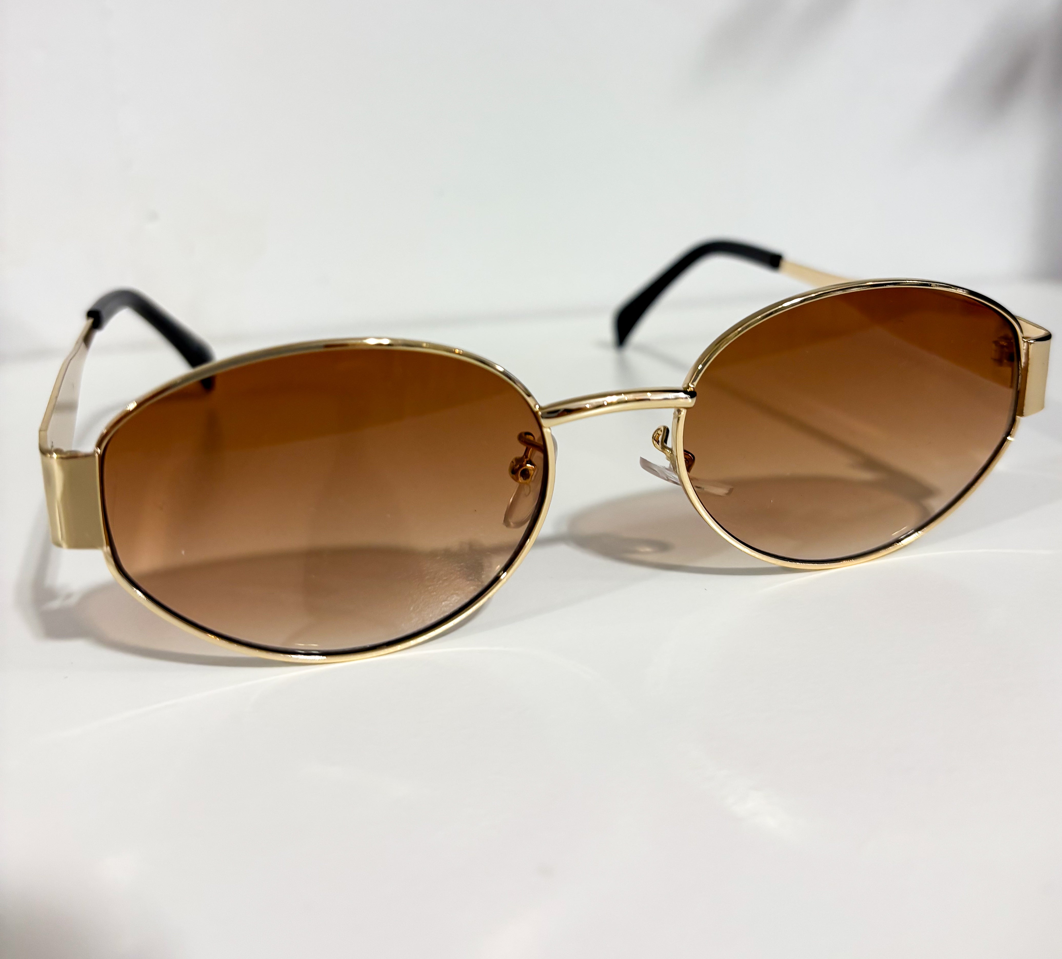 Experience timeless elegance with our Oval Gold Sunglasses. Featuring a chic and versatile oval gold arm, available with either brown or black lenses. Look stylish and sophisticated while protecting your eyes from the sun's rays. Upgrade your eyewear game today!