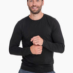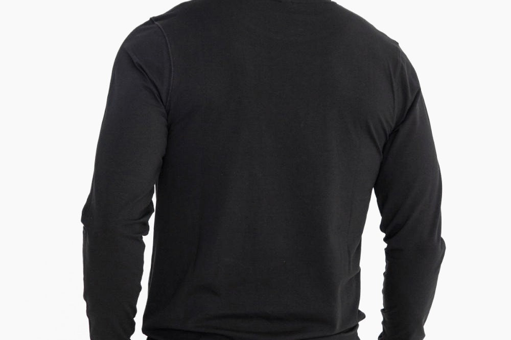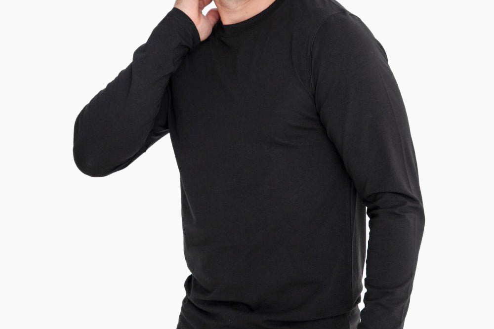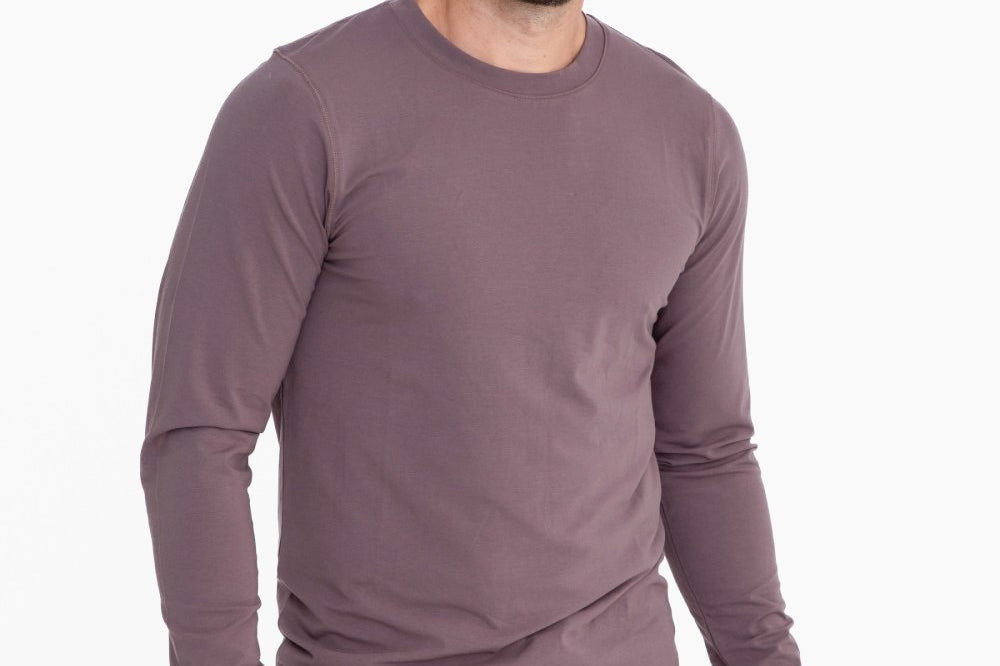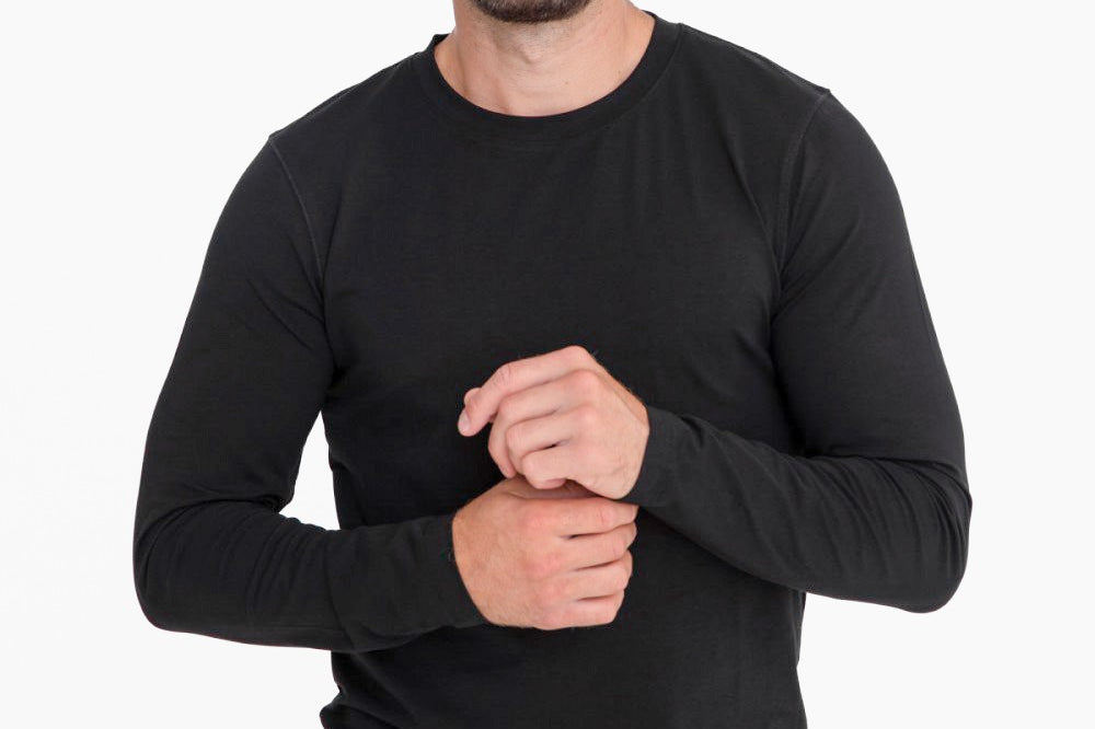 Stretchy and breathable (thanks to the pima cotton and spandex fibers), this long sleeve also features a round neckline and topstitch across the neckline and the armhole.