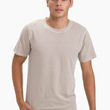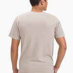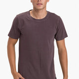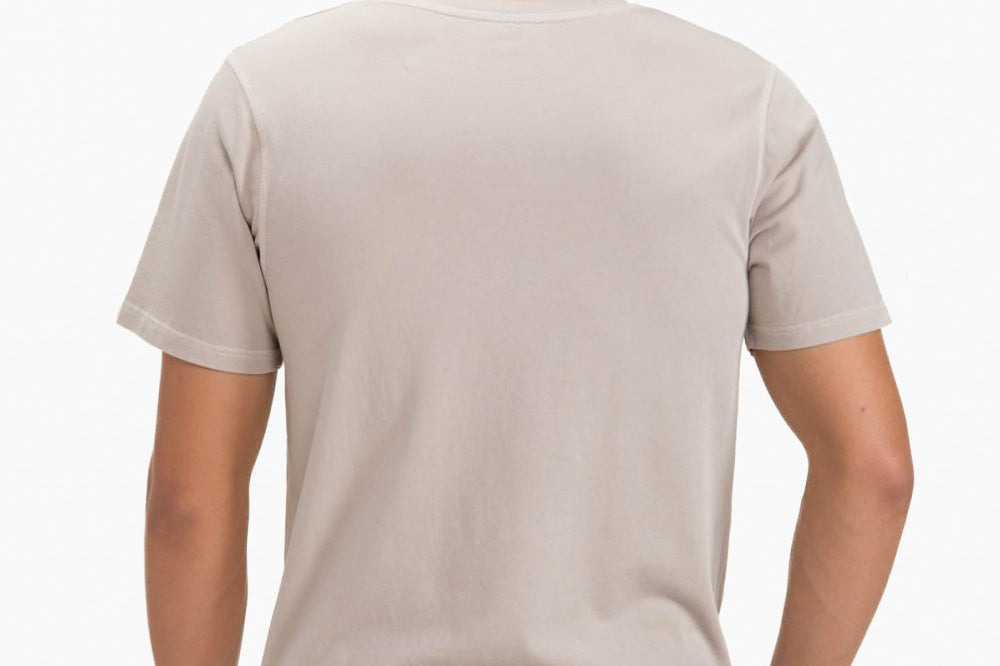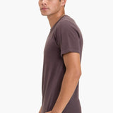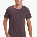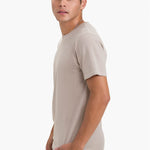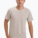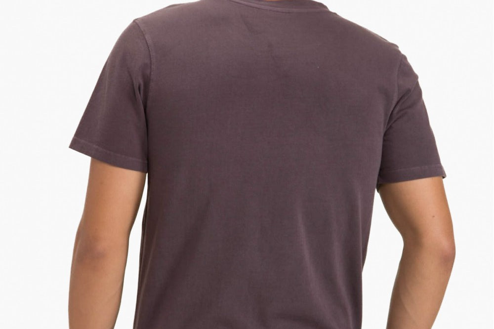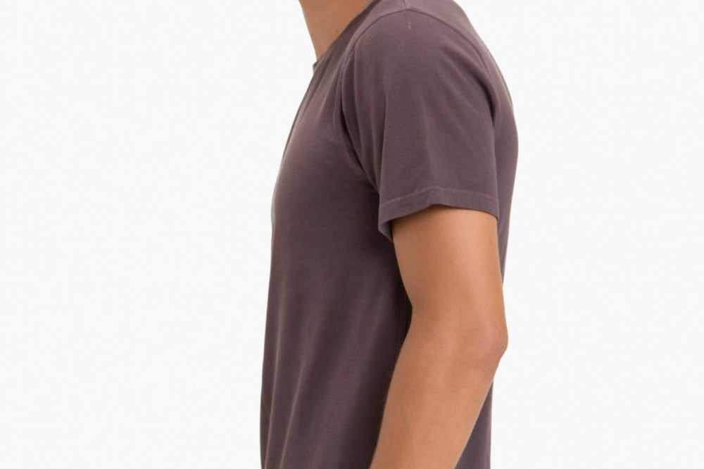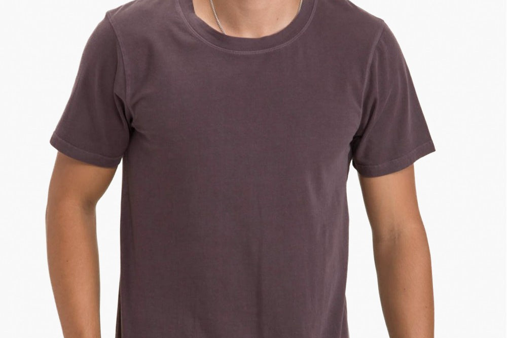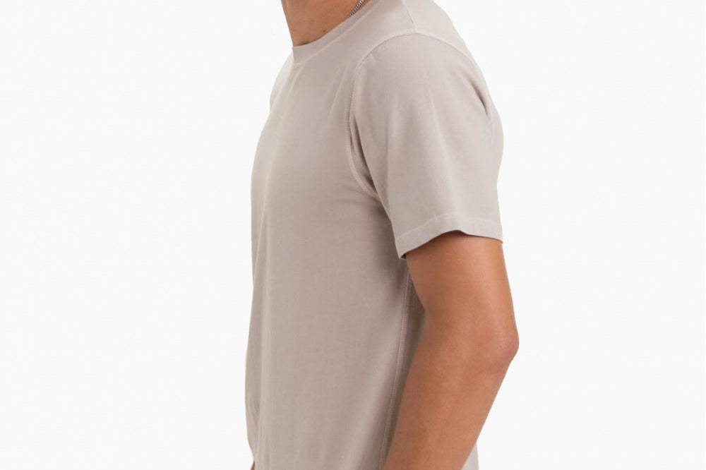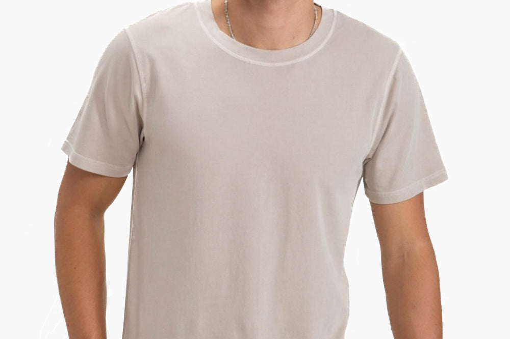 Stretchy and breathable (thanks to the pima cotton and spandex fibers), this t-shirt features a scalloped rounded hem on the side, has a round neckline, short sleeves, and a topstitch across the neckline and the armhole.