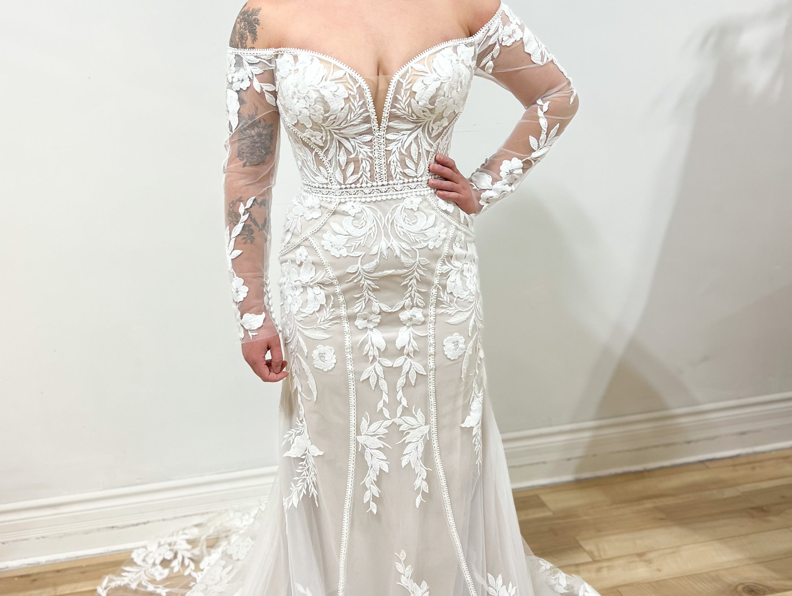For the boho queen, Rachel is another Love and Lee staff favourite! We love her unique off shoulder lace sleeves and gorgeous boho lace. Rachel is also one of the most flattering of our gowns.