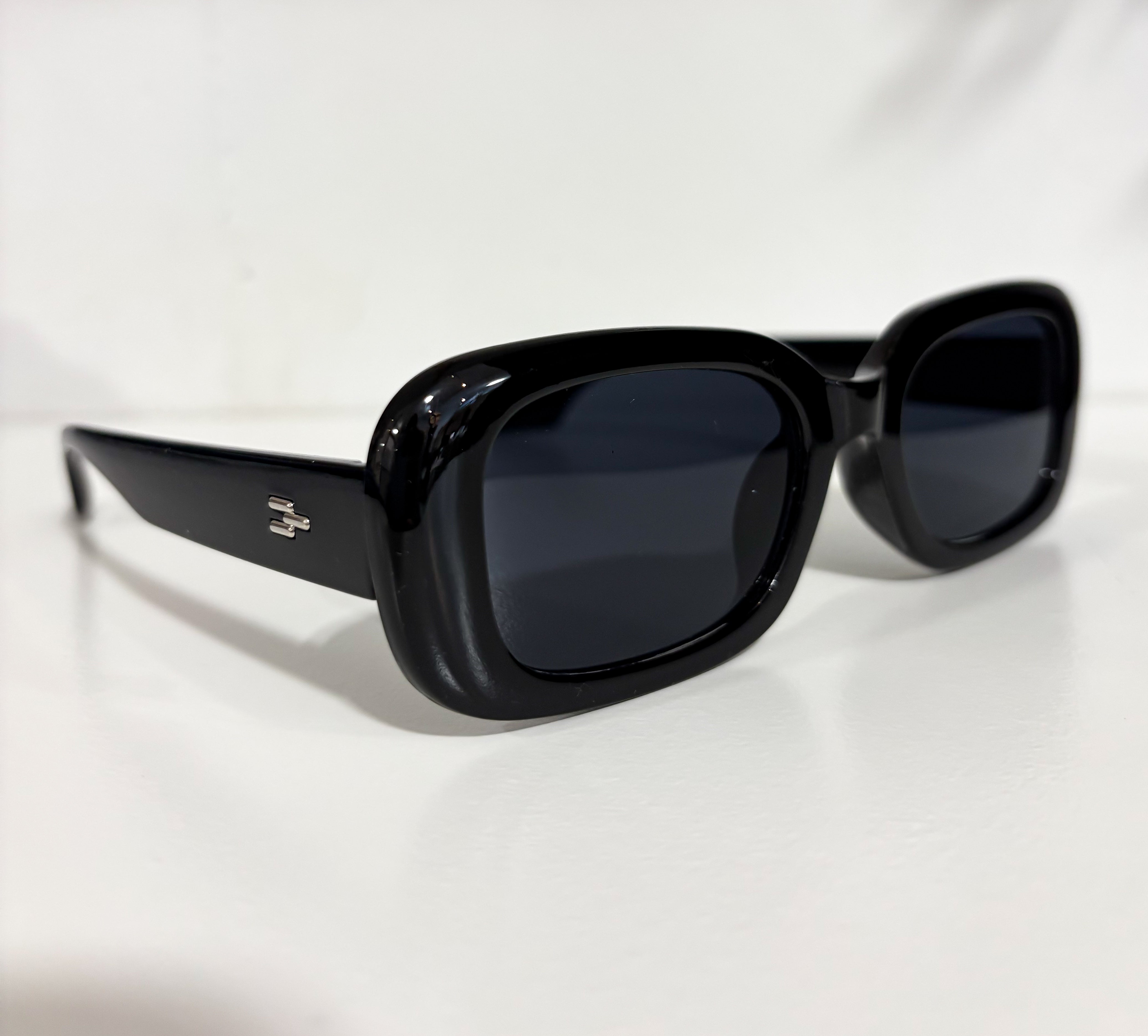 Embrace the sleek and sophisticated look with our Rectangle Black Sunglasses. The bold and classic rectangle shape offers a timeless style, while the black frame with silver accents adds a touch of modernity. With a thick frame, these sunglasses provide both fashion and function for all your sunny adventures!