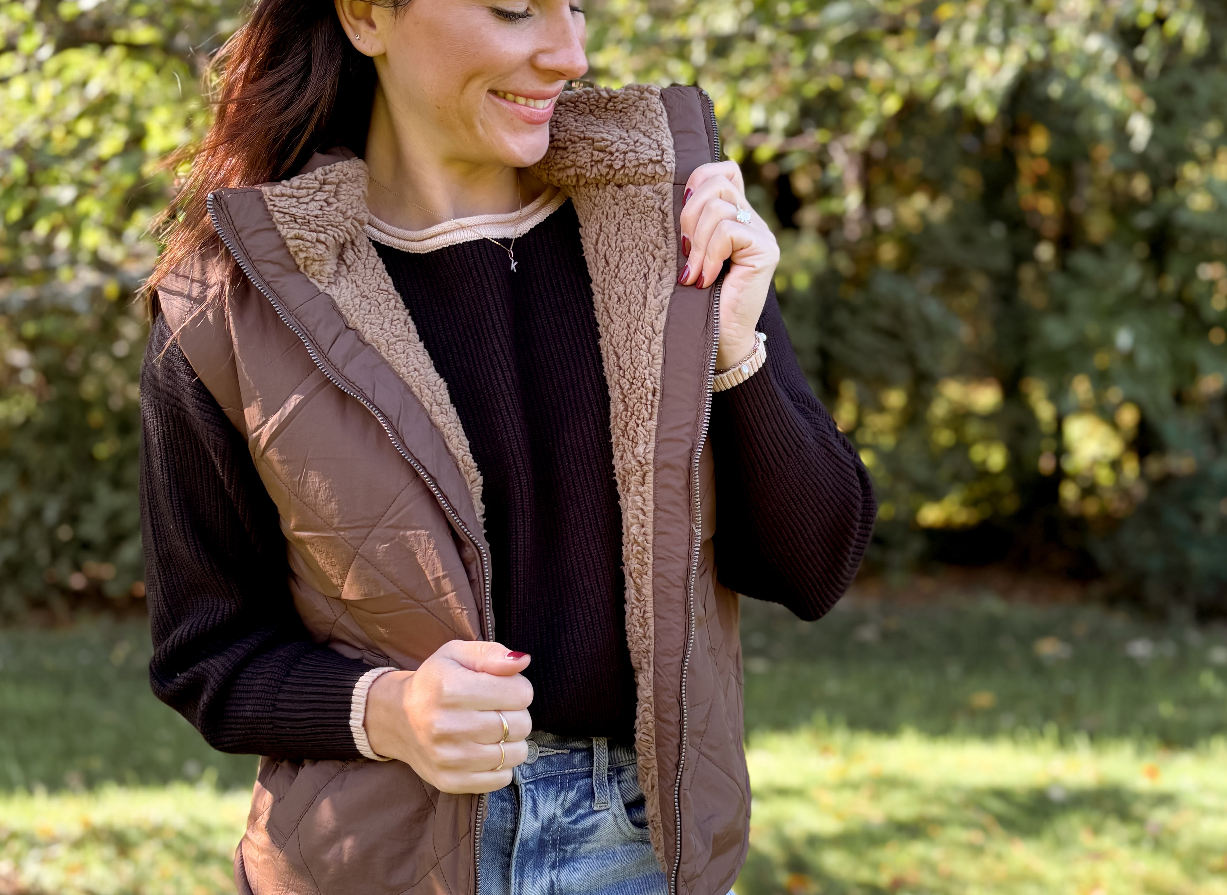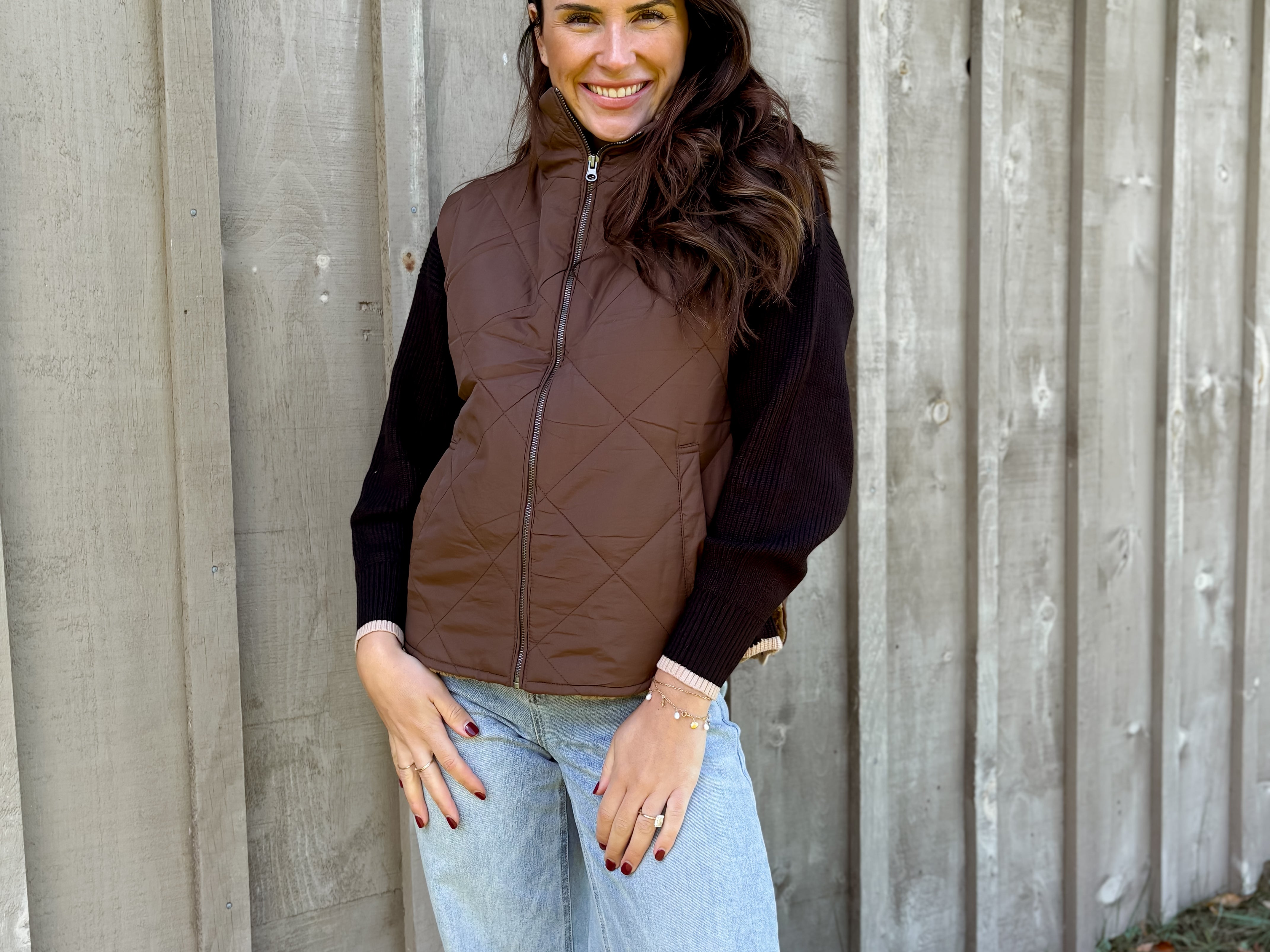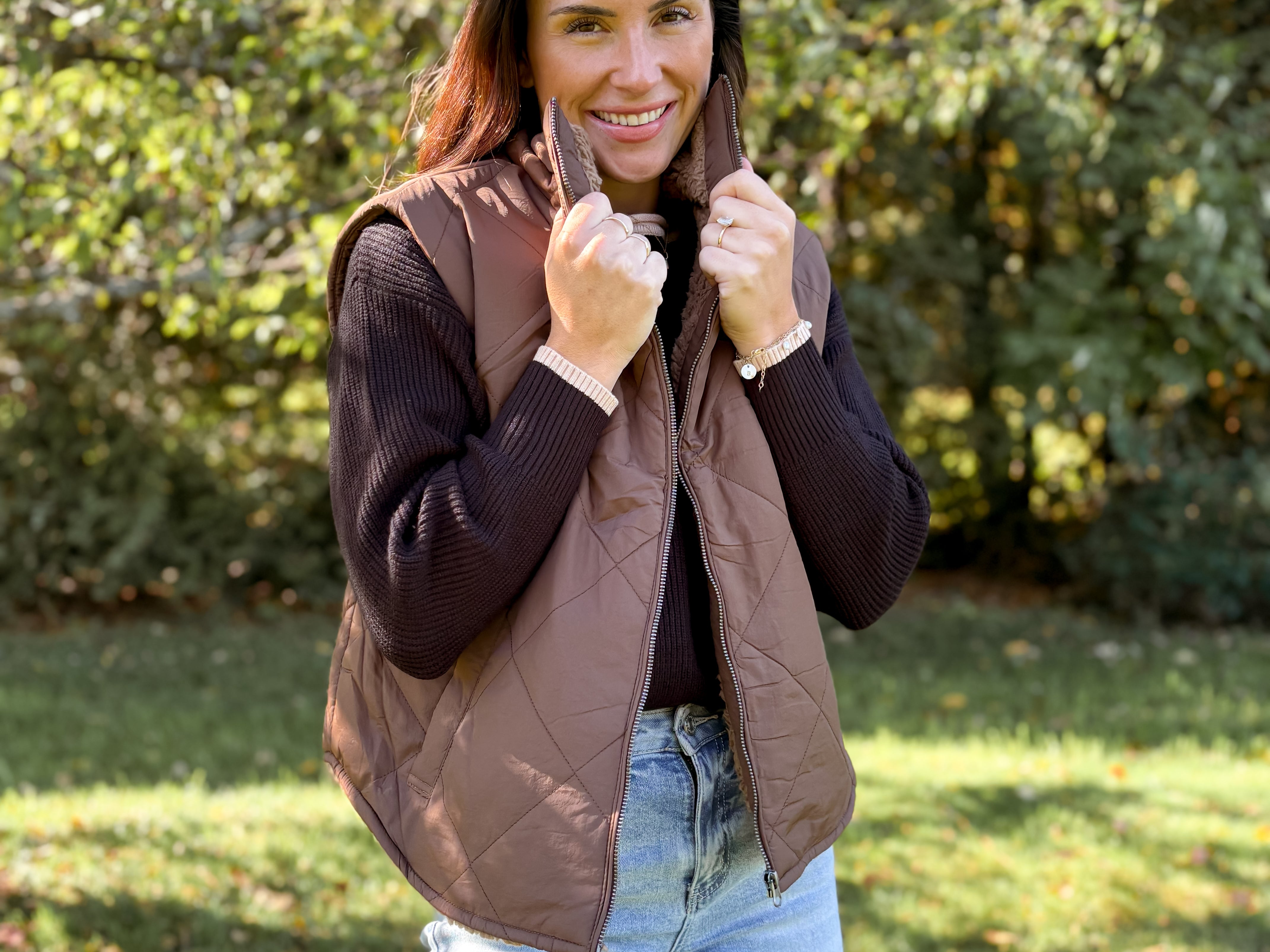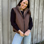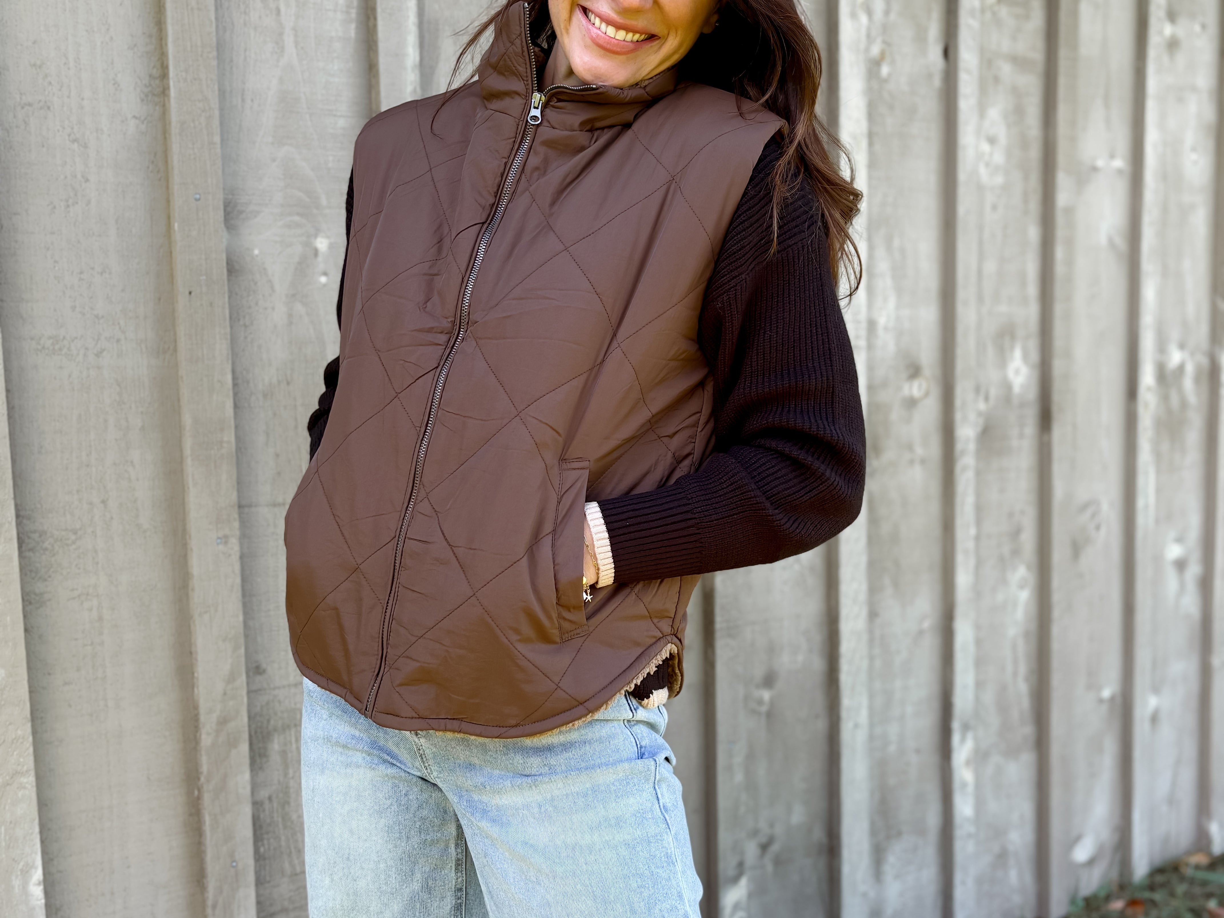 Stay cozy and stylish with the Sab Fleece Lined Puffer Vest. Featuring a soft teddy bear fleece lining and quilted exterior, this long vest offers warmth without bulk. Its full zip closure and side pockets provide both comfort and practicality, making it perfect for layering on chilly days. The rich chocolate brown colour adds a timeless touch to your outfit while keeping you snug and comfortable all day long.