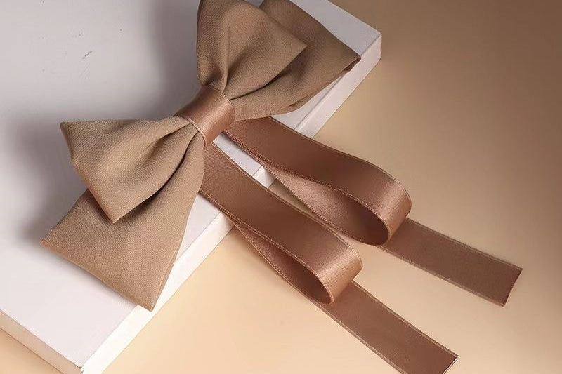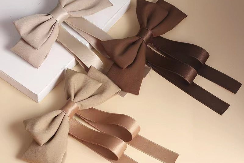 SILK SATIN DOUBLE LAYER BOWTIE RIBBON HAIR CLIPS BARRETTES - DOUBLE LAYER BOWTIE - CHIC & DELICATE DESIGN - WORKS FOR ALL HAIR TYPES