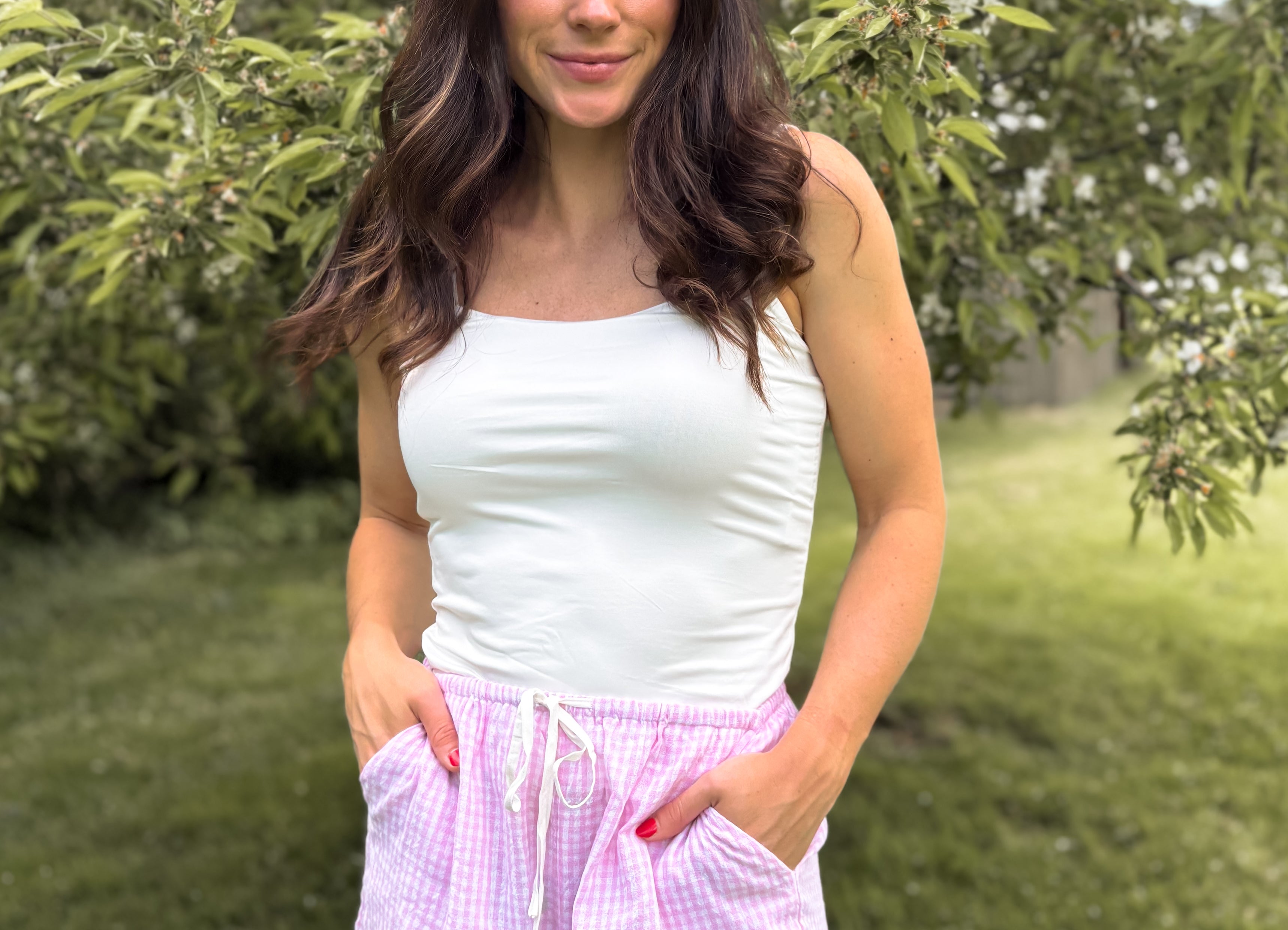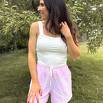 Our Shyloh Gingham Shorts feature a charming pink gingham check pattern that's perfect for warm-weather style. The comfortable elastic waistband with adjustable tie ensures a perfect fit, while convenient pockets add practicality to these fashionable shorts. Made from light, airy fabric, they'll keep you cool and stylish all season long.