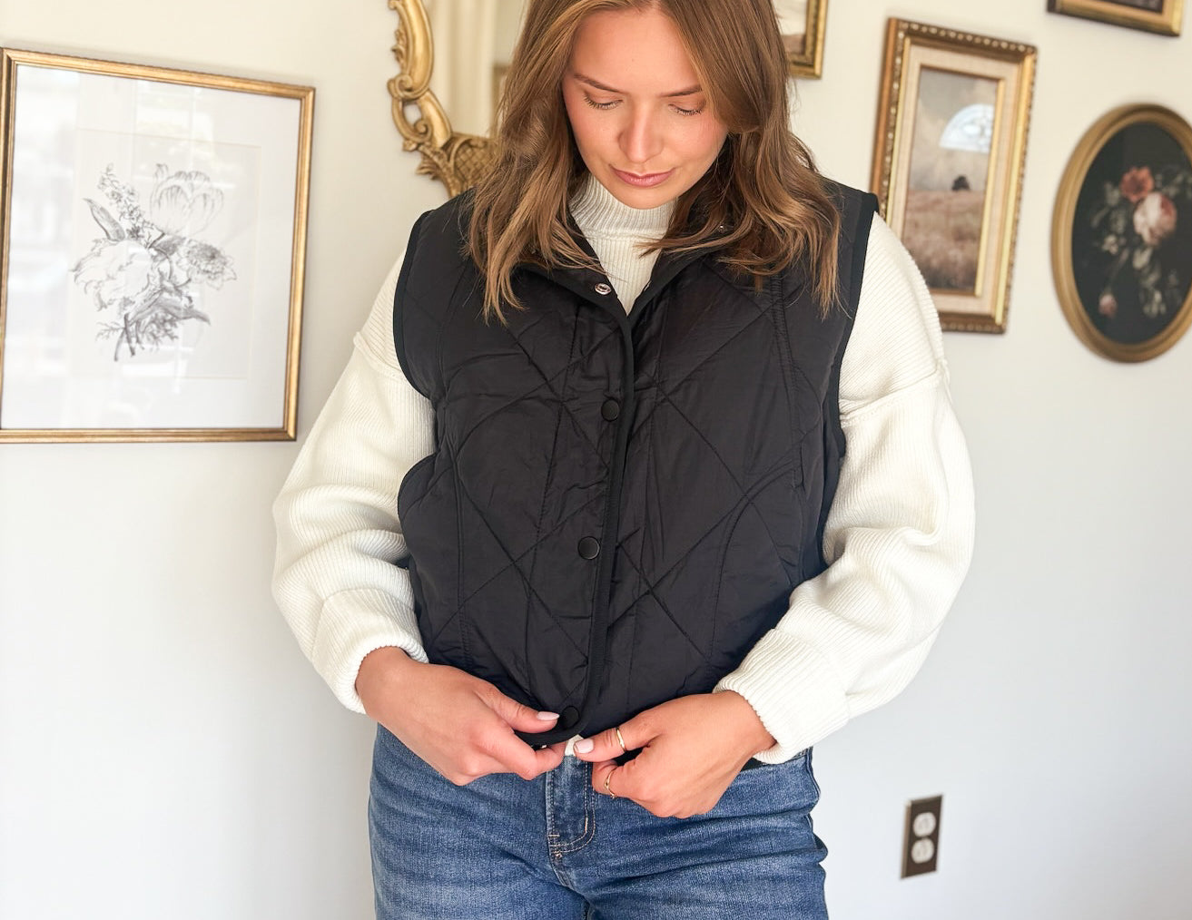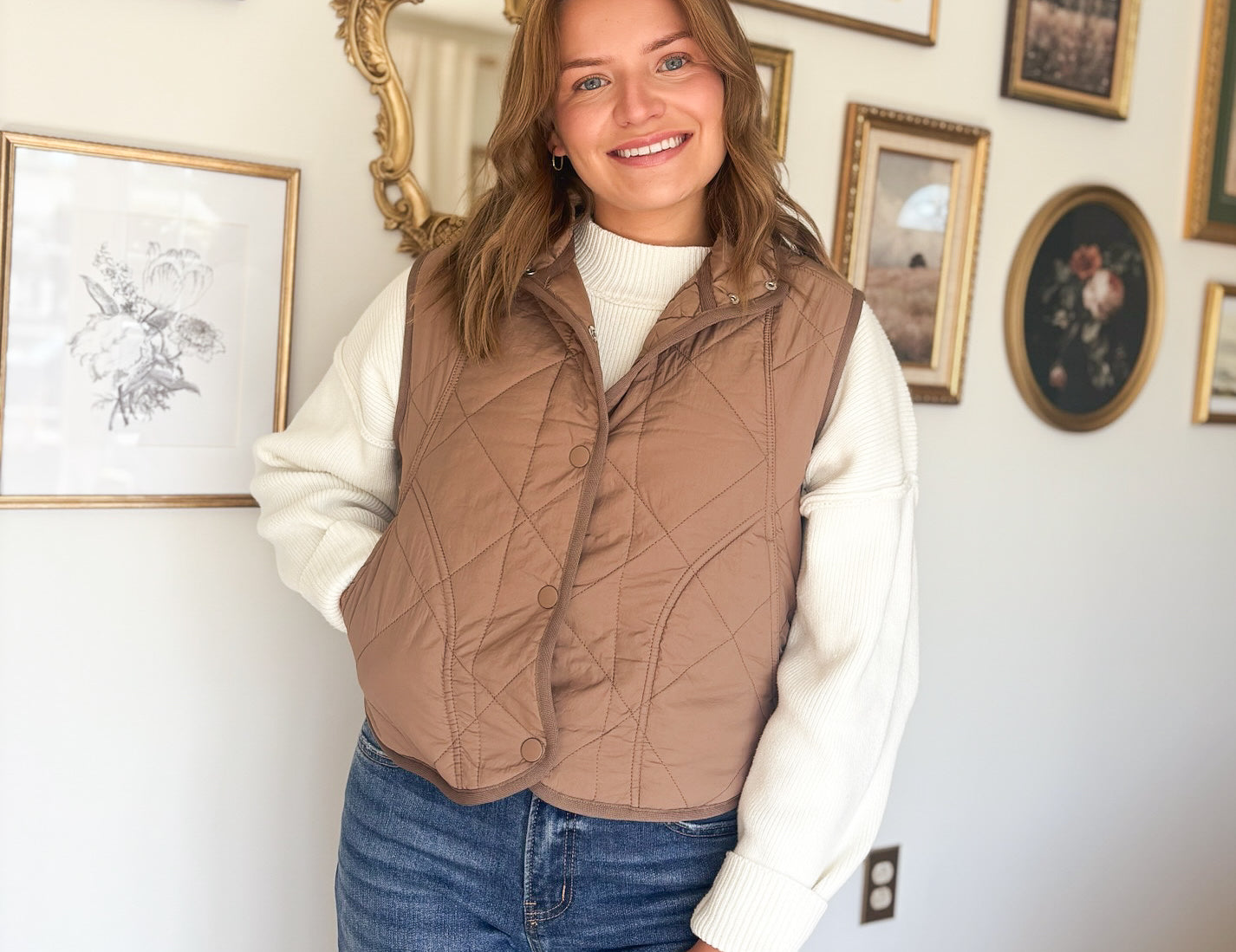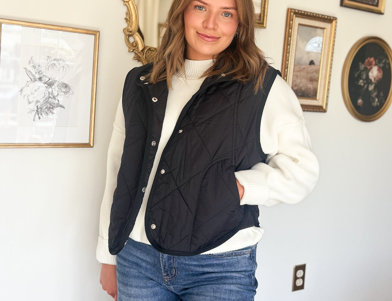 Stay warm and stylish with this Snap Button Quilted Puffer Vest. Crafted with a durable 100% nylon shell and fully lined with polyester, it offers lightweight insulation to keep you comfortable without bulk. The mock neckline and sleeveless design make it perfect for layering, while the snap button closure adds convenience and a modern touch. Ideal for chilly days, this vest combines practical warmth with a sleek, versatile look.