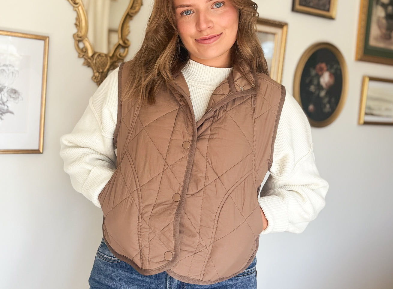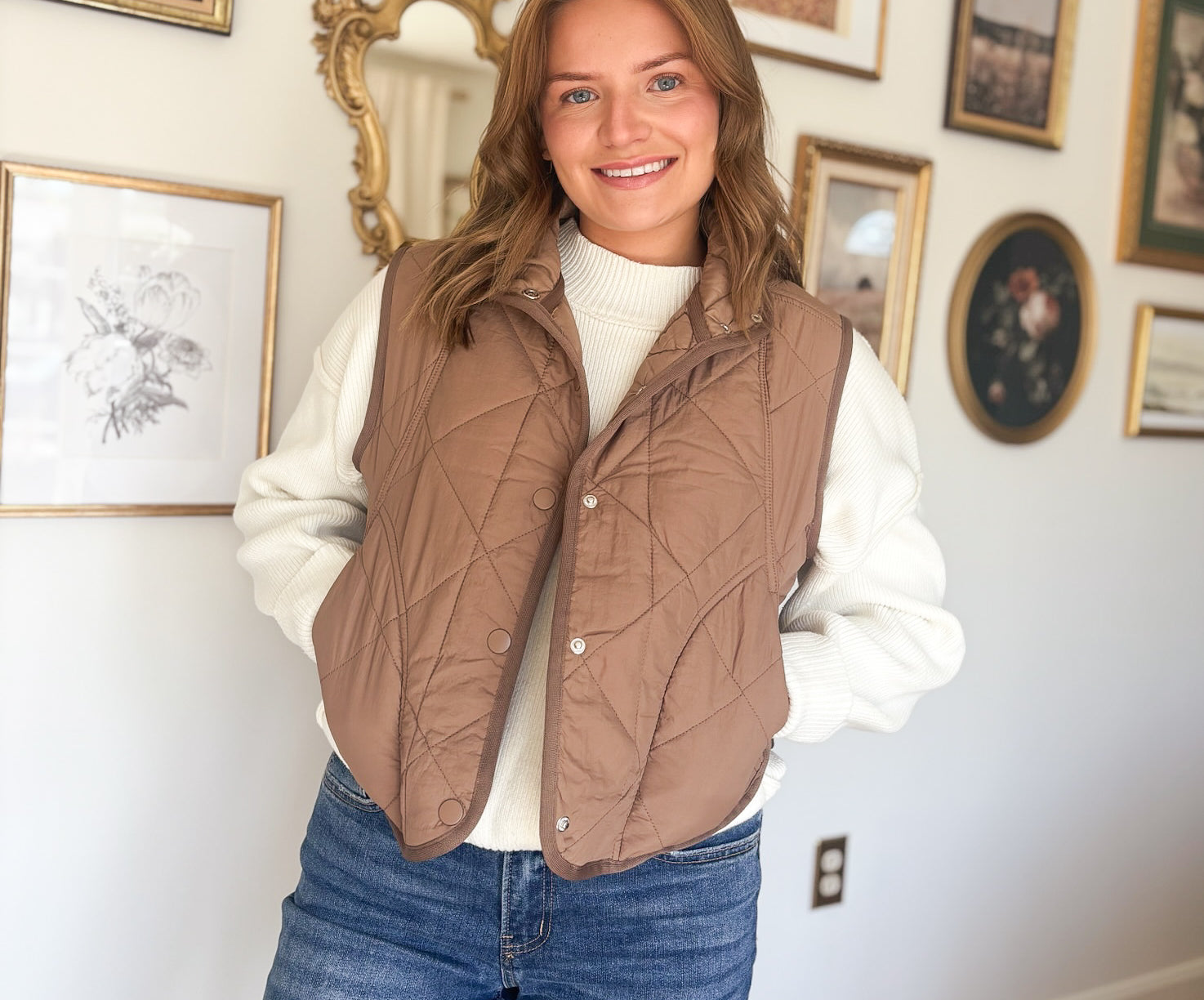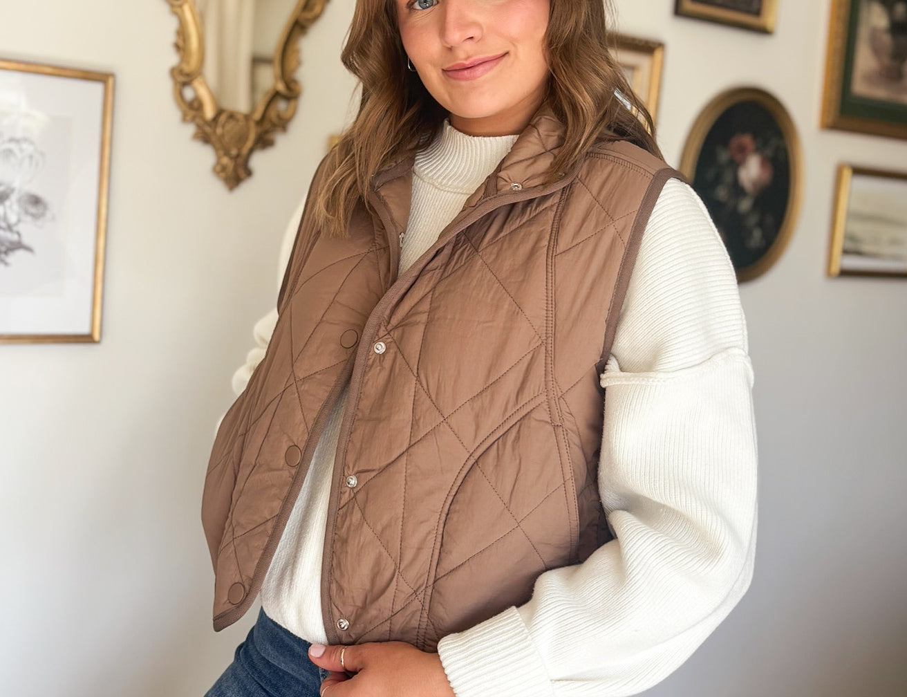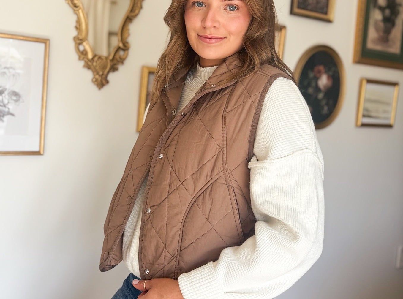 Stay warm and stylish with this Snap Button Quilted Puffer Vest. Crafted with a durable 100% nylon shell and fully lined with polyester, it offers lightweight insulation to keep you comfortable without bulk. The mock neckline and sleeveless design make it perfect for layering, while the snap button closure adds convenience and a modern touch. Ideal for chilly days, this vest combines practical warmth with a sleek, versatile look.