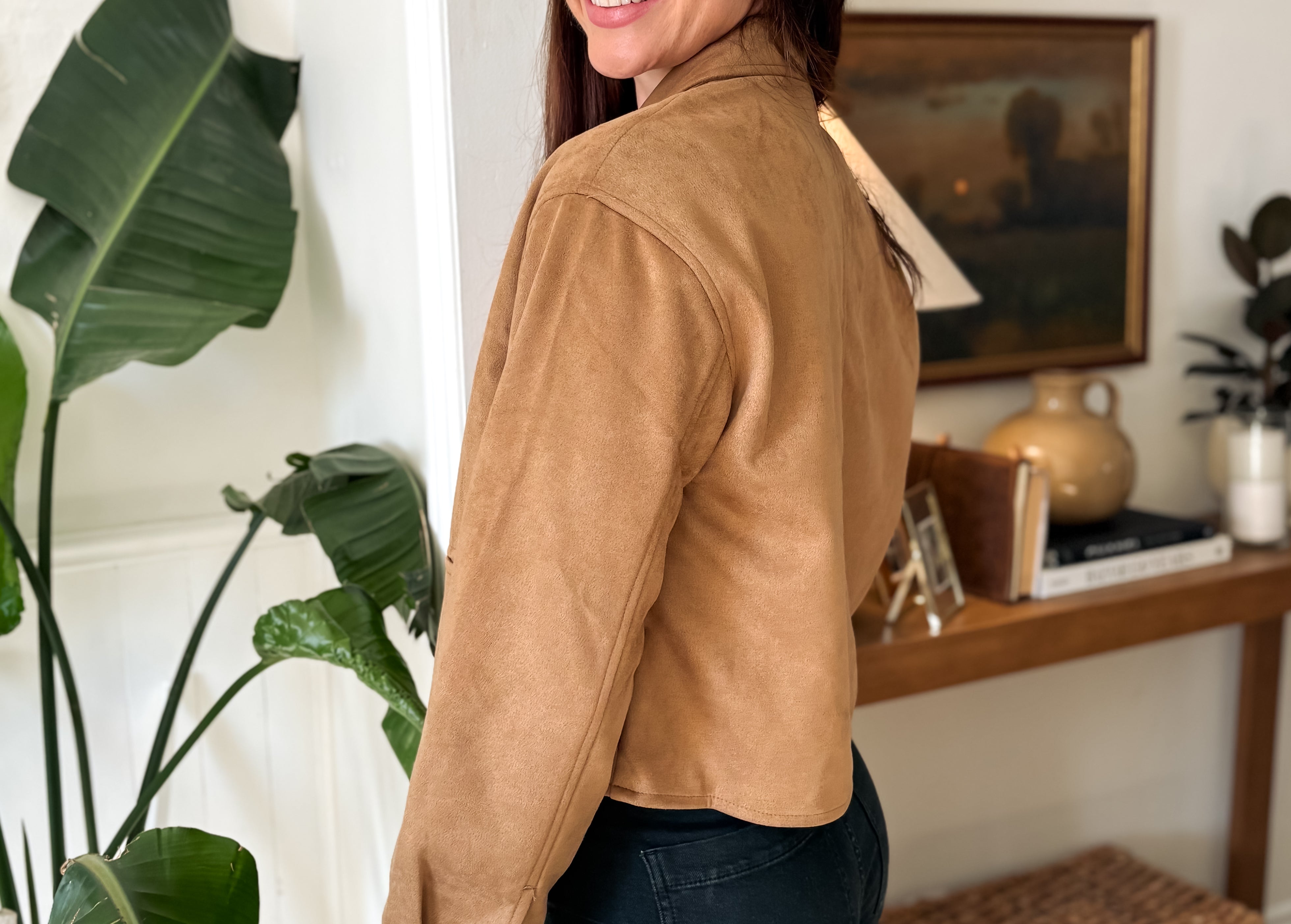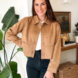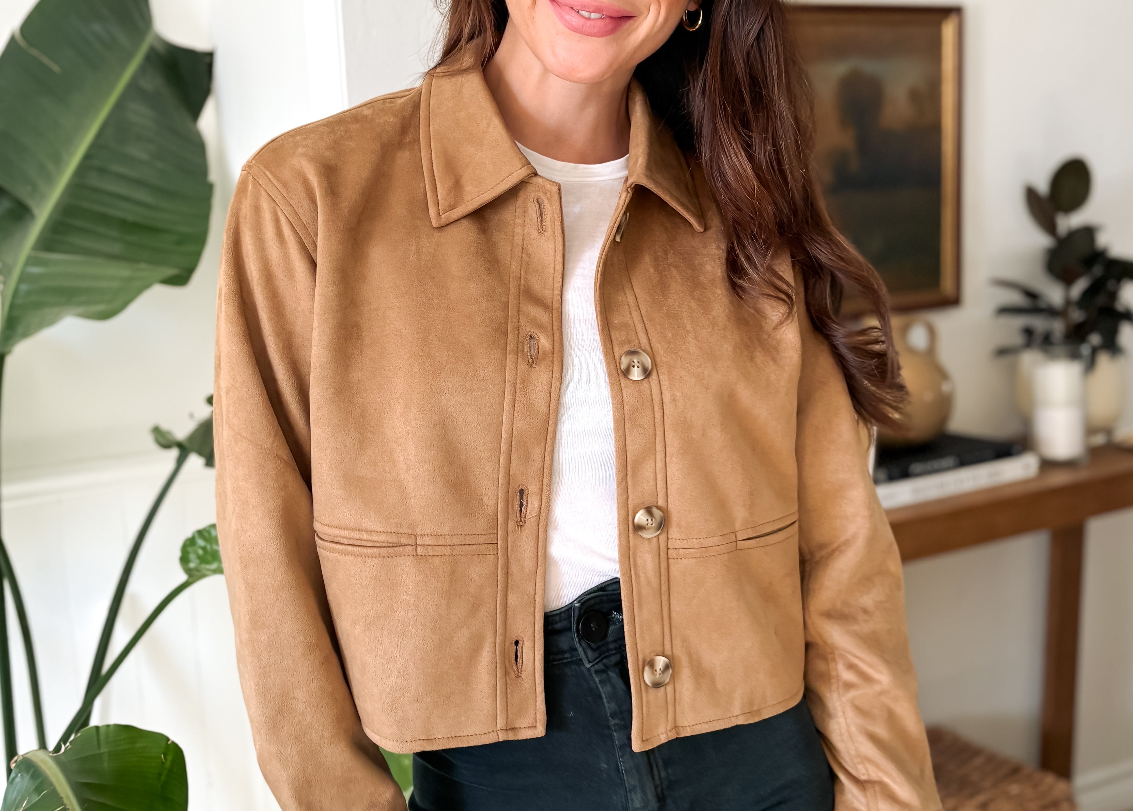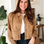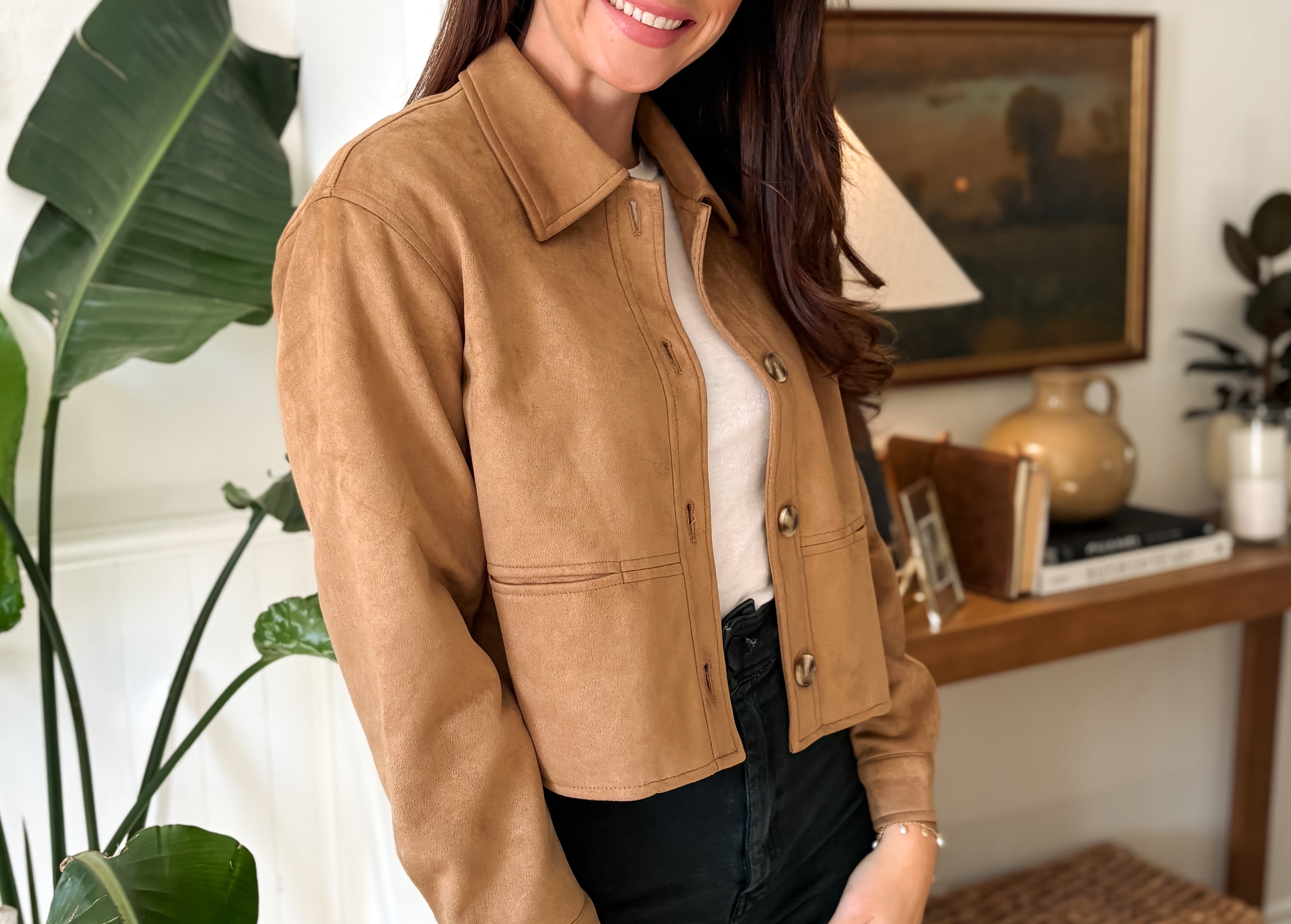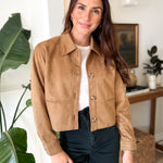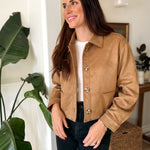The Cassandra Suede Collared Button Down Cropped Jacket