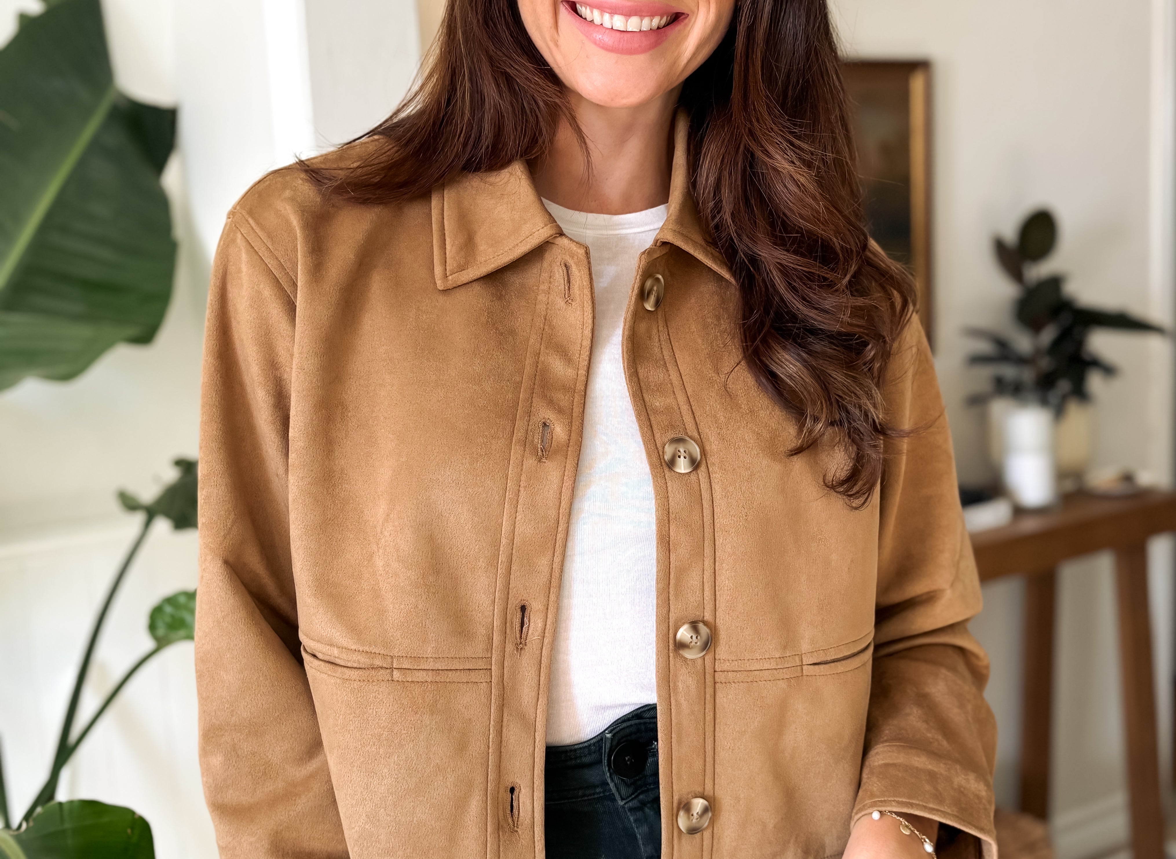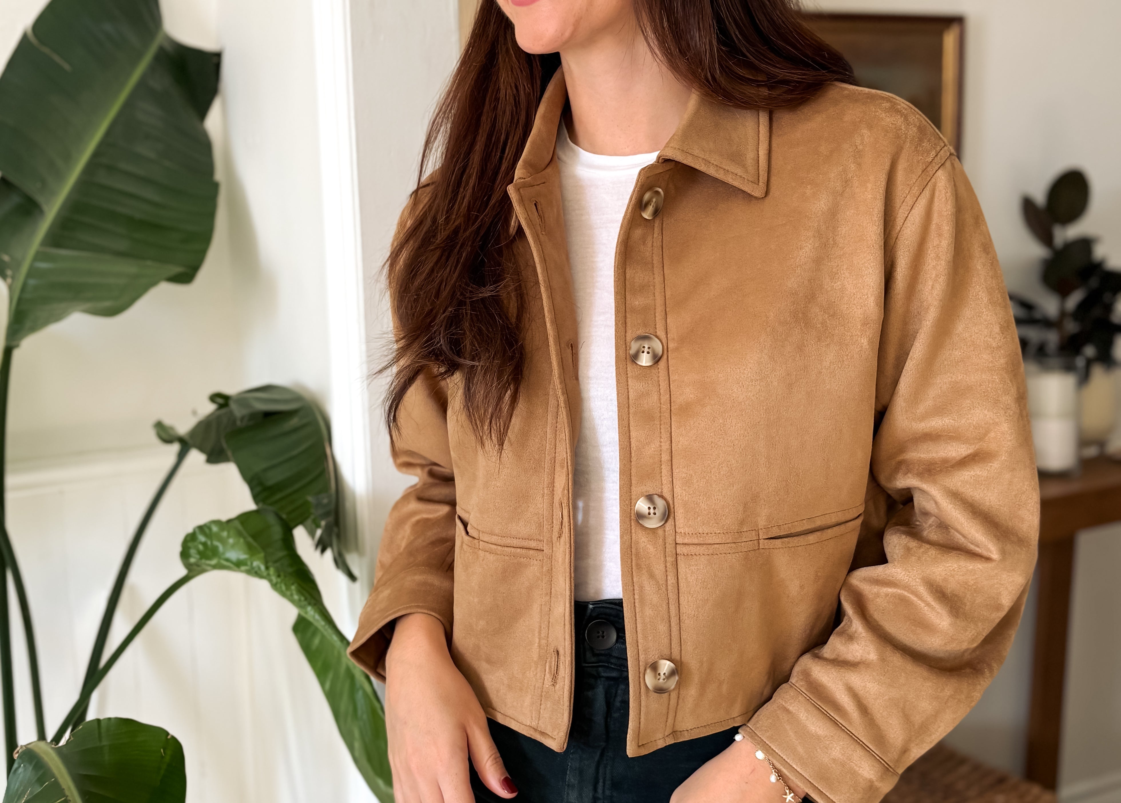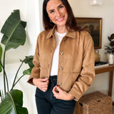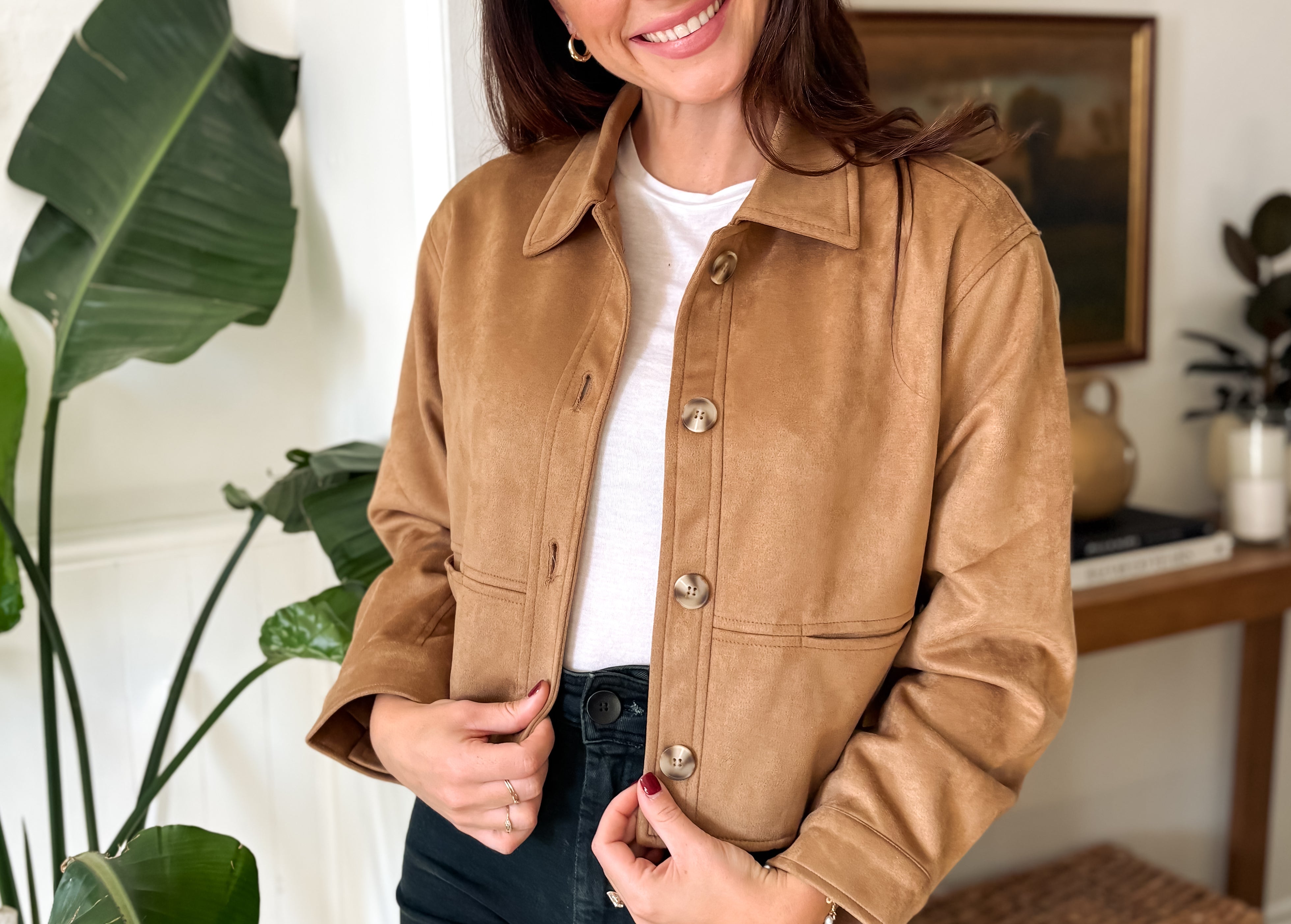 The Cassandra Suede Collared Button Down Cropped Jacket