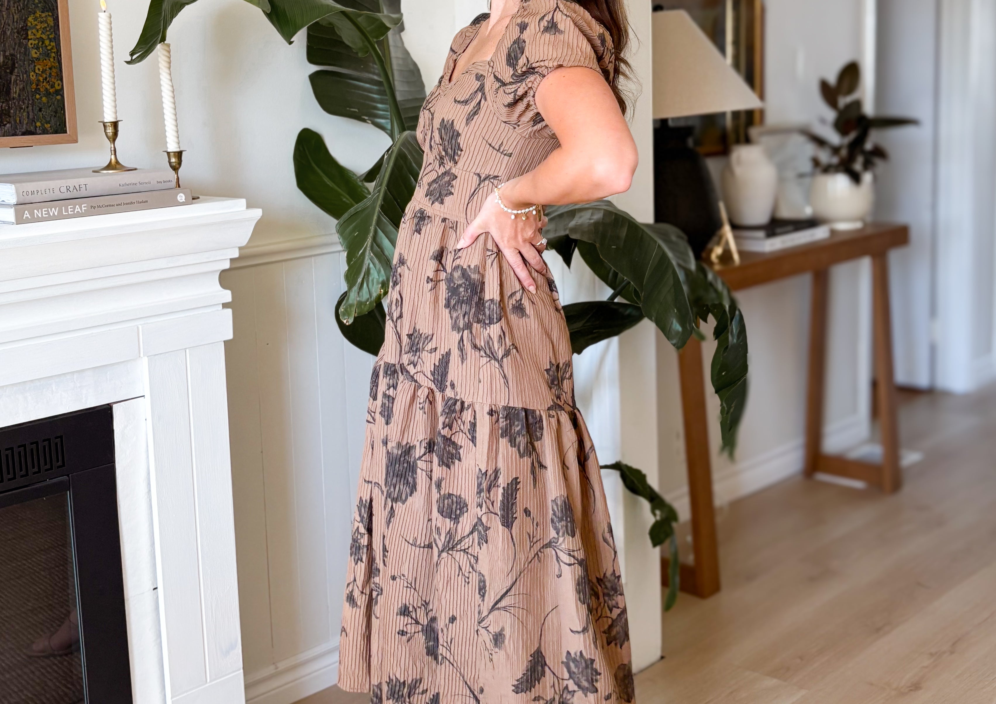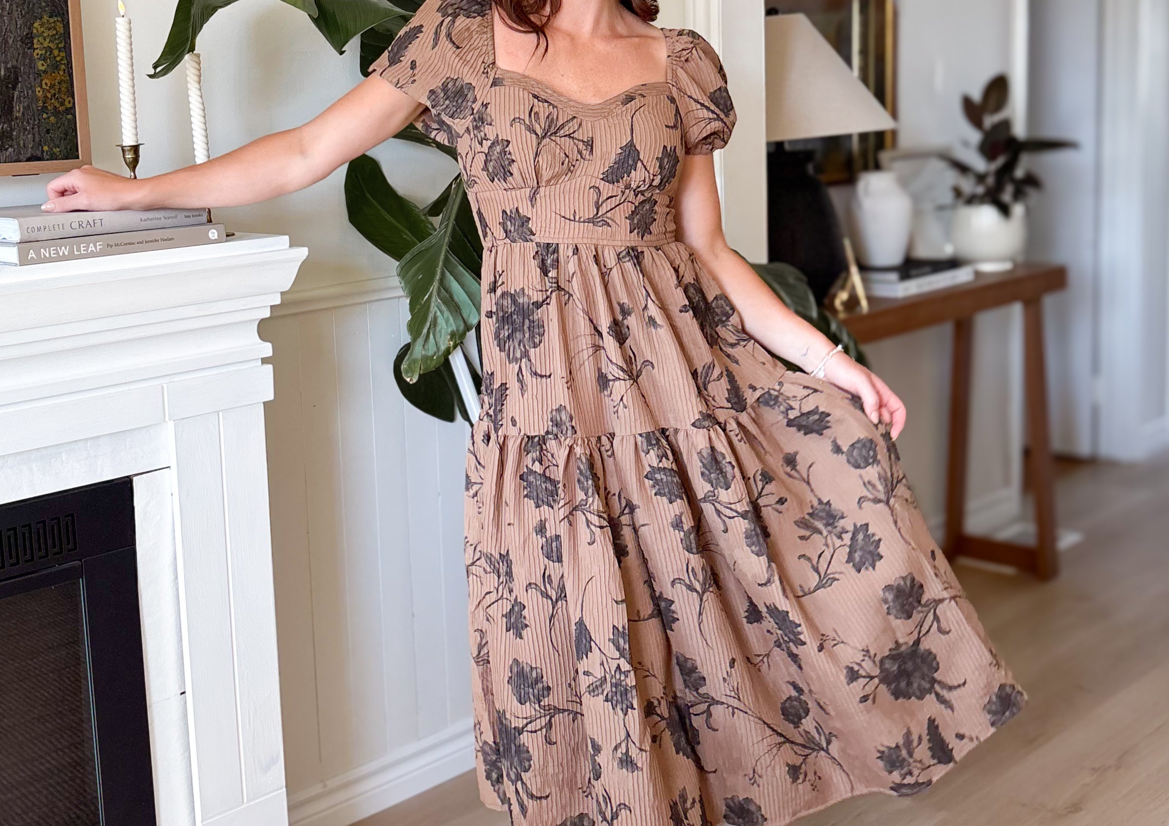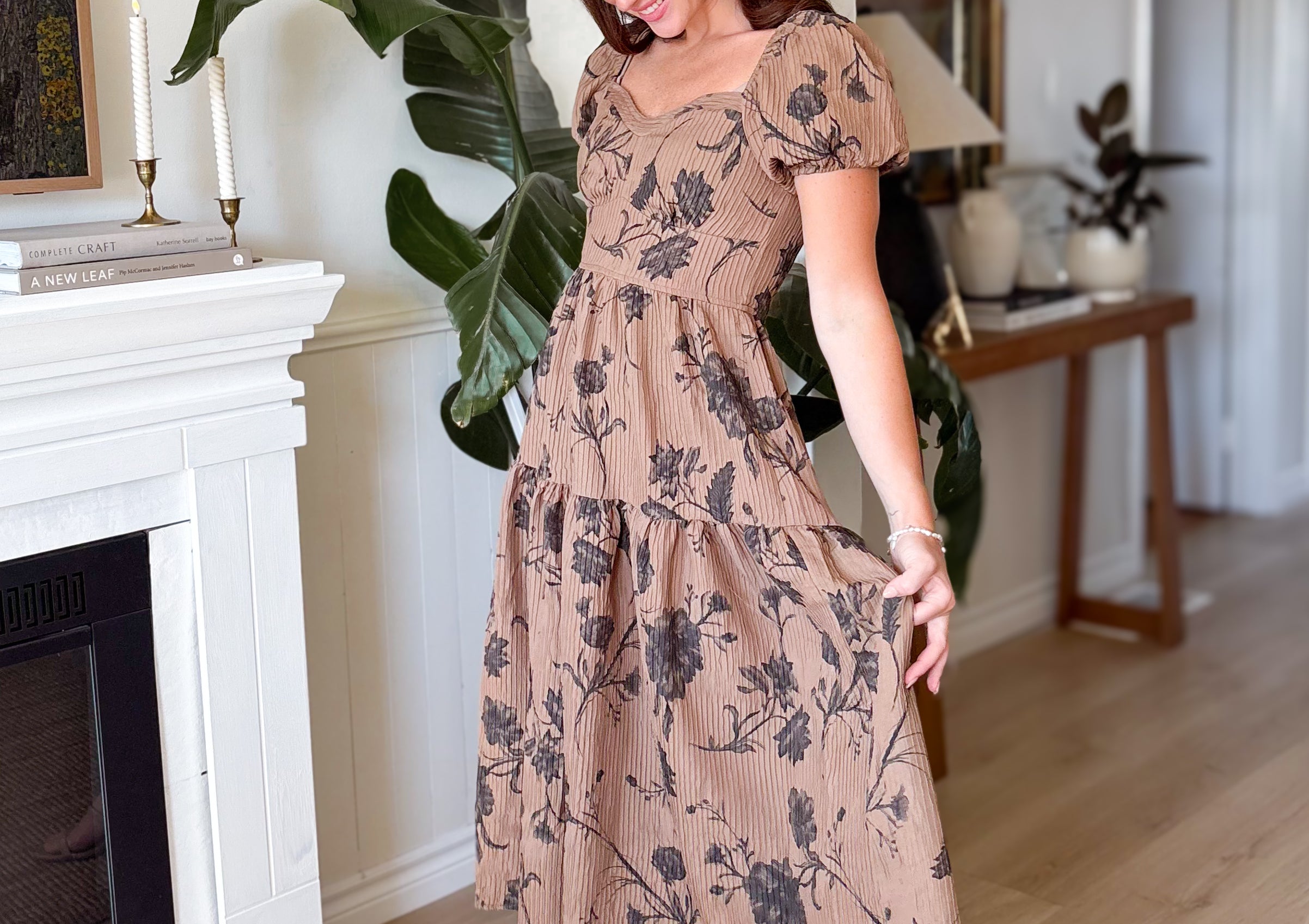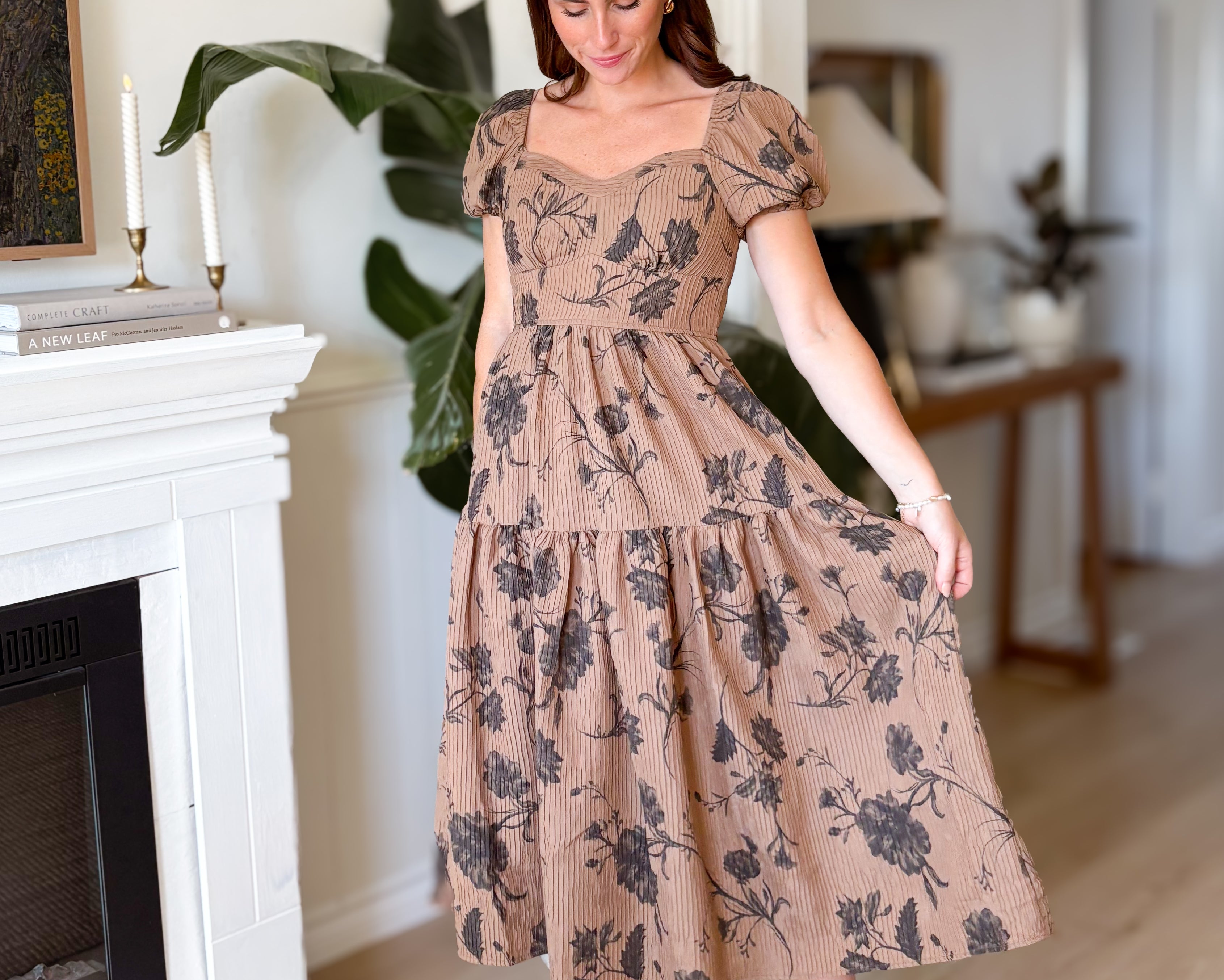 Elevate your style with the Bindy Textured Floral Midi Dress, featuring a flattering sweetheart neckline and delicate short puff sleeves. The corset detail enhances your silhouette, while back smocking ensures a comfortable fit. Its elegant A-line shape and ruffle hem create a graceful flow, perfect for any occasion. This dress combines romantic charm with modern design to make you feel effortlessly beautiful.