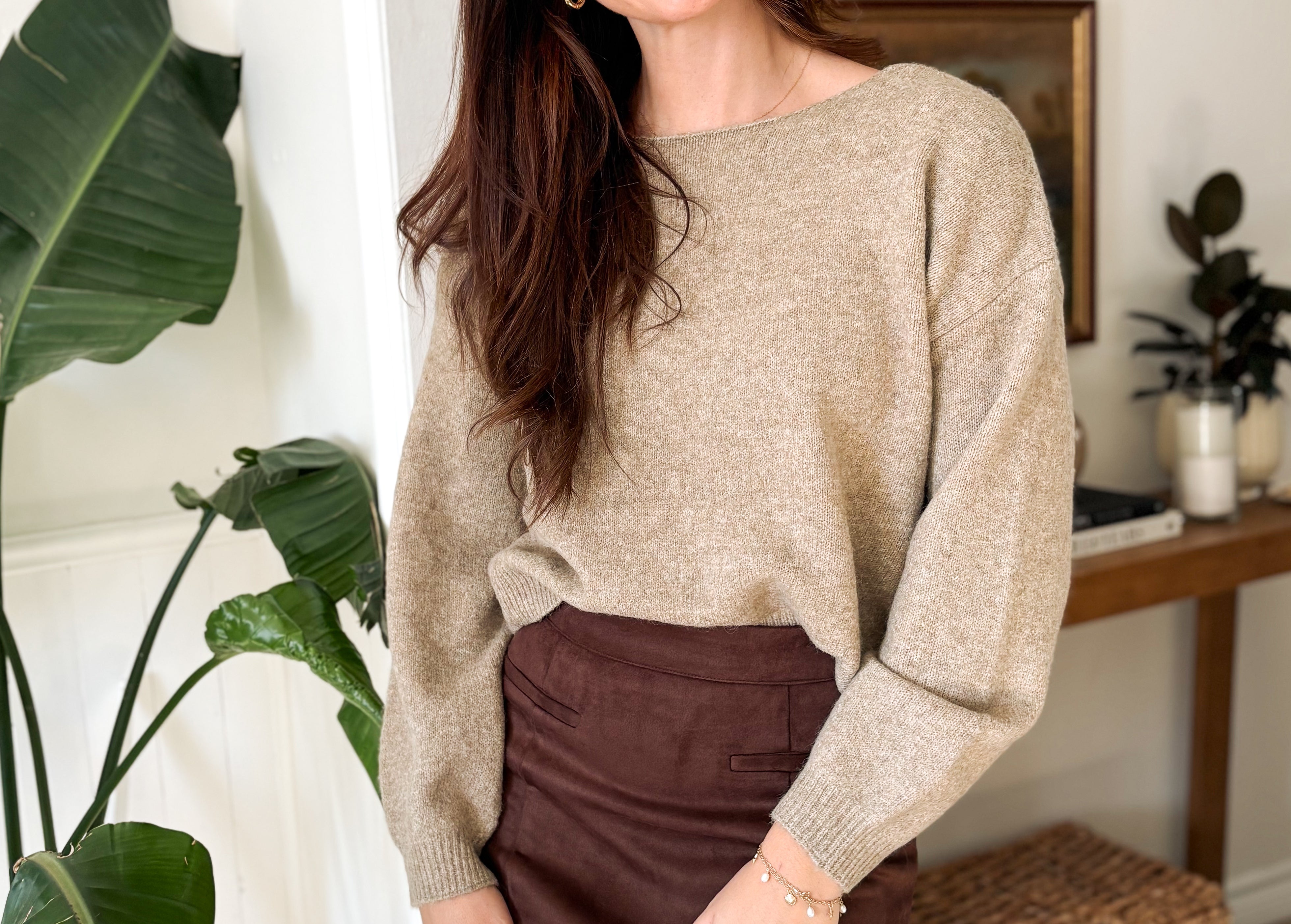 Elevate your wardrobe with The Chanel Black Velvet Detail Knit Pullover in a versatile khaki shade. Featuring a luxurious velvet bow at the front, this soft knit adds a touch of elegance to casual styles. Ribbed cuffs and waistband ensure a comfortable, tailored fit that keeps you cozy and chic all day long. Perfect for layering or wearing on its own, this pullover blends understated sophistication with everyday comfort