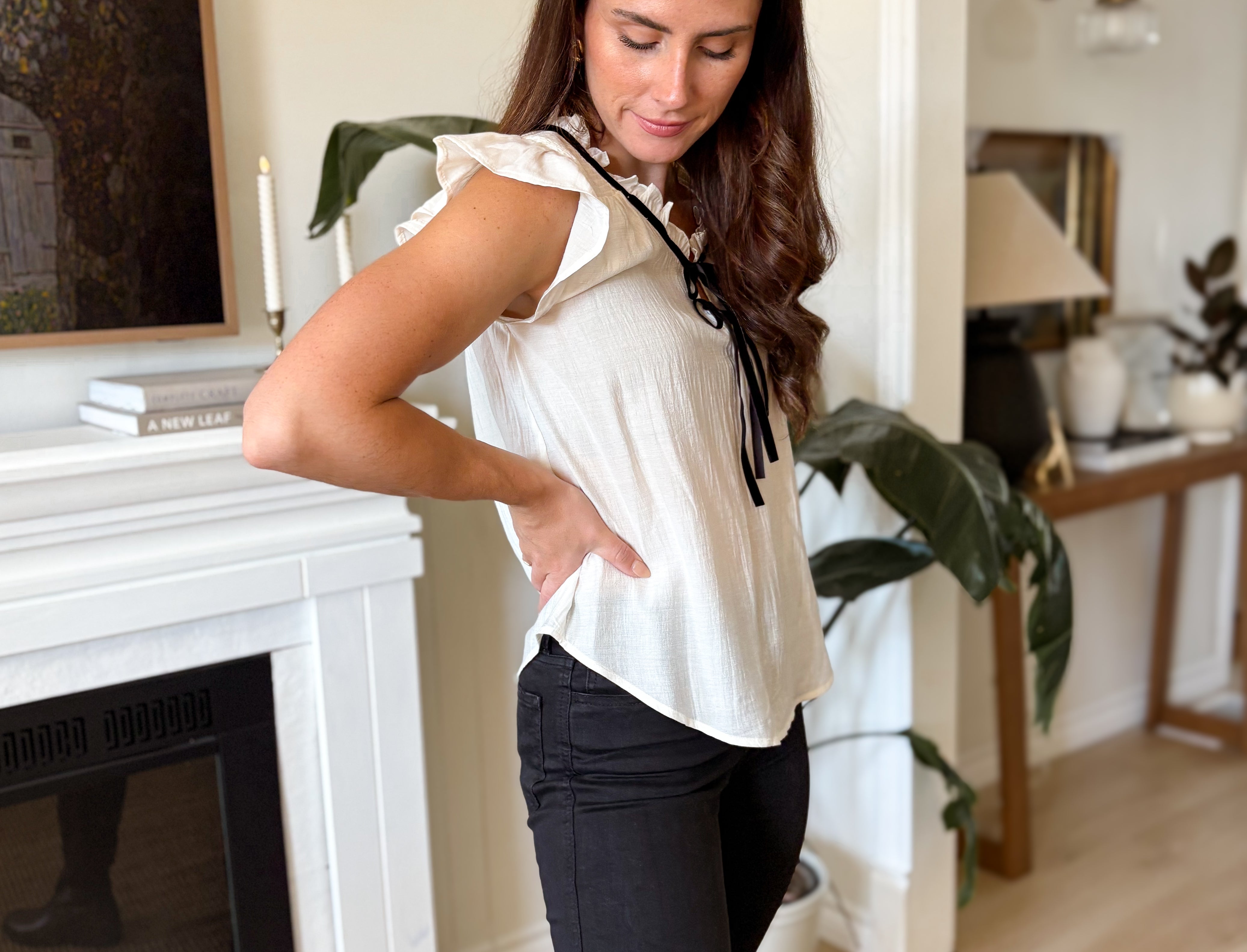 The Connie Front Tie Detail Short Sleeve Blouse in Cream