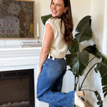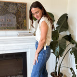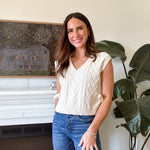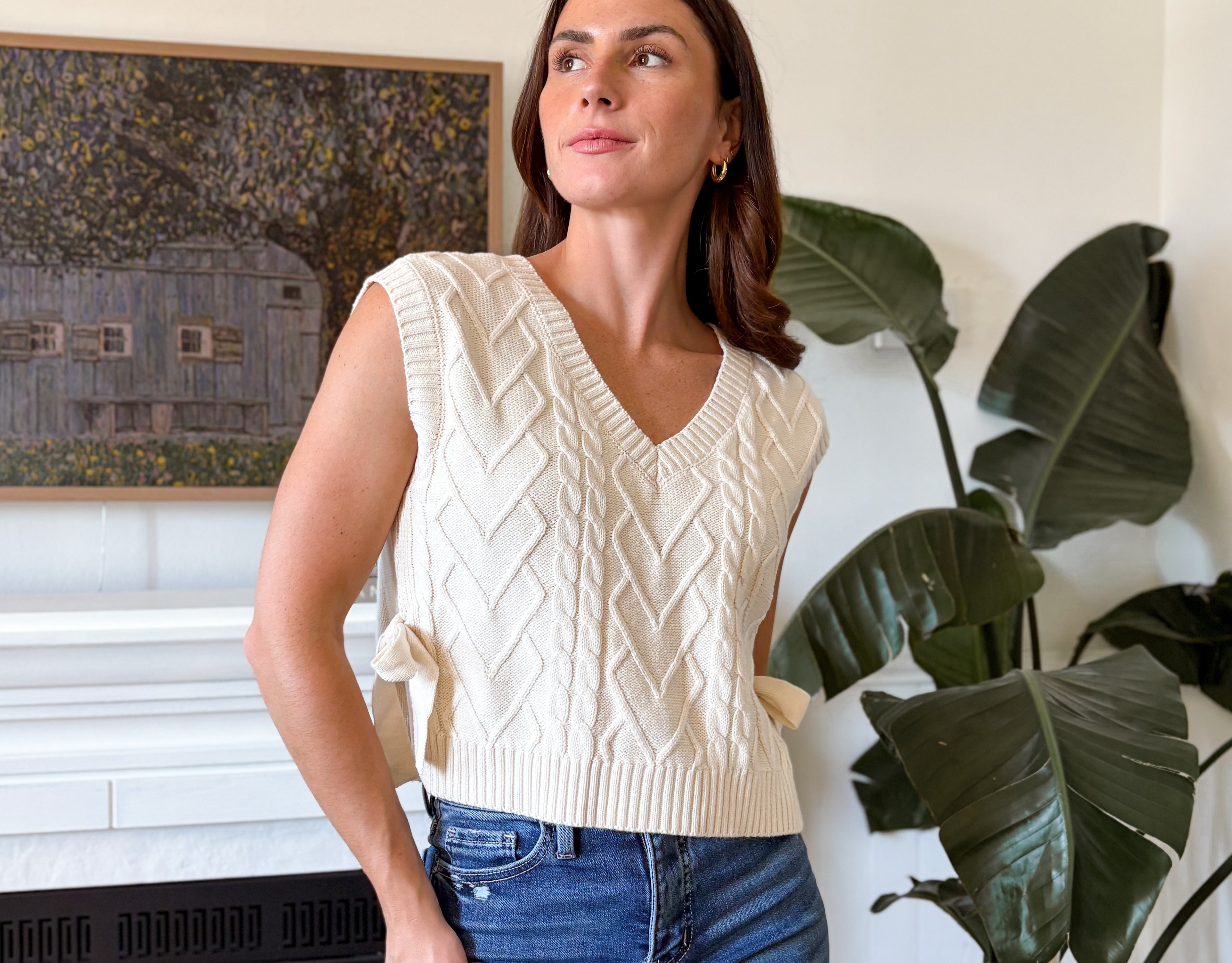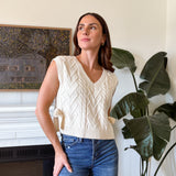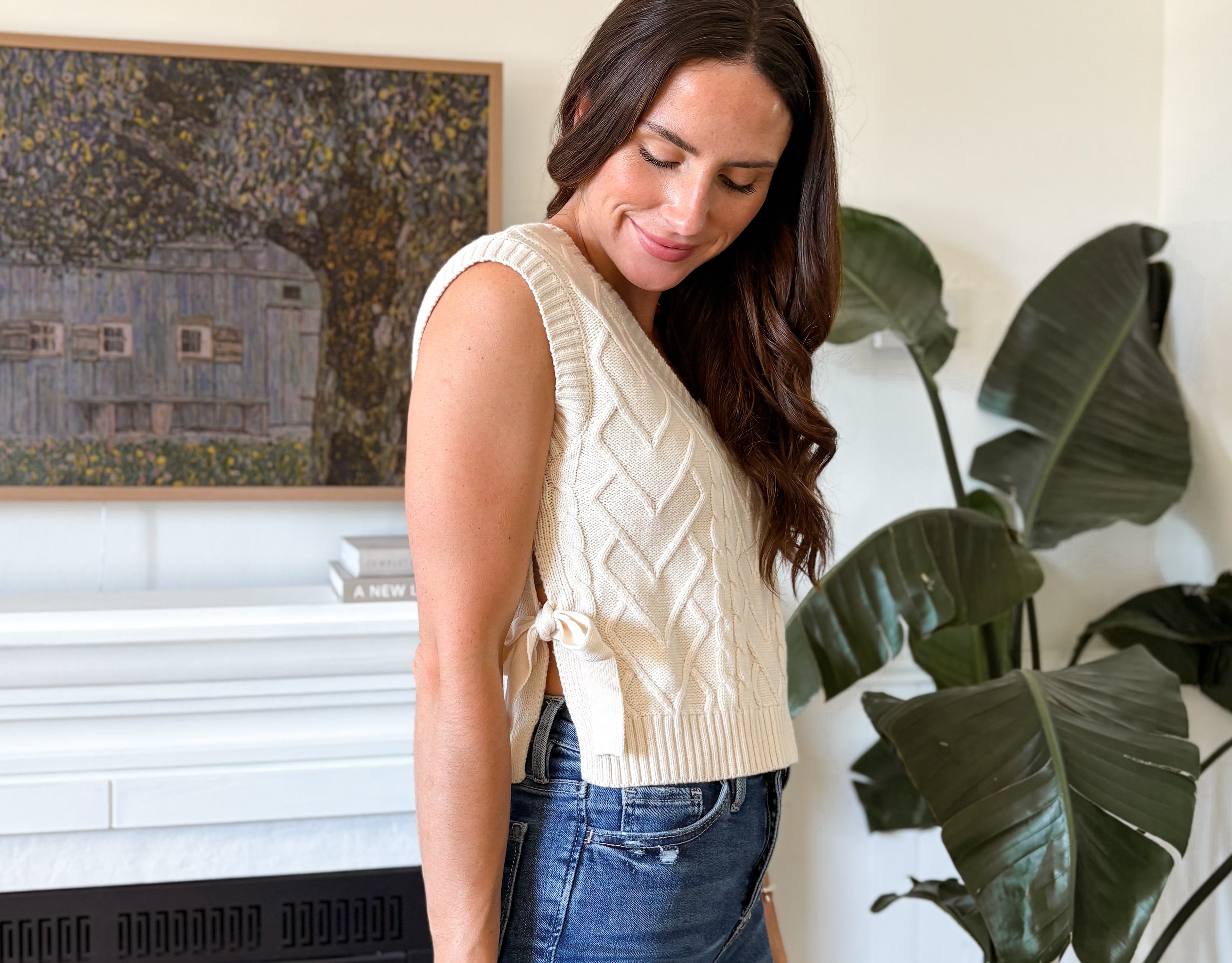The Denise Cable Knit V-Neck Side Tie Sweater Vest in Cream