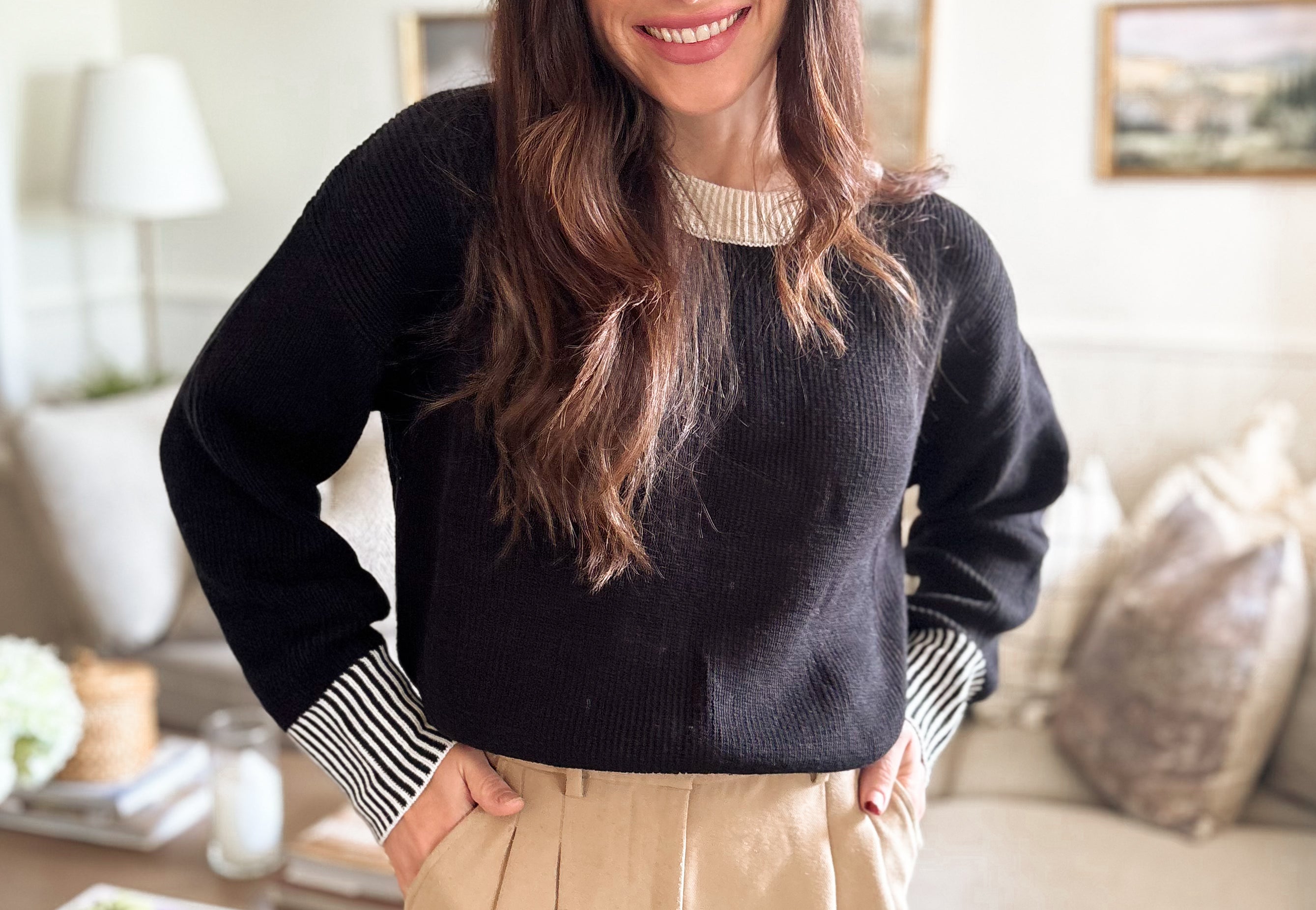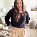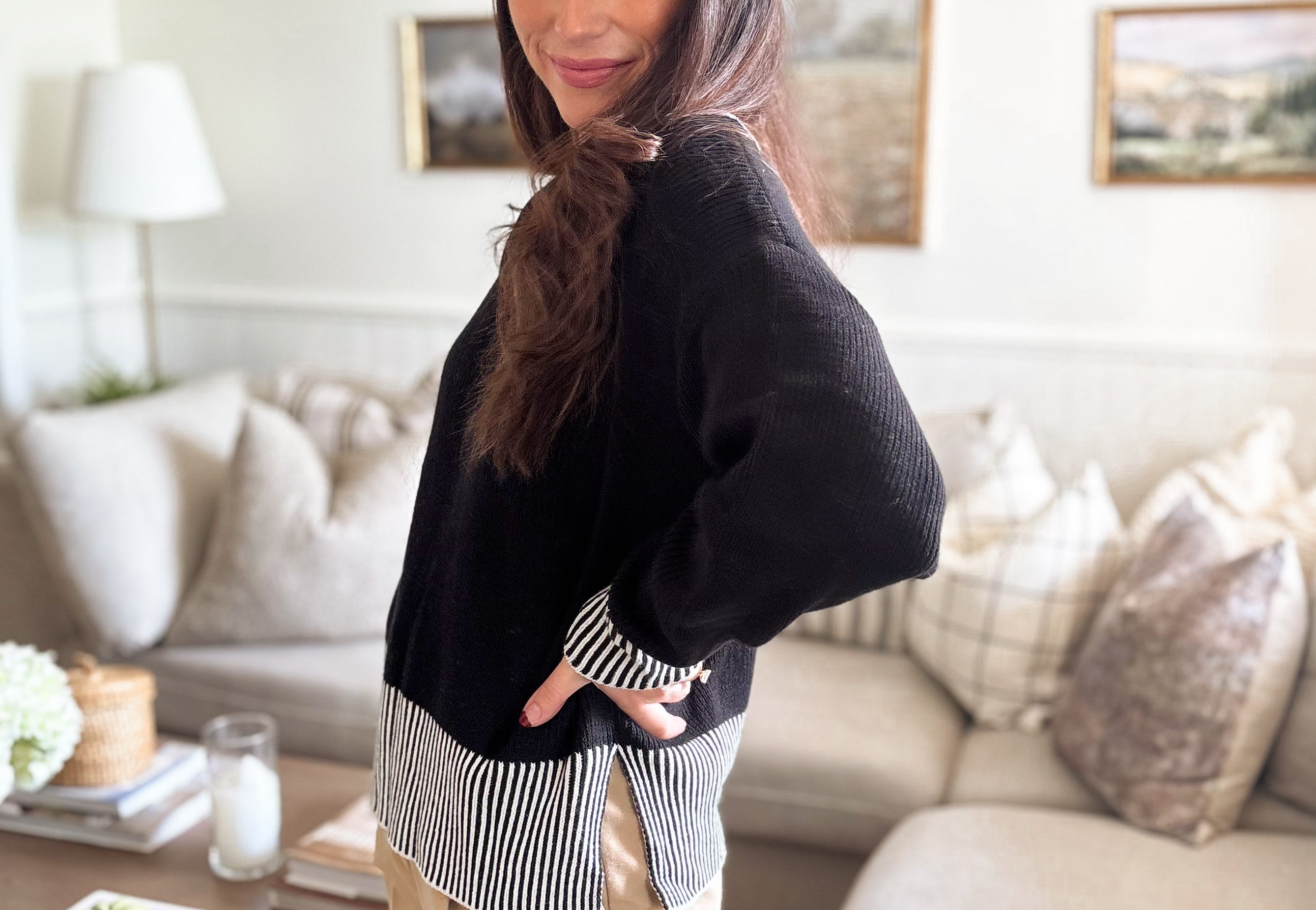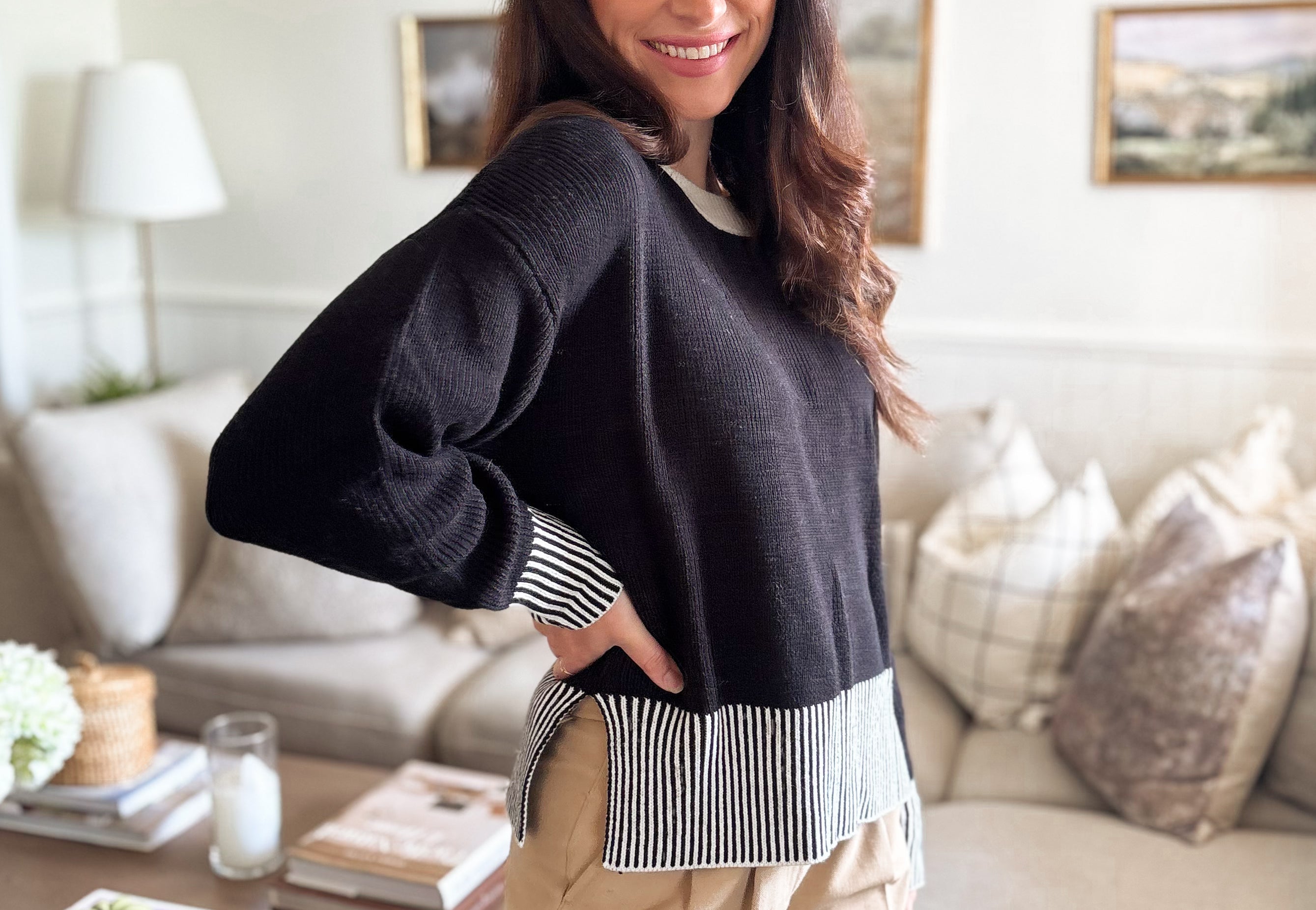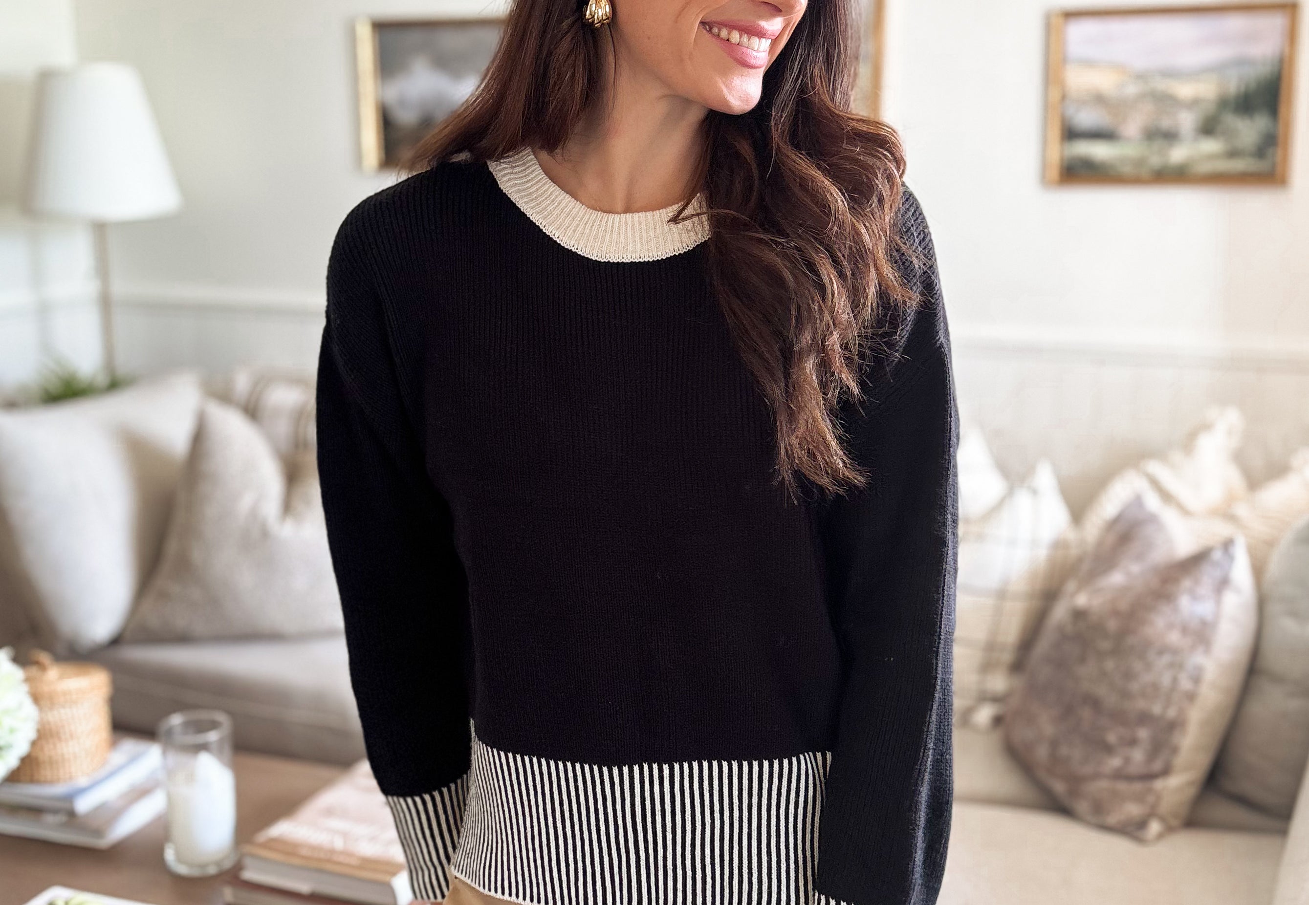 The Devon Contrast Stripe Hem Long Sleeve Knit Sweater